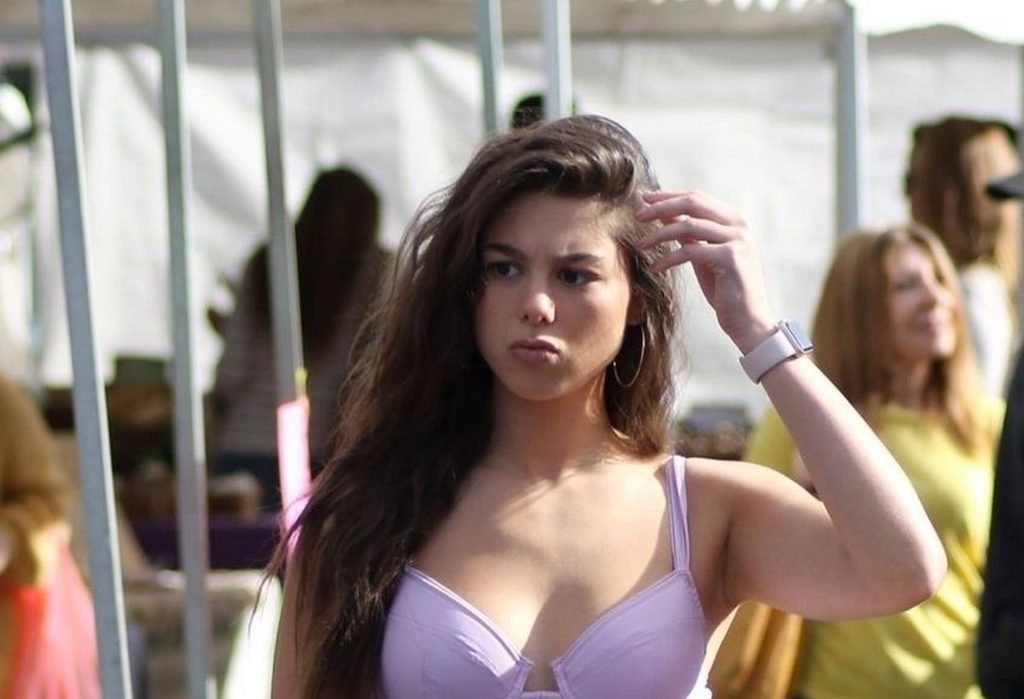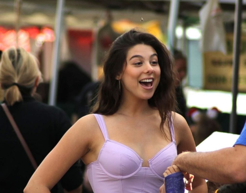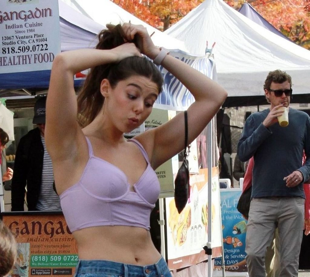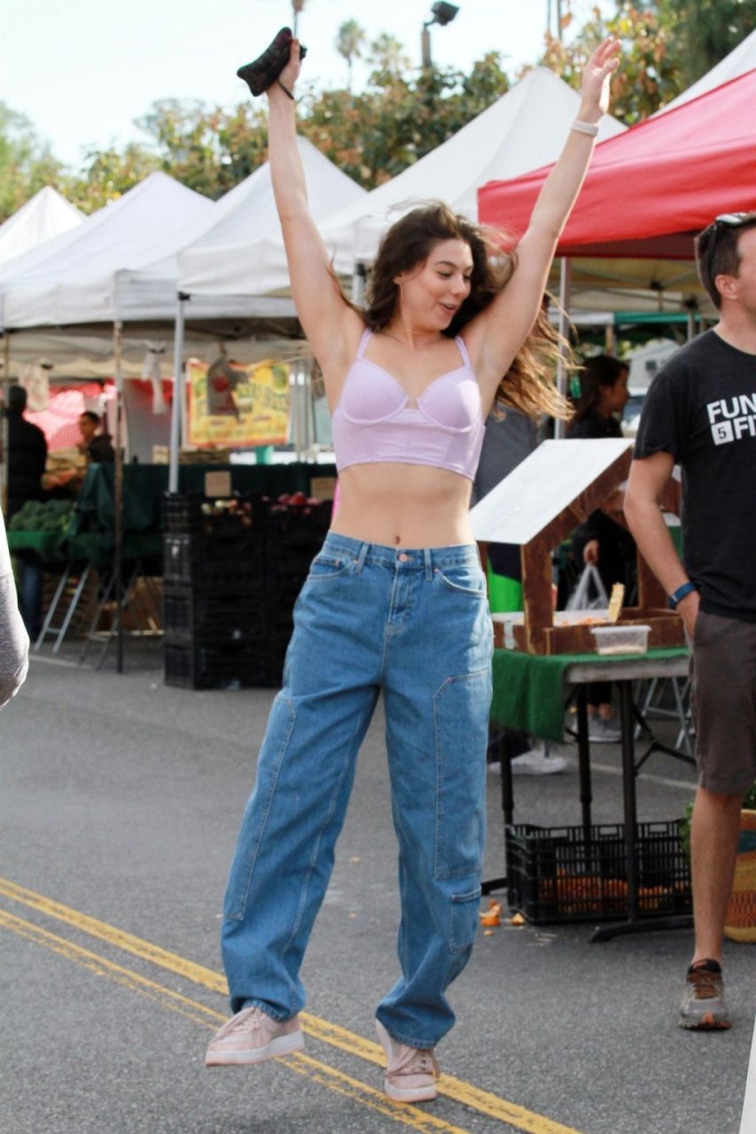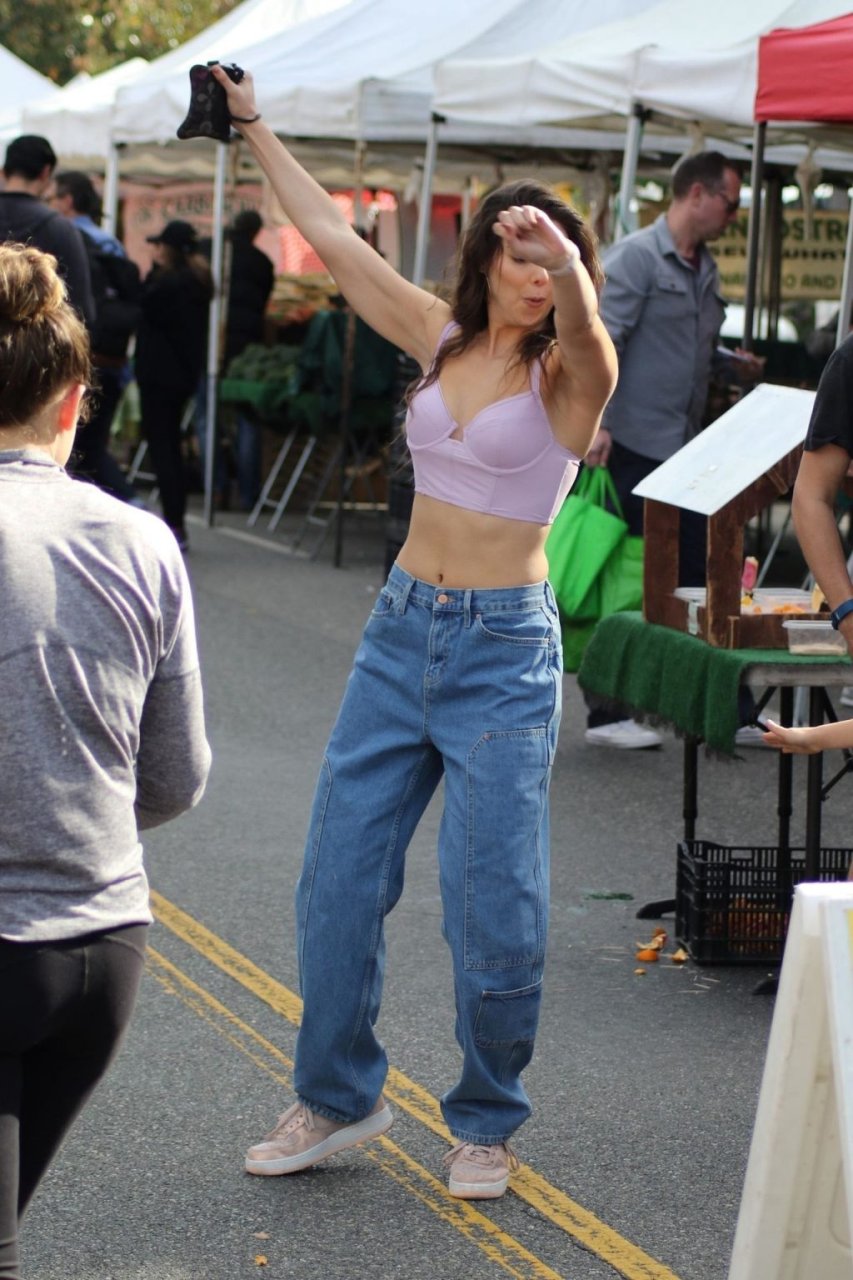Актриса Кира Косарин демонстрирует свою подтянутую фигуру, делая покупки на фермерском рынке в Студио-Сити, 16.12.2018. Кира отлично выглядит в лавандовом корсетном бюстгальтере, джинсах с широкими штанинами и кроссовках.