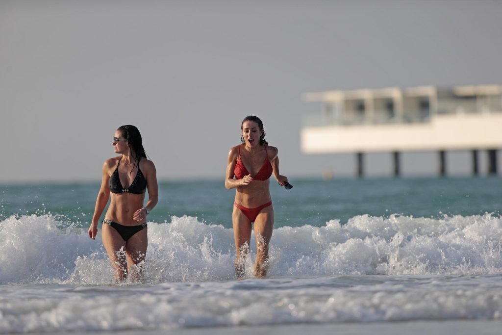 Две сексуальные дамы, телеведущая и радиоведущая Кирсти Галлахер и Натали Пинкхэм, были замечены в бикини на пляже в Абу-Даби, 25.11.2018.