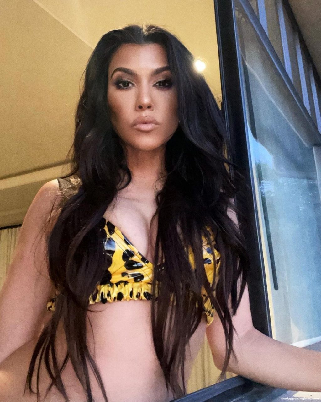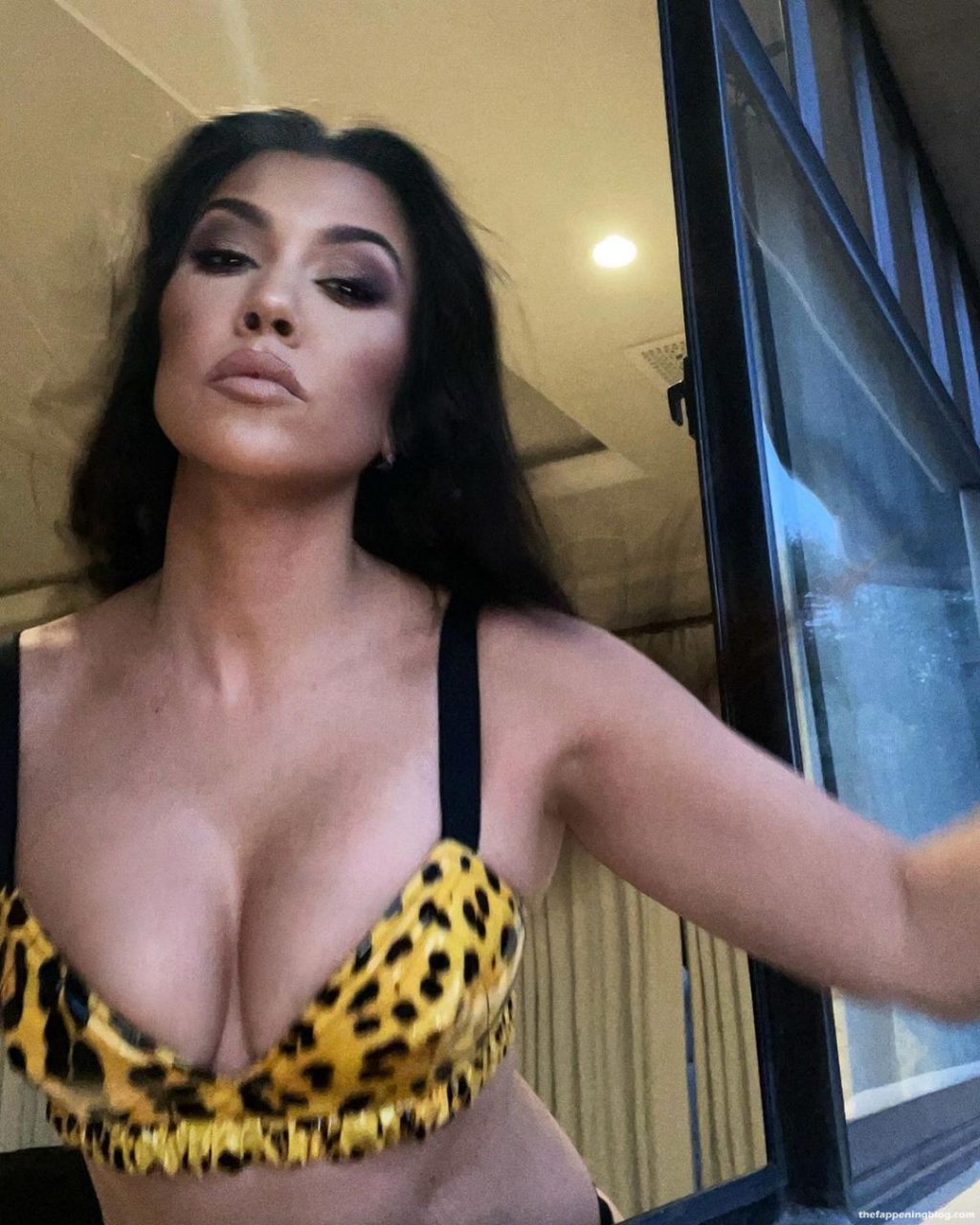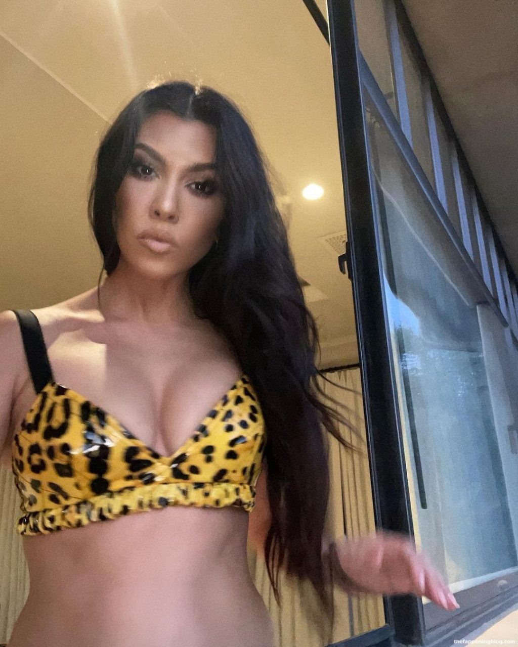Звезда реалити-шоу Кортни Кардашьян показывает красивое декольте и демонстрирует грудь, надев бикини, позируя для своих подписчиков в Instagram, 20.08.2021.