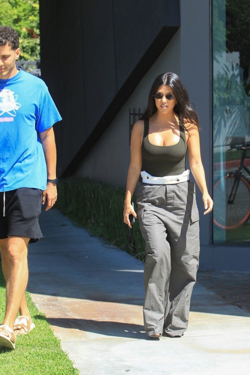 Звезда реалити-шоу, модель и горячая мама Кортни Кардашьян вышла в Западном Голливуде на матч с моделью и лучшей подругой Кардашьян, Фаи Хадрой, 12.09.2019. Кортни надела топ с глубоким вырезом, подчеркивающий её пышную фигуру!
