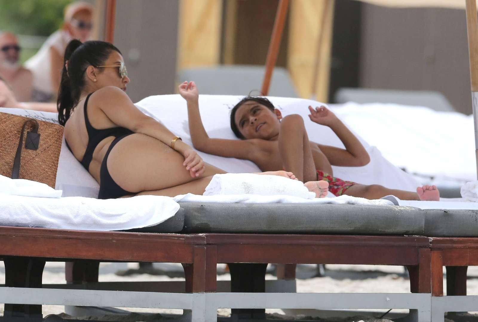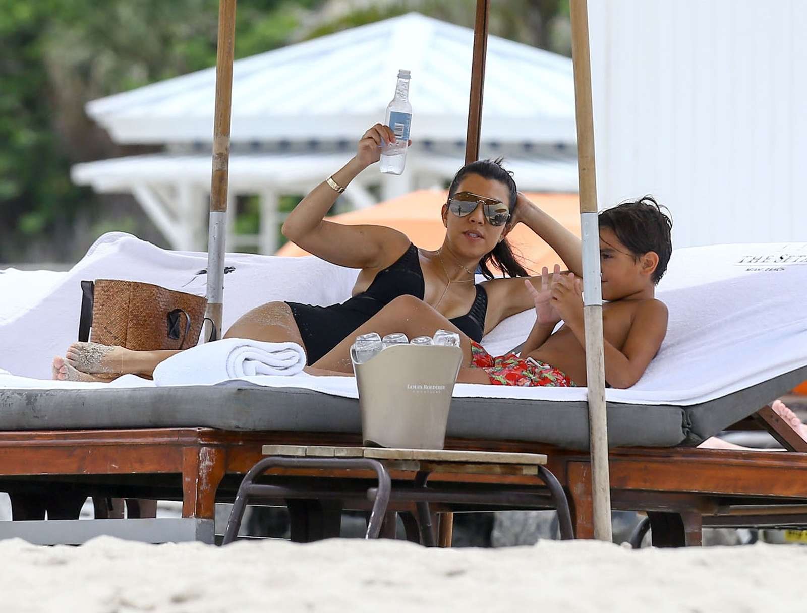 Кортни Кардашьян демонстрирует свою фигуру в новом черном купальнике вместе с Ларсой Пиппен и другими друзьями в Майами, 07/02/2016. Горячая мама! Кортни Кардашьян — американская телеведущая и модель. Возраст: 37 (18 апреля 1979).