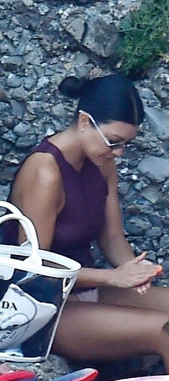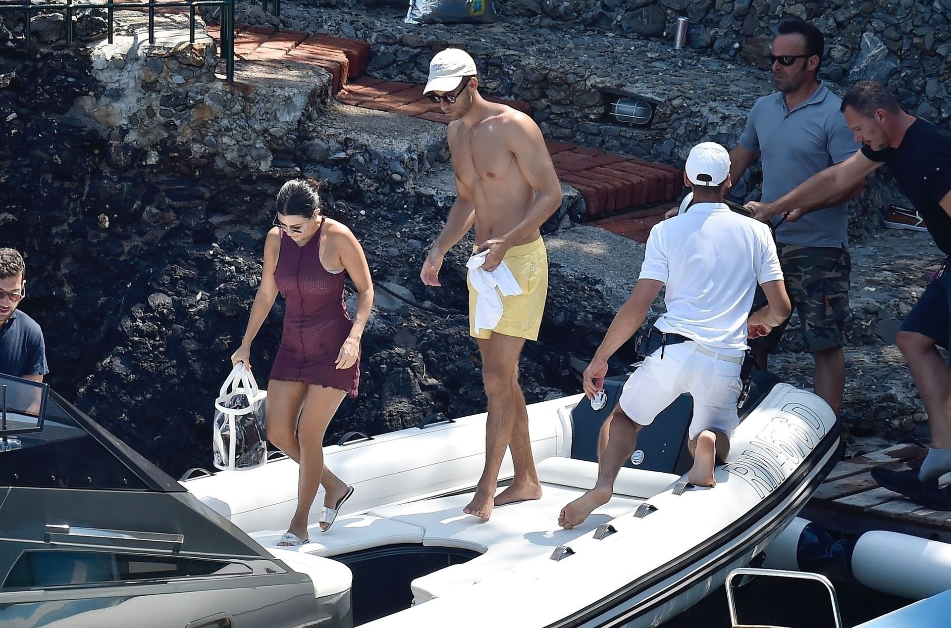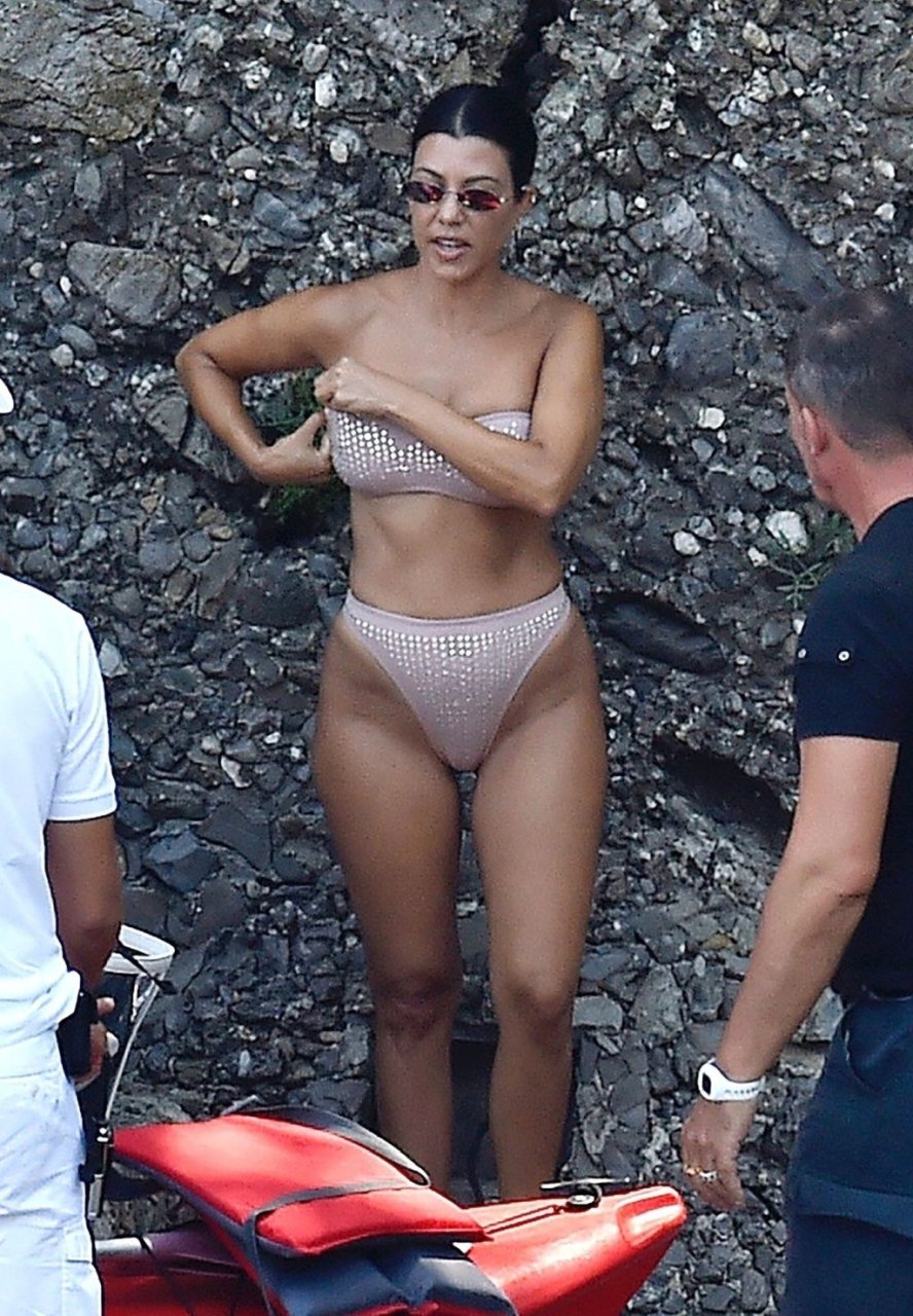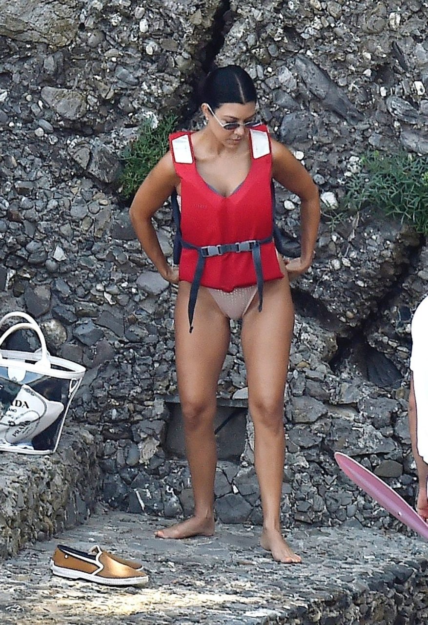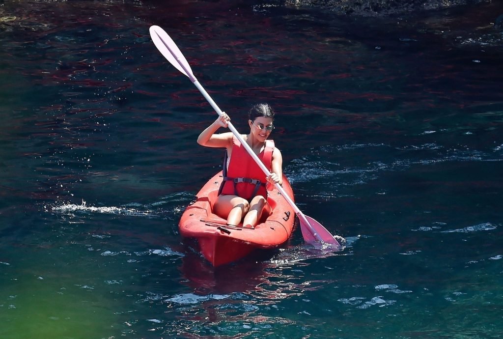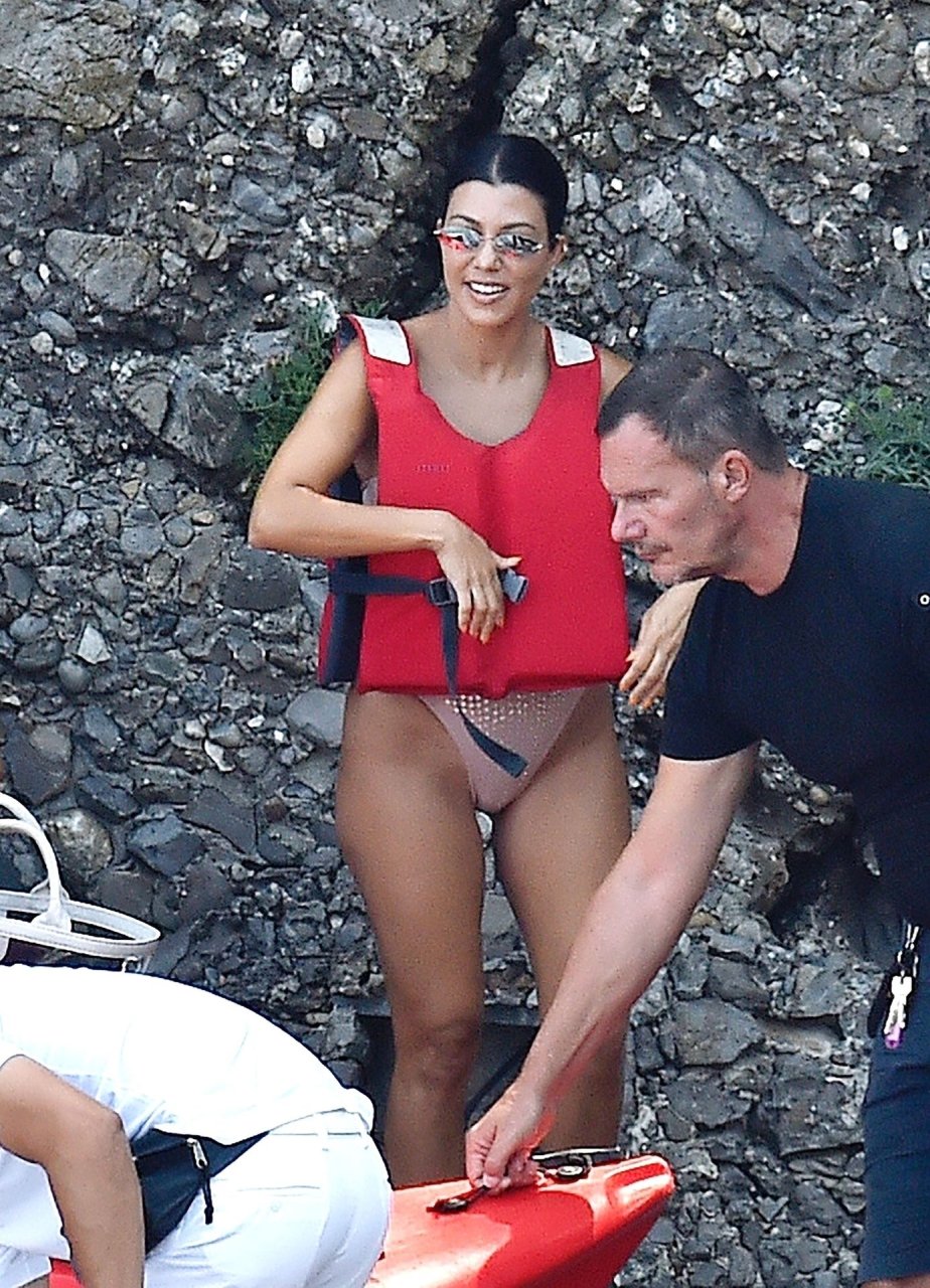 Американская звезда реалити-шоу Кортни Кардашьян отправляется на каноэ во время своего европейского отпуска с детьми в Портофино, 08/04/2019.