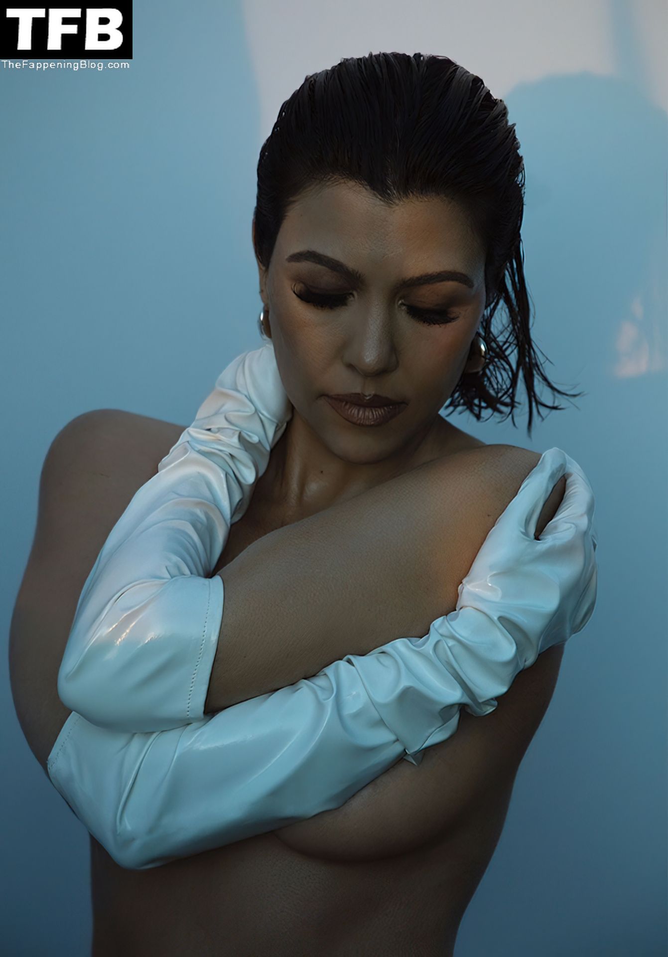 Звезда реалити-шоу Кортни Кардашьян демонстрирует свои сексуальные груди в фотосессии, сделанной Даниэллой Миденге для журнала Bustle (2022).