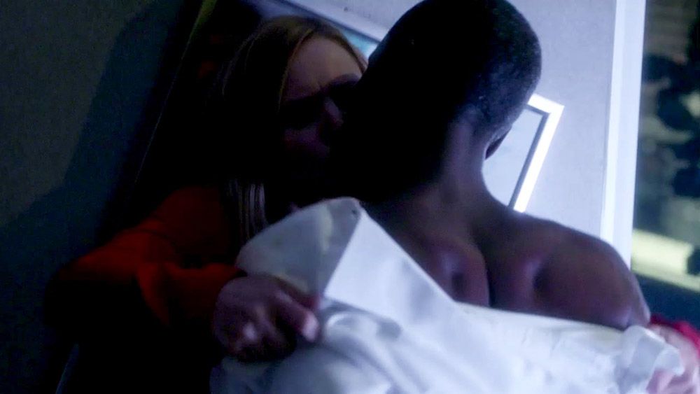 And lesbian porn of D’Arcy Carden and Kristen Bell is here. They are lesbian kissing until finally, D’Arcy turns into a guy, and Kirsten is now seen kissing him instead. All as the camera spins around them quickly and as stuff flies around.