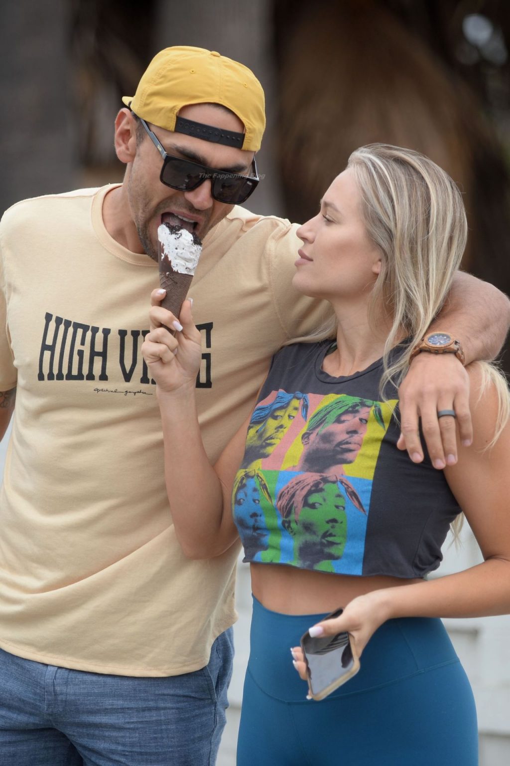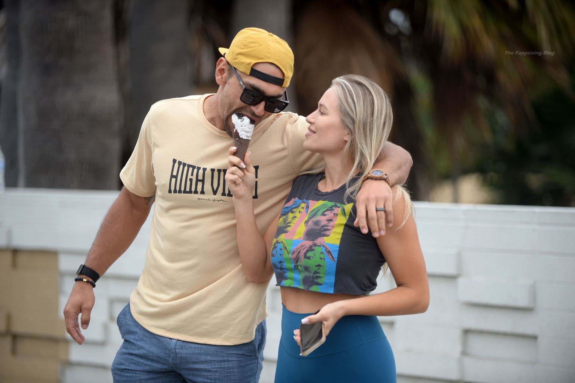 Конечно, рядом с ней был её муж, бегущий защитник New England Patriots, Тайлер Гаффни. Похоже, её мама никогда не говорила ей, что мороженое испортит аппетит к обеду.
