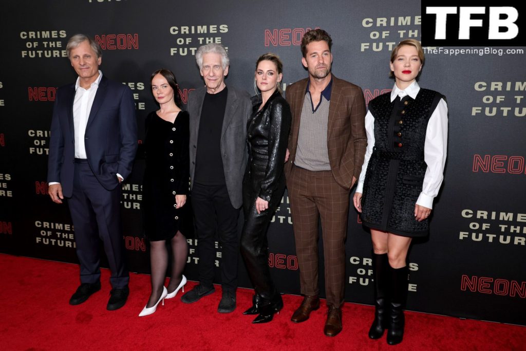 Звезда «Фаппенинга» Кристен Стюарт была замечена в кожаной одежде на нью-йоркской премьере фильма Дэвида Кроненберга «Преступления будущего» в театре Уолтера Рида, 02.06.2022.