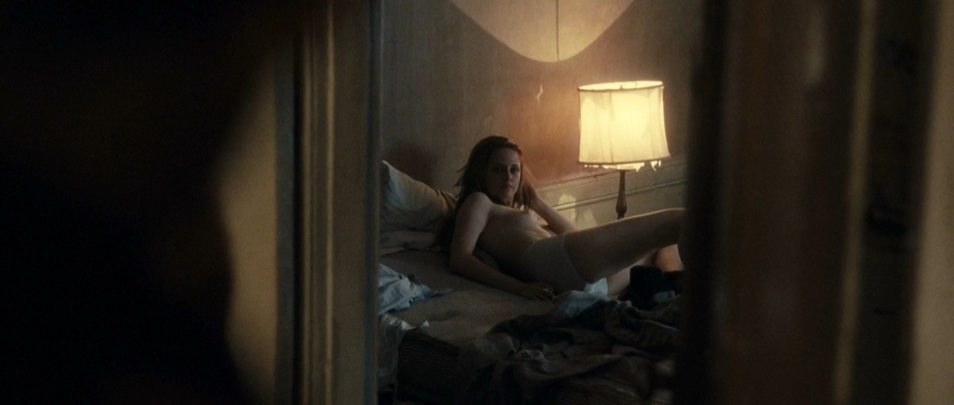 Голые фотографии Кристен Стюарт (скриншоты), гиф и видео из фильма “В дороге” (2012). У неё отличная грудь :-)