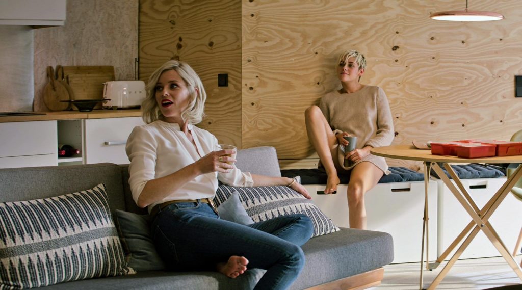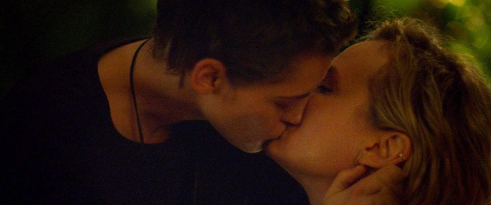 Then Kristen Stewart is making out with Diane Kruger before Kristen stands up. She leads Diane across a garden to lean against a fence. There, she reaches her hand down Diane’s pants to finger her.