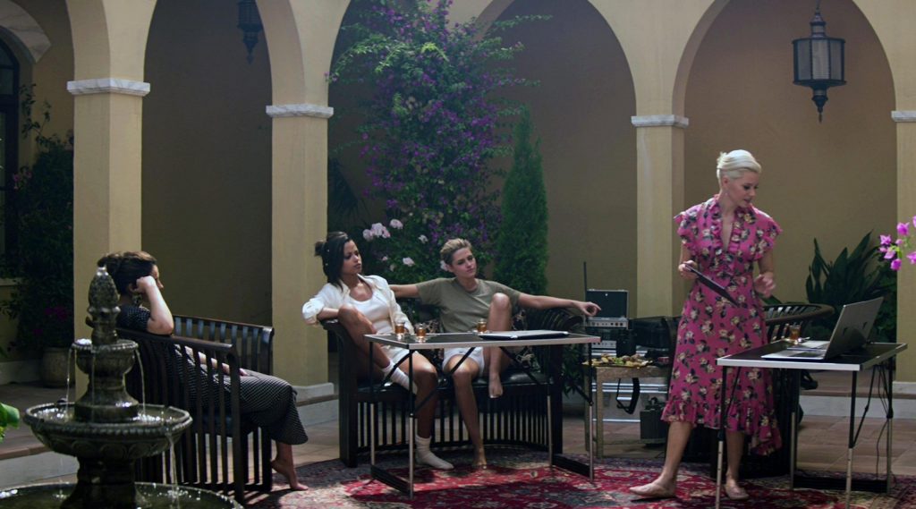 Кристен Стюарт будят в постели несколько парней. Она одета в винтажный бюстгальтер, затем парни забираются к ней в кровать, и каждый по очереди целует Кристен.