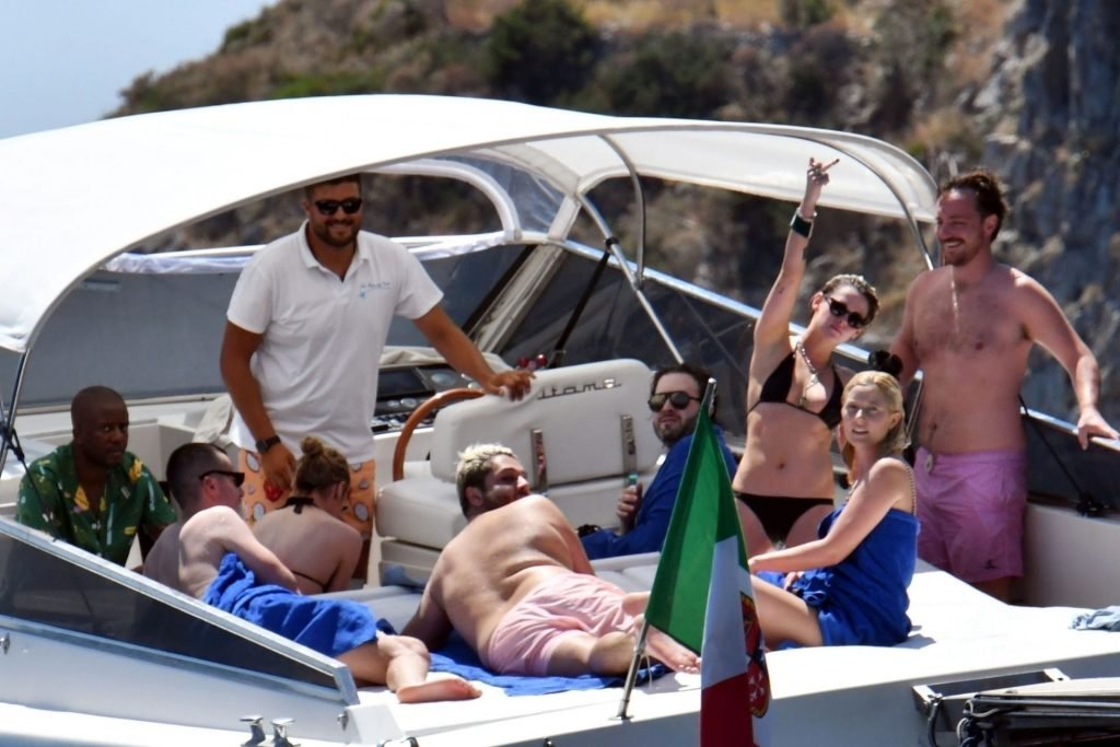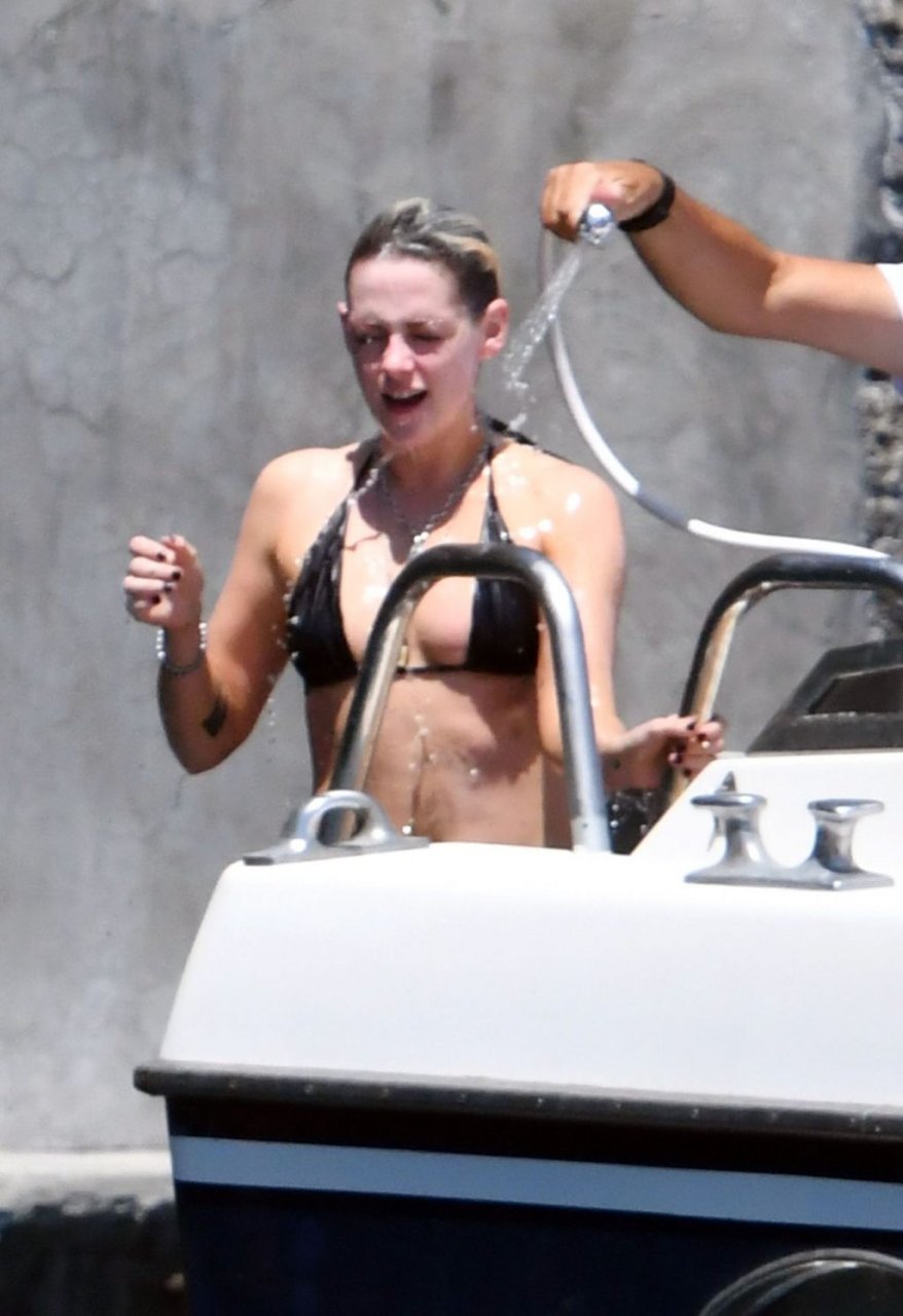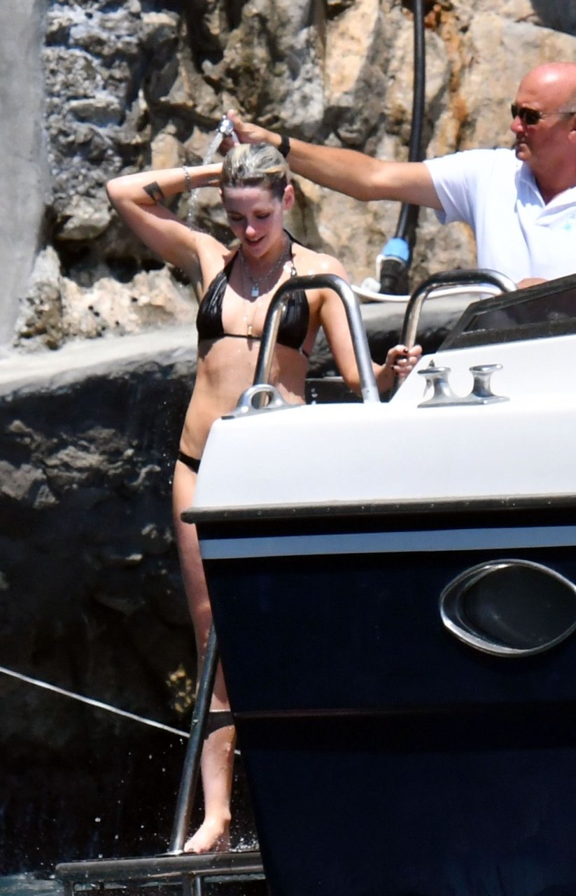 Показывая свою стройную фигуру в крошечном черном бикини, актриса Кристен Стюарт была замечена на летних каникулах на Амальфитанском побережье, 14.07.2019. Кристен, известная своей ролью в трилогии “Сумерки”, весело проводила время, ныряя с лодки и отдыхая с подругой Стеллой Максвелл и несколькими друзьями, а также загорала топлес под жарким итальянским солнцем.