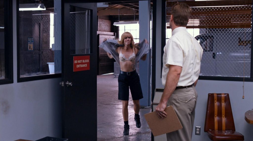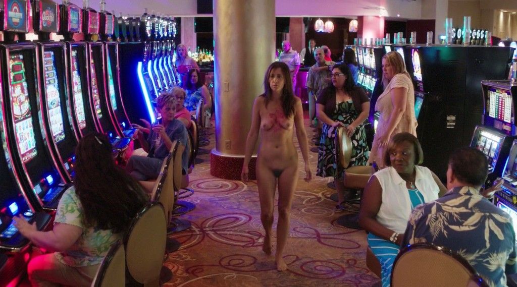 Kristen Wiig is walking completely naked across a casino floor, her tits and bush in view as she shows full-frontal nudity amongst the slot machines before some security people eventually cover her up.