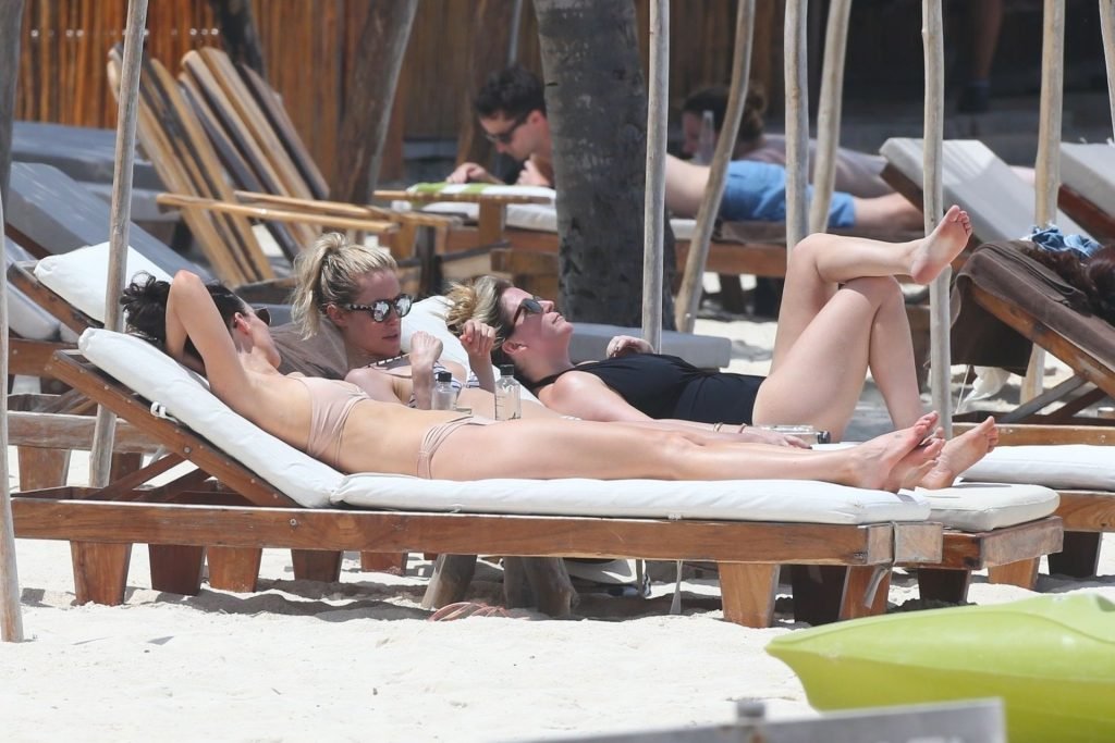 Сегодня у нас фотографии Кристин Каваллари в бикини прошлого года, когда она наслаждалась девичьими каникулами с подругами в Тулуме, 17.05.2018. Звезда впитывала солнечный свет и играла на волнах, демонстрируя свою подтянутую фигуру в крошечном полосатом бикини.