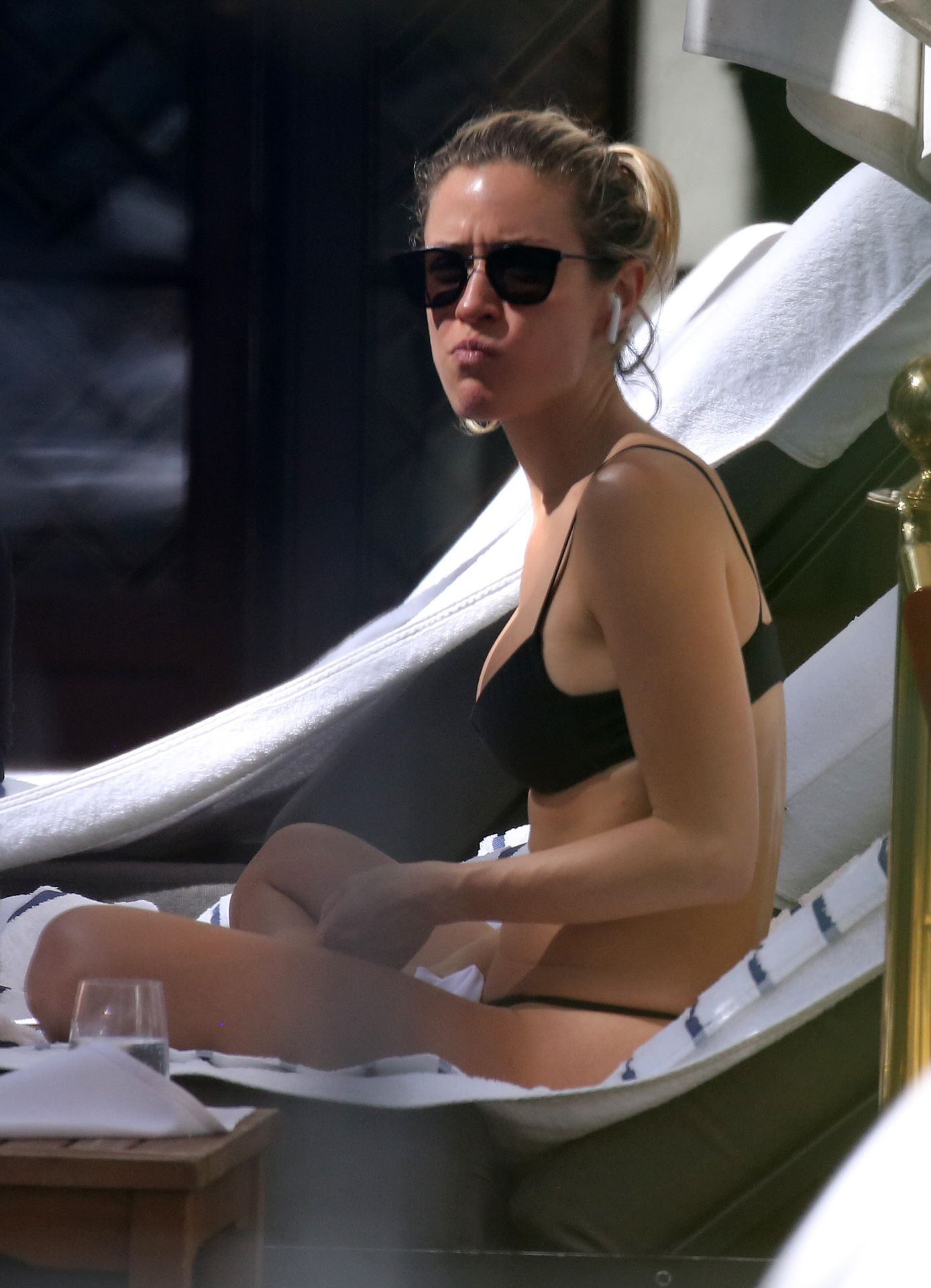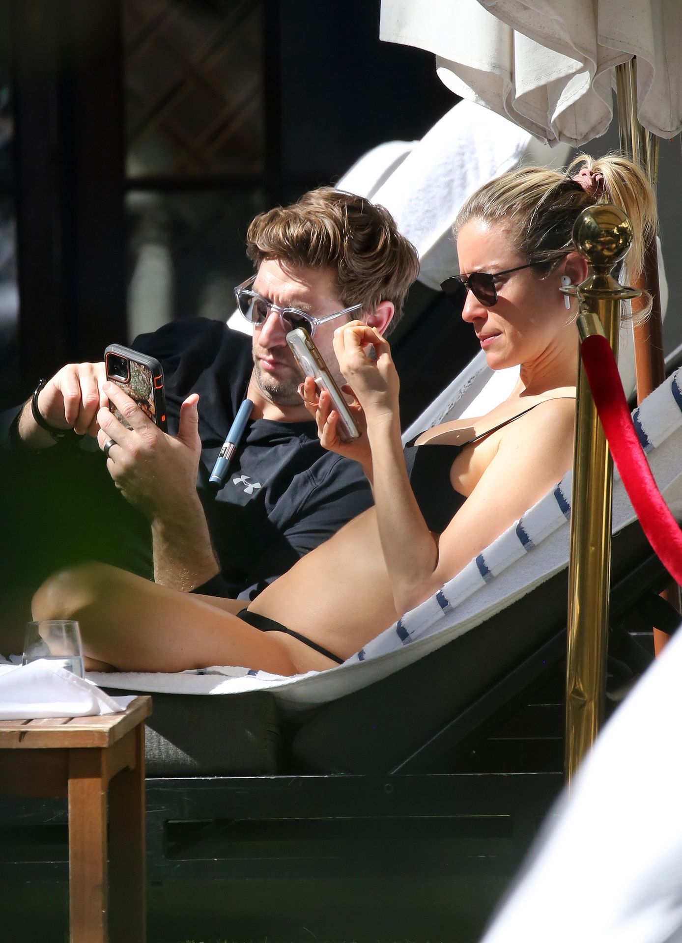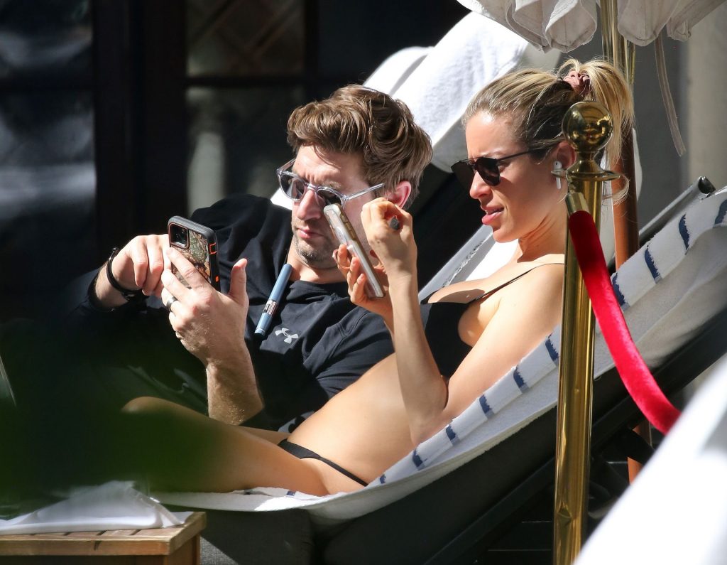 Кристин Каваллари носит черное бикини, отдыхая у бассейна с мужем Джей Катлером в Майами, 30.01.2020.