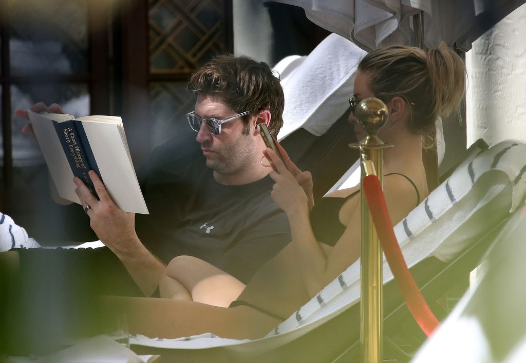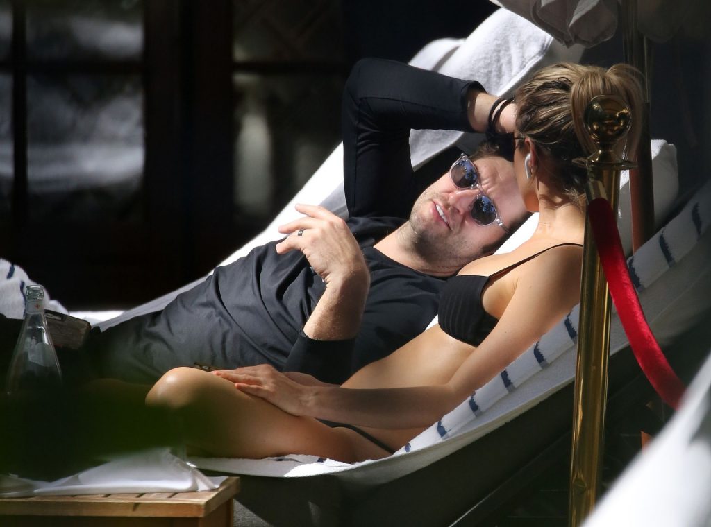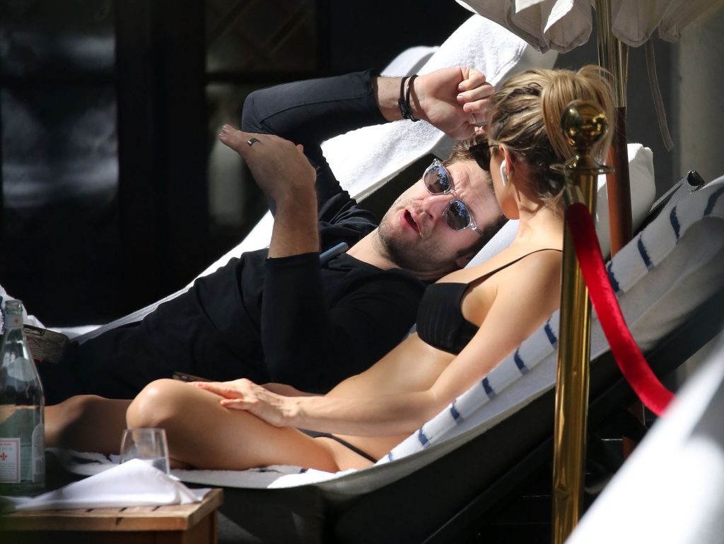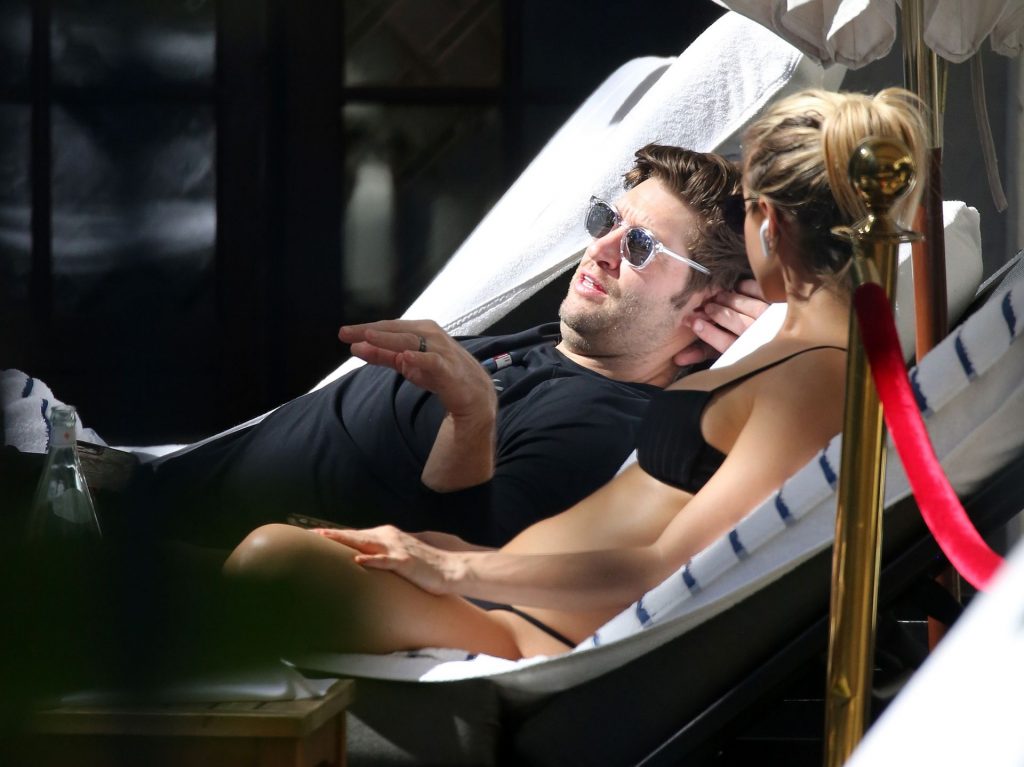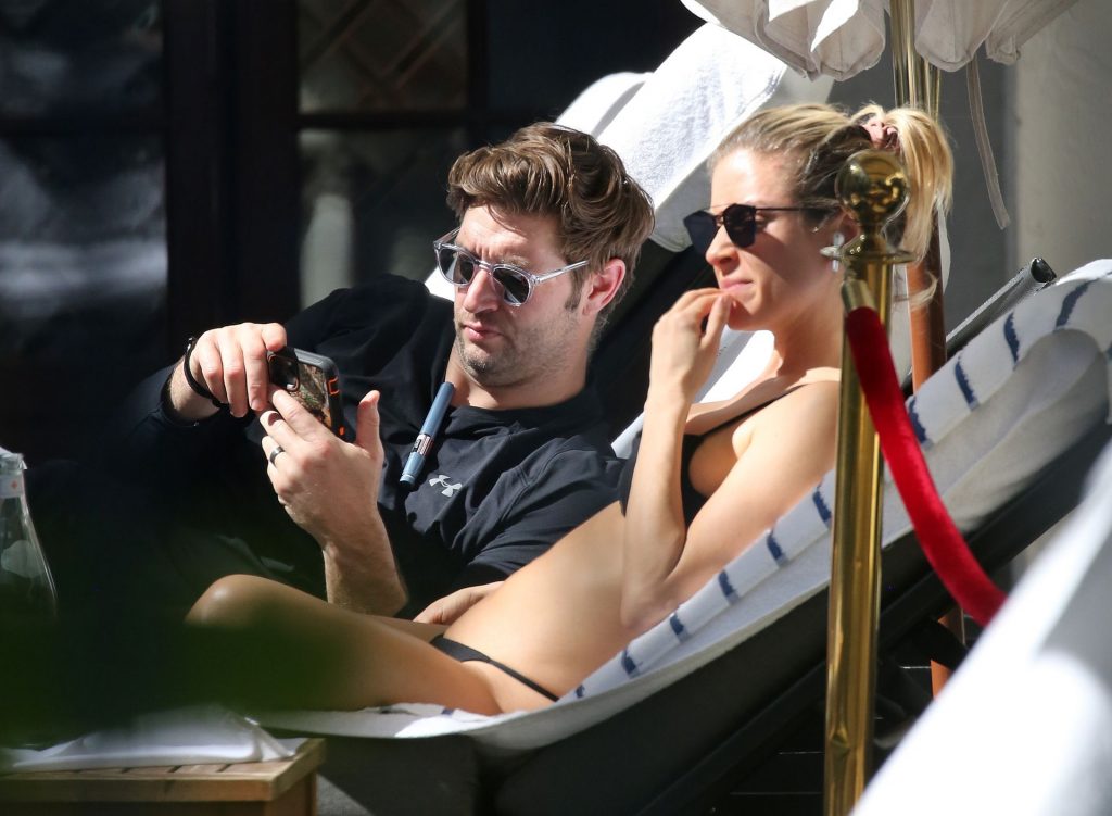 Кристин Каваллари носит черное бикини, отдыхая у бассейна с мужем Джей Катлером в Майами, 30.01.2020.
