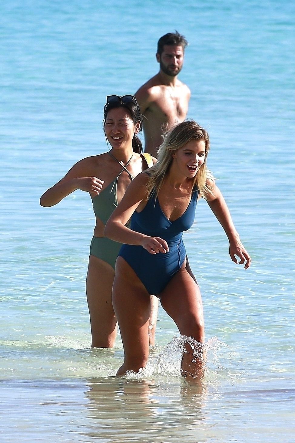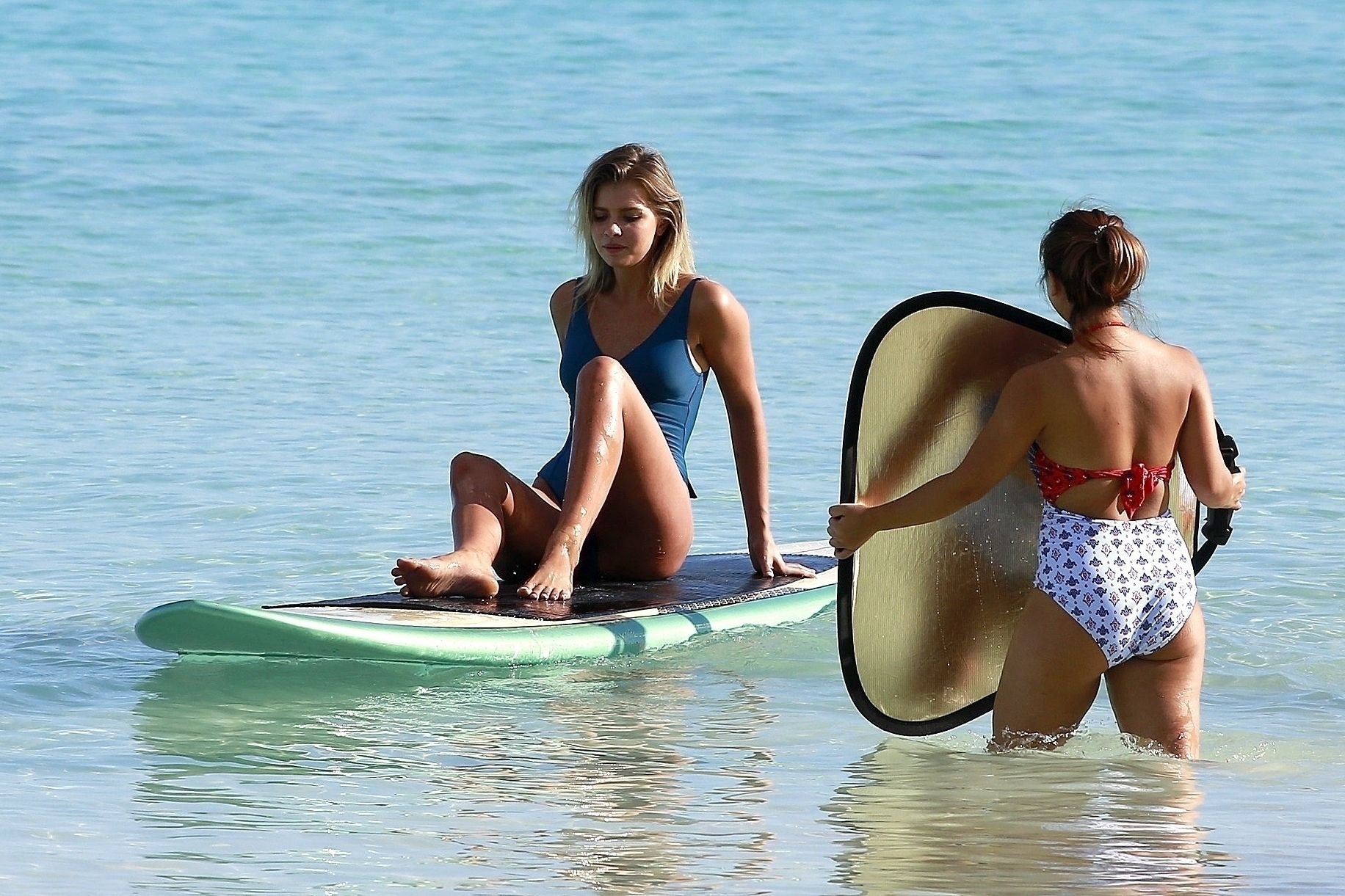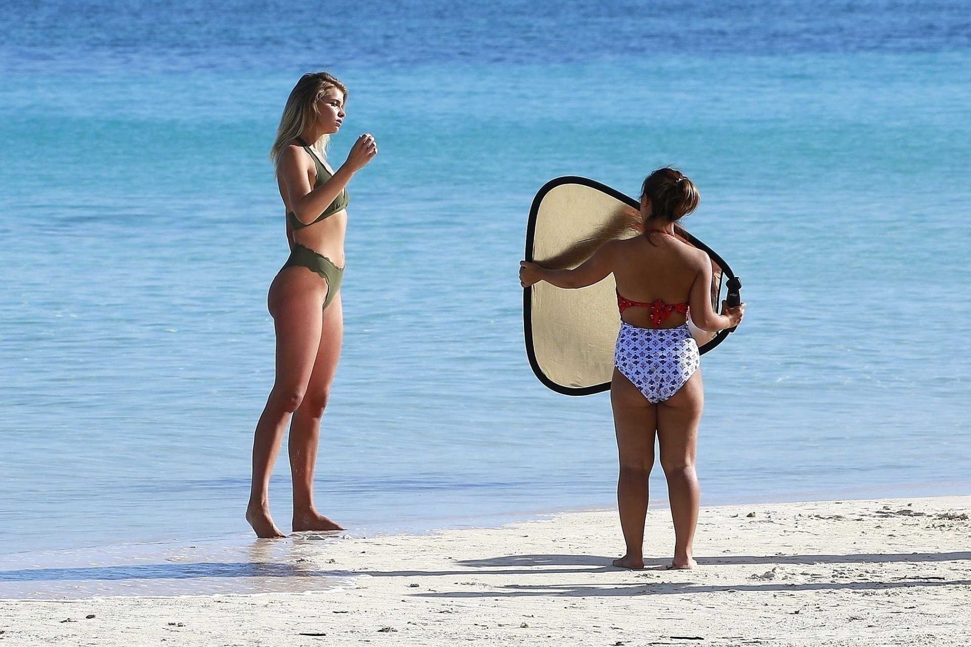 Кристина Мендонса отправляется на пляж для фотосессии в купальниках на прозрачных голубых водах Канкуна, 27.11.2017. 20-летняя австралийская модель примерила четыре разных наряда: два бикини и два цельных купальника, позируя на паддлборде.
