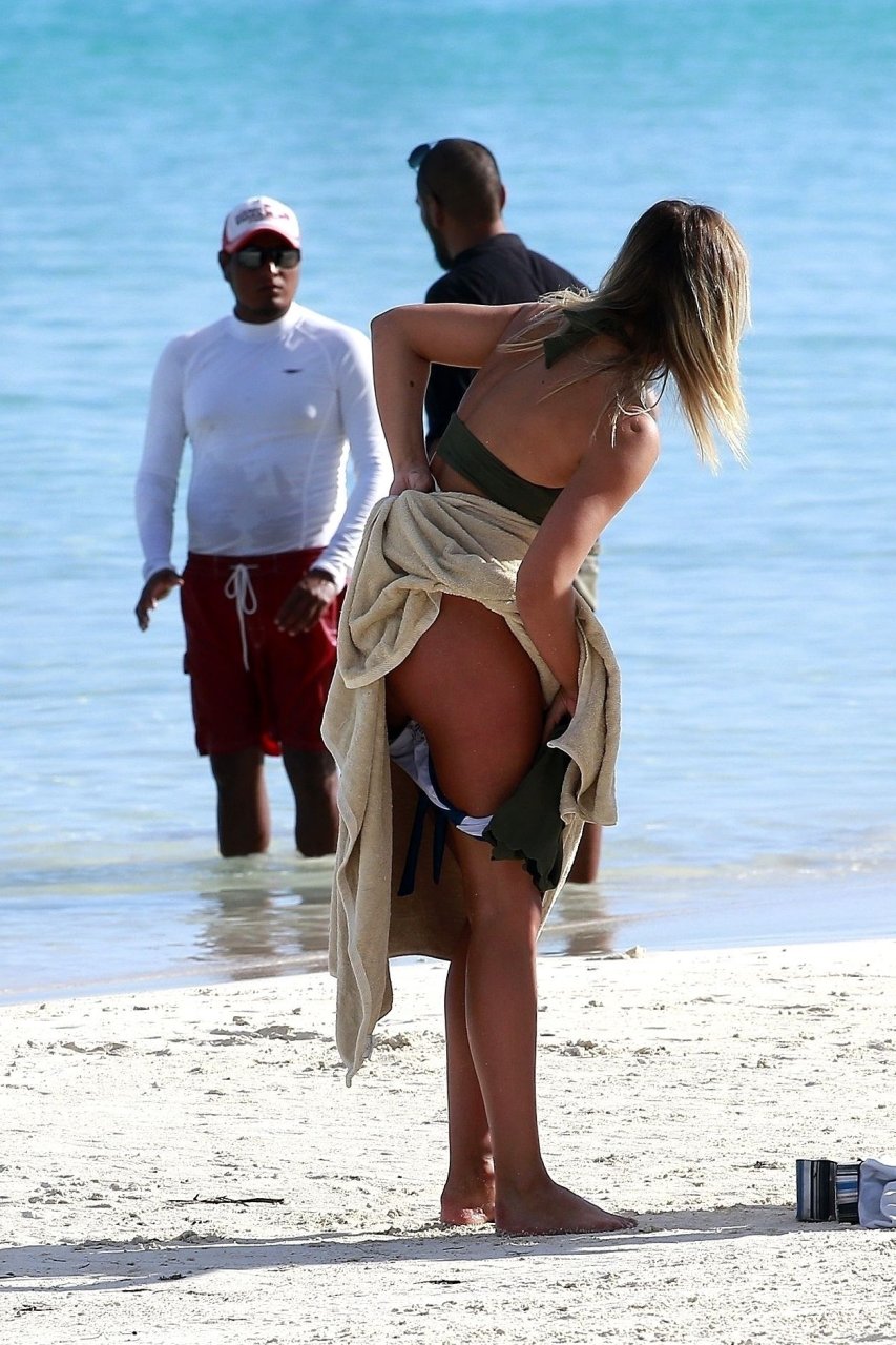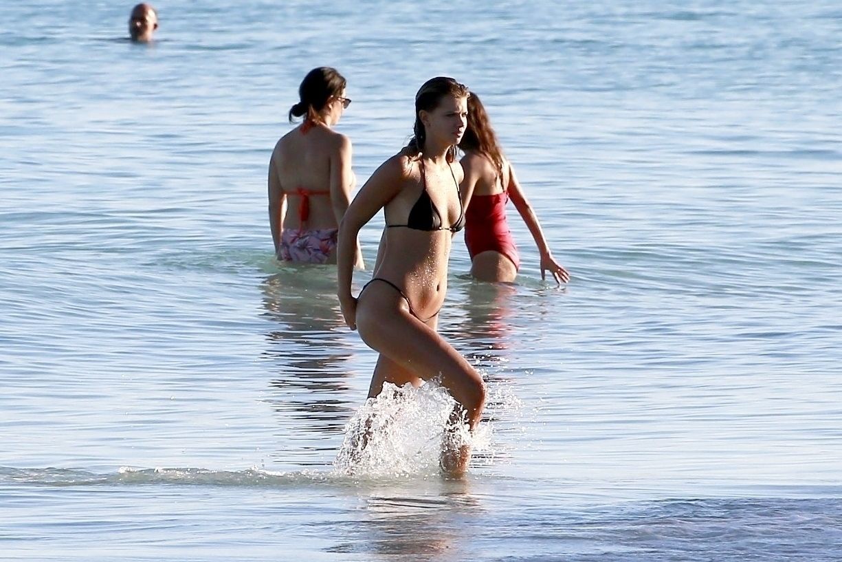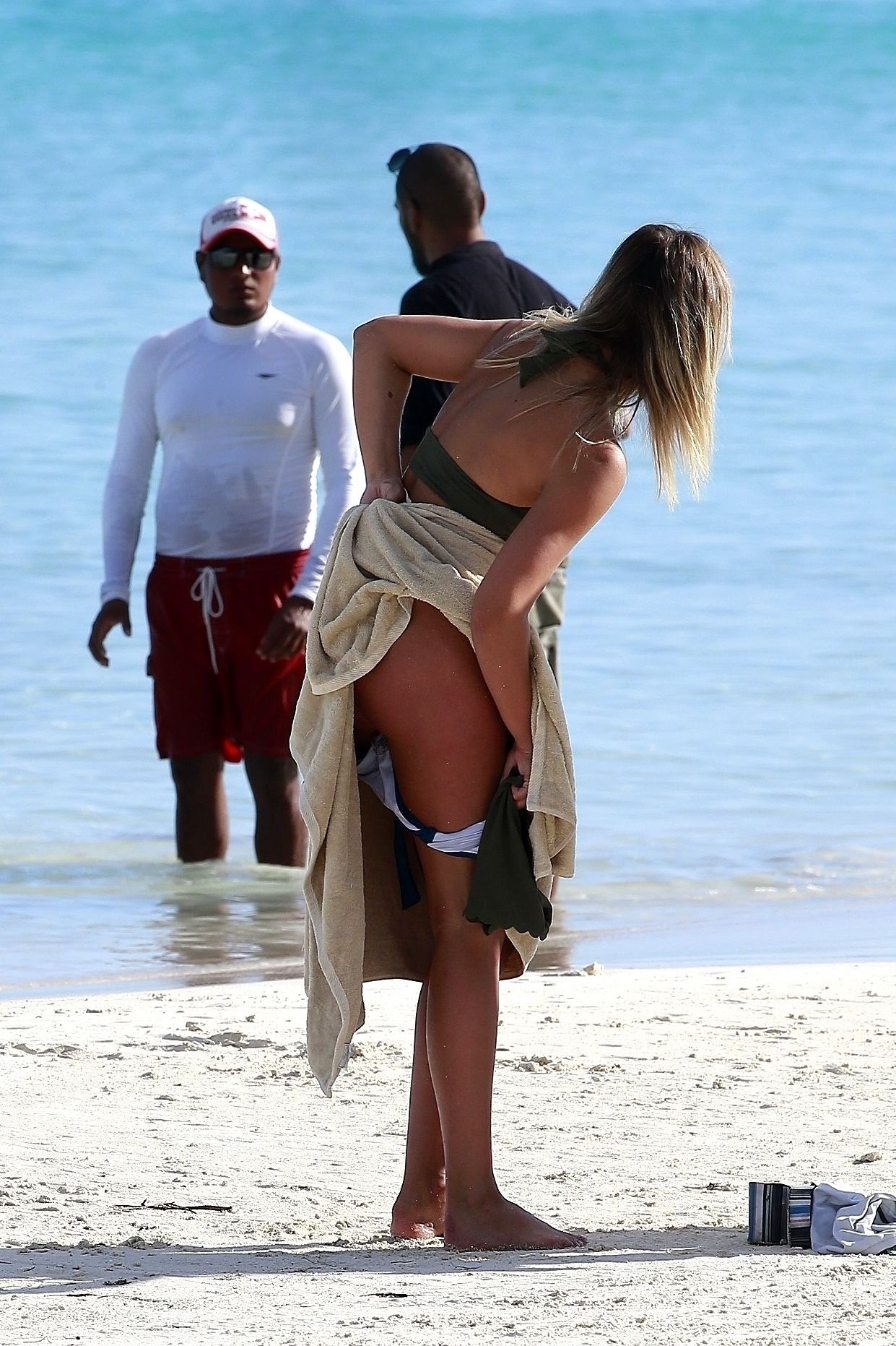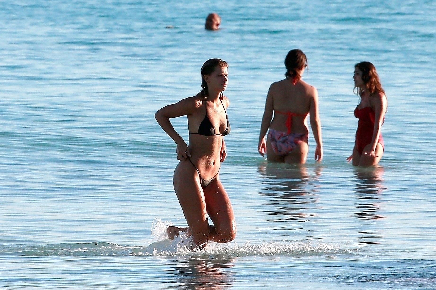 Кристина Мендонса отправляется на пляж для фотосессии в купальниках на прозрачных голубых водах Канкуна, 27.11.2017. 20-летняя австралийская модель примерила четыре разных наряда: два бикини и два цельных купальника, позируя на паддлборде.