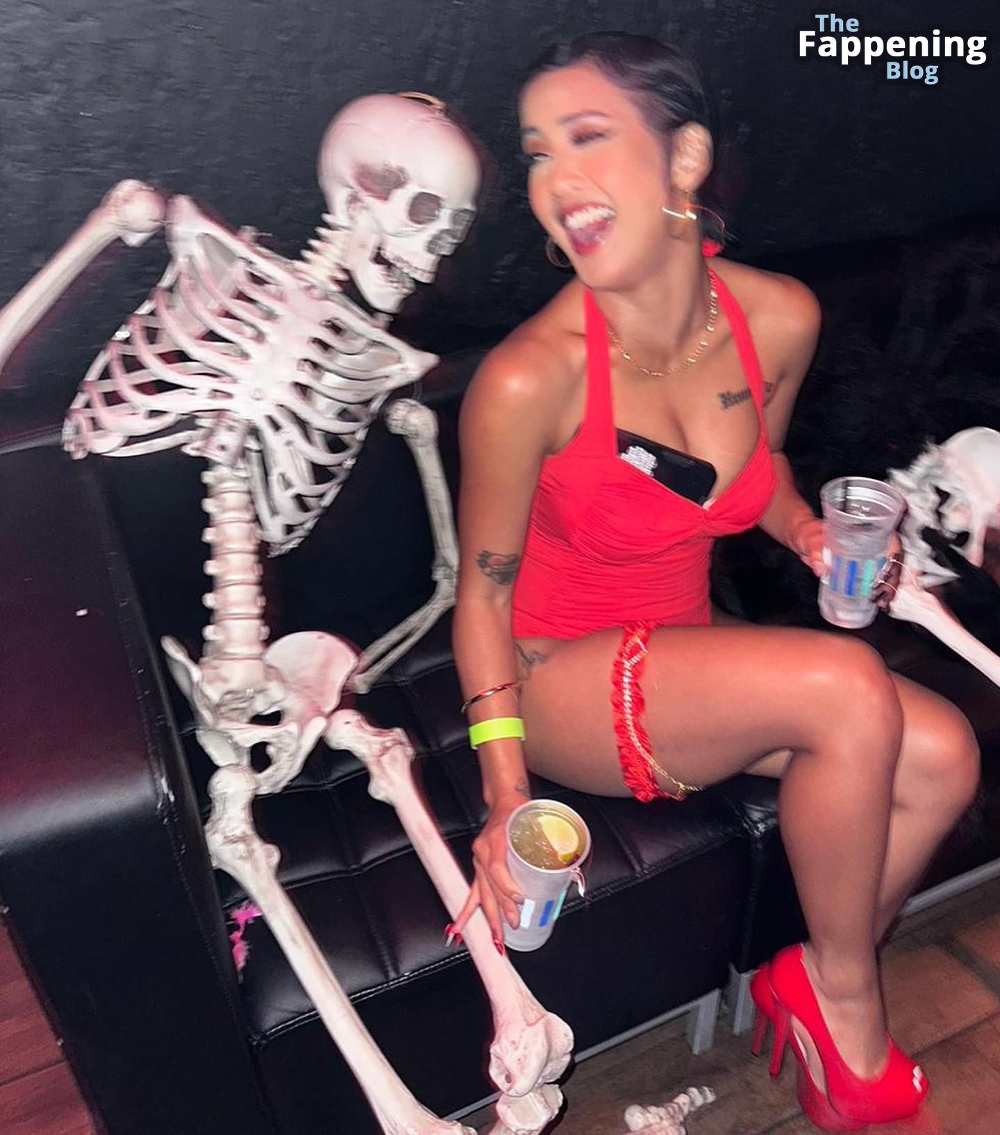 Посмотрите! Кайла Фахардо, бывшая чирлидер из Филиппин, теперь блистает как танцовщица на Бродвее. Она полностью отдалась образу с сексуальными нарядами на вечеринках. Она блистала в крошечном красном боди, подчеркивающем её потрясающие формы, и дополнила образ эффектными туфлями на высоком каблуке.