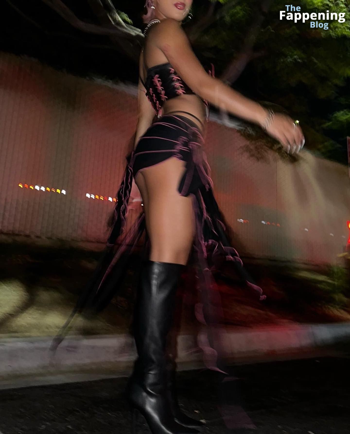 Девушка даже устроила зажигательный танец прямо на улицах Лос-Анджелеса! Скажем вам, в тот вечер она выглядела просто потрясающе, и скелет, с которым она позировала, тоже почувствовал что-то особенное.