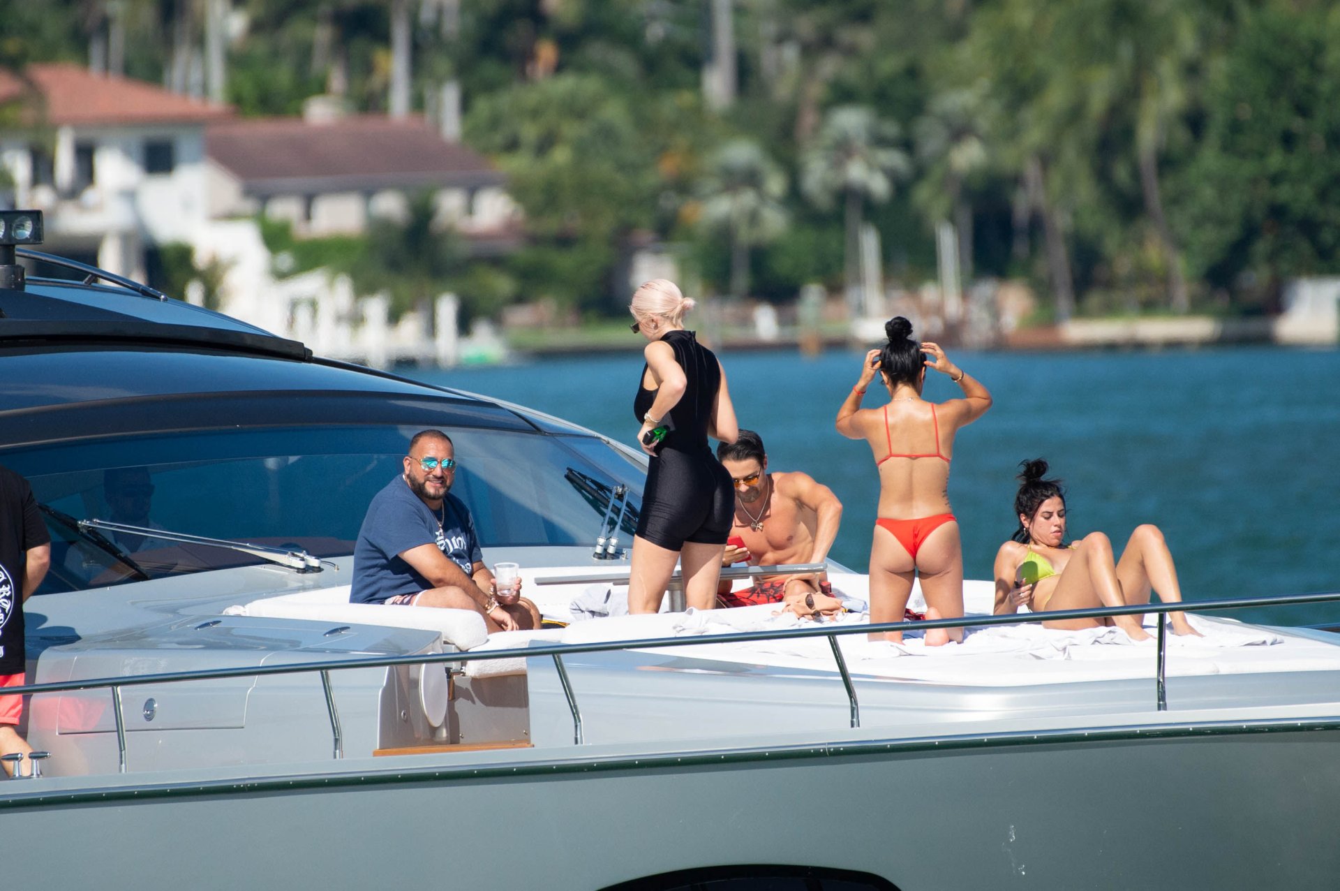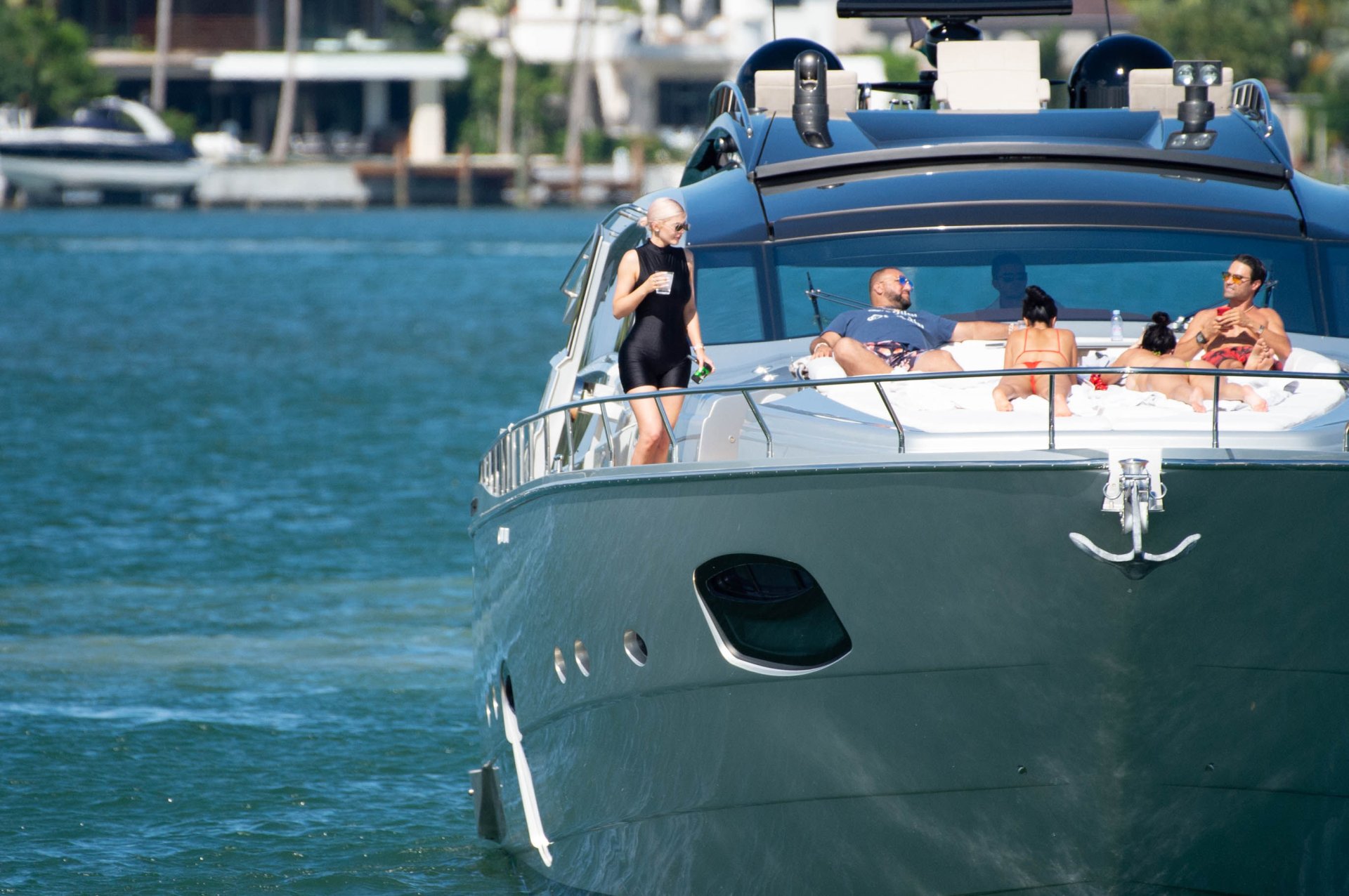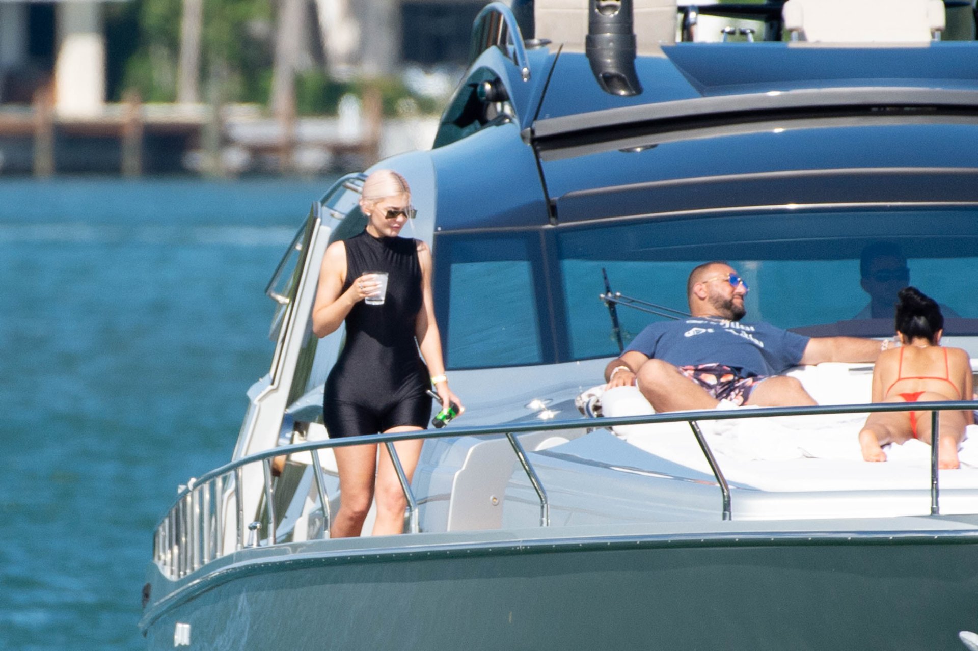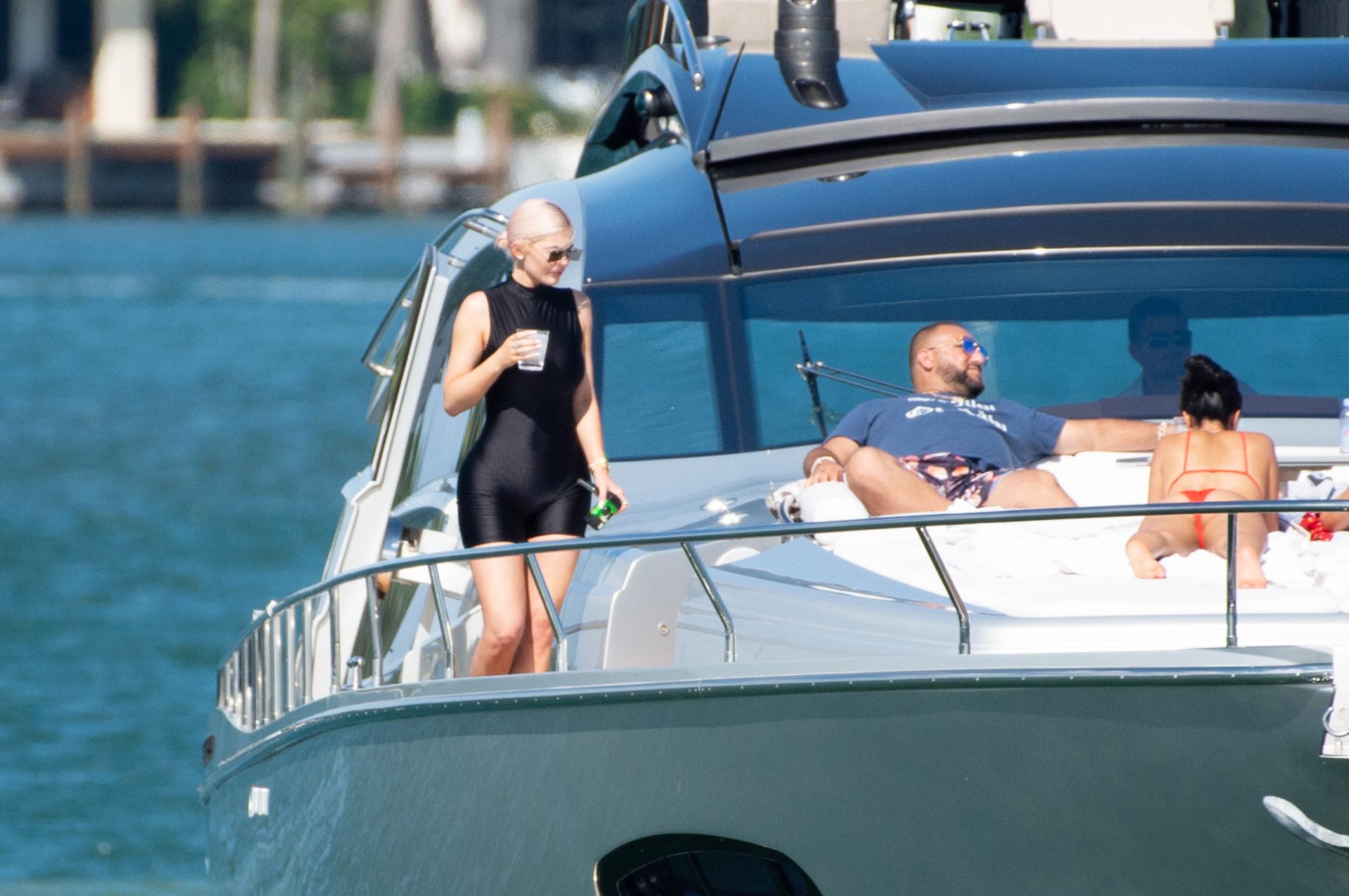 Kylie Jenner (21) садится на борт The Groot со своей дочерью Сторм и лучшей подругой Джордин Вудс в Майами-Бич, 01.10.2018. Кайли видно, как она берет ребенка на борт, а затем наслаждается солнцем и едой с друзьями, демонстрируя свои формы в черном цельном купальнике.