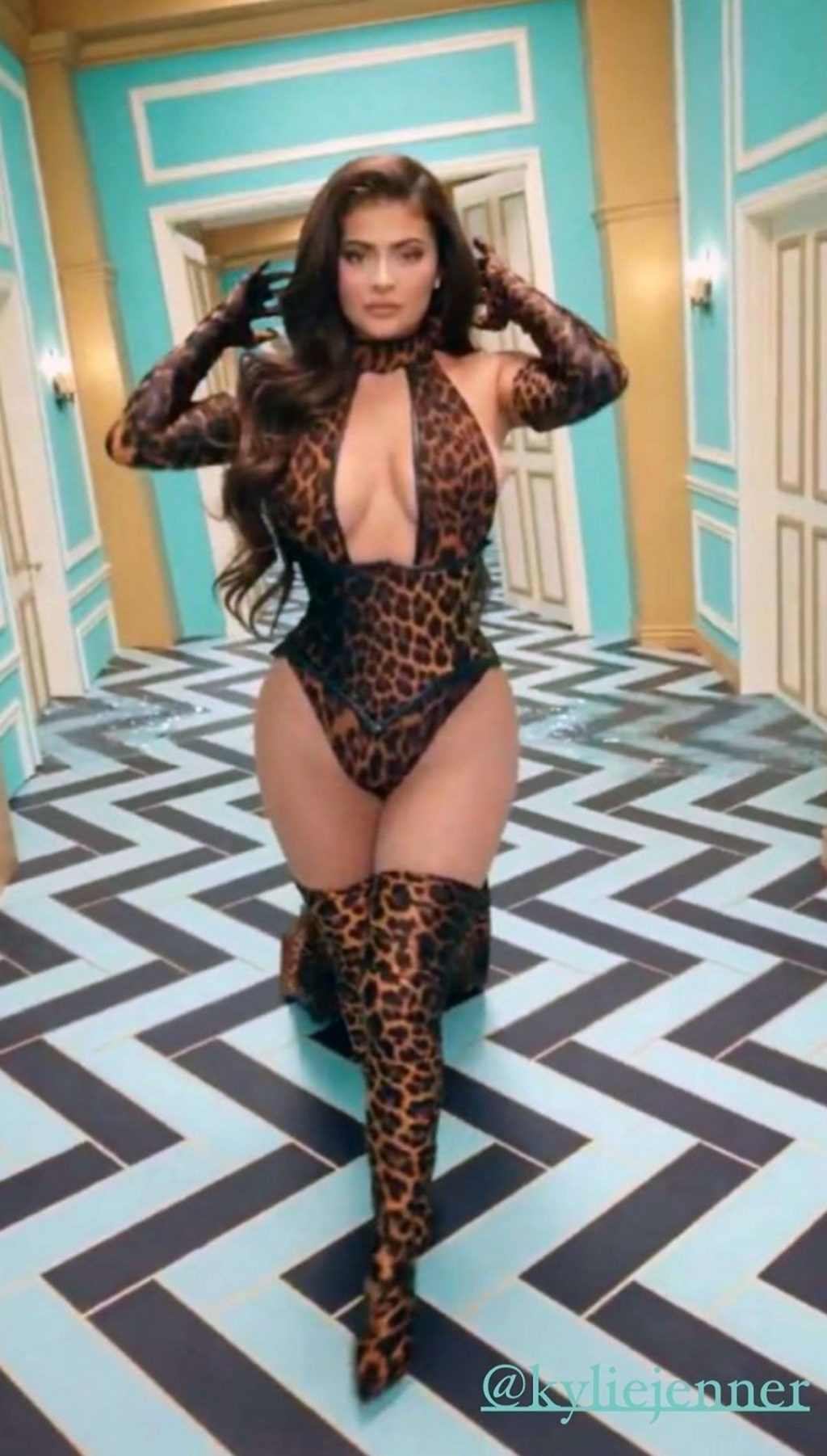 Now, folks, I think it’s time for me to show you some photos of Kylie Jenner’s sexy leopard print costume! She wore this to her friend’s Cardi B’s music video for a song called “WAP”!