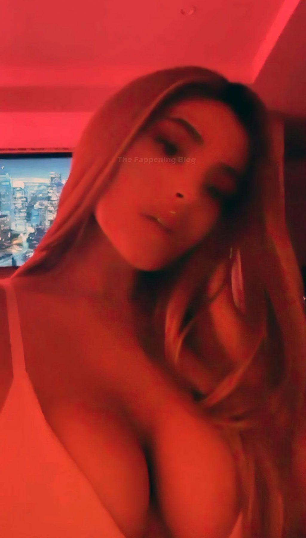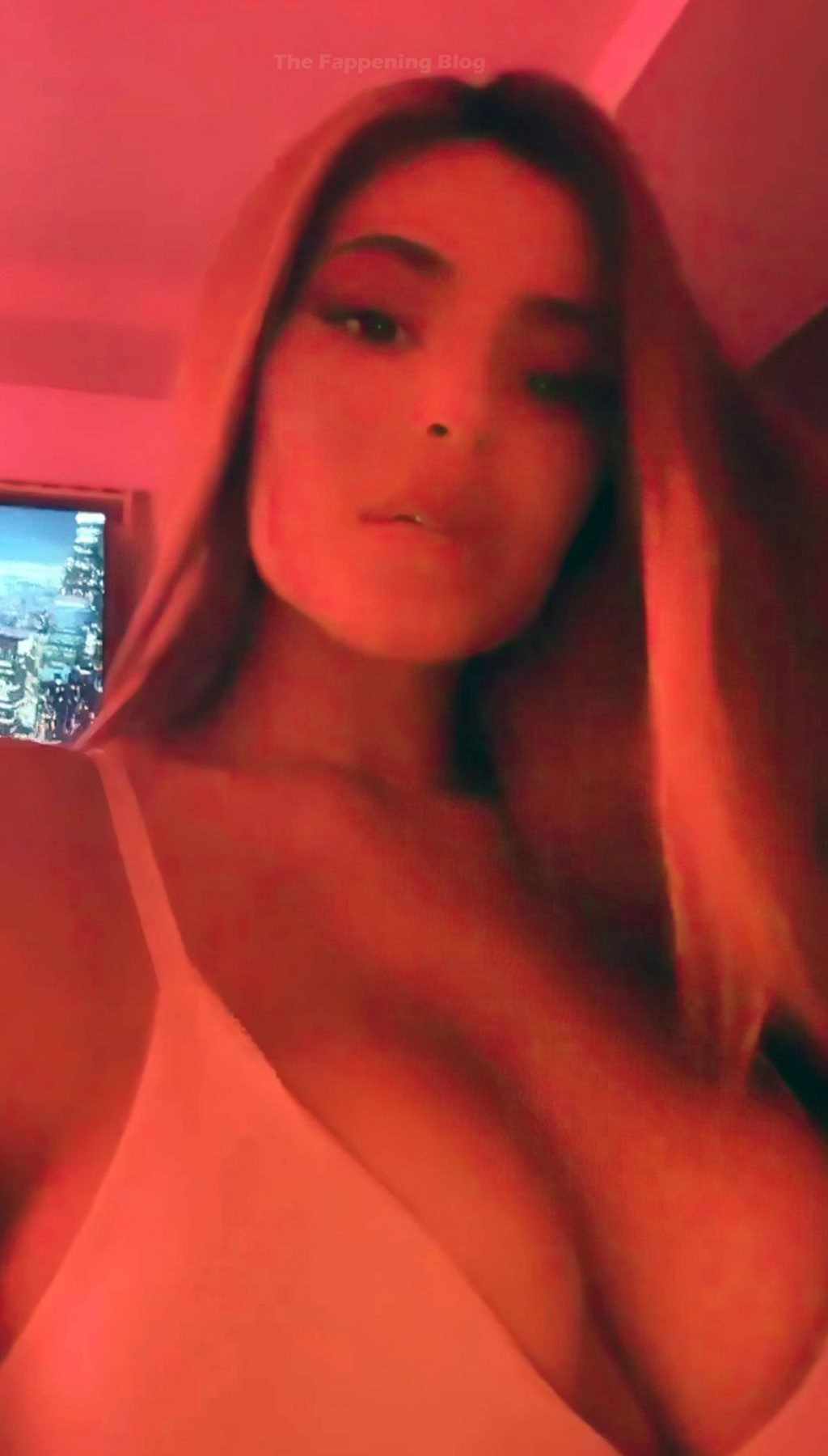 So, guys, below, you’ll find some Kylie Jenner braless photos! She was posing for her Instagram in a semi see-through tank top! But the real juicy part here is the fact that she had no bra underneath the top! So, enjoy her big plastic tits and nice nipples!