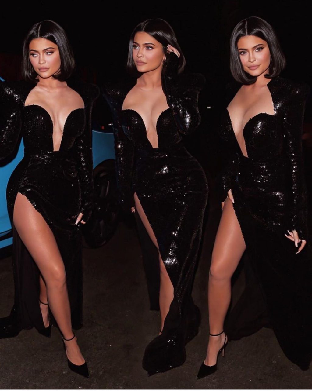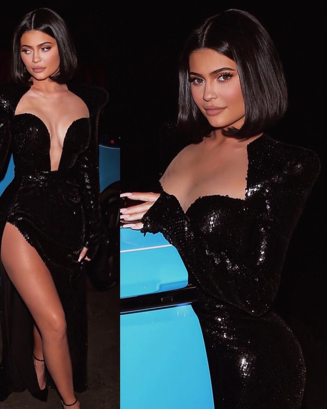Миллиардерша и звезда реалити-шоу Кайли Дженнер поражает в длинном сверкающем черном платье с высоким разрезом, когда ее видели направляющейся на частную эксклюзивную вечеринку для избранных “А-листа” музыкального магната ‘P.Diddy’ в Холмби-Хиллз, 15.12.2019.
