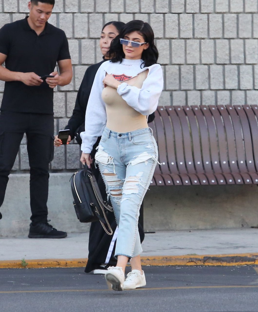 Кайли Дженнер без бюстгальтера в прозрачном топе в Лос-Анджелесе, 15.06.2017. Кайли Дженнер — американская звезда реалити-шоу, дизайнер, актриса, светская львица, модель, бизнесвумен. Возраст — 19.