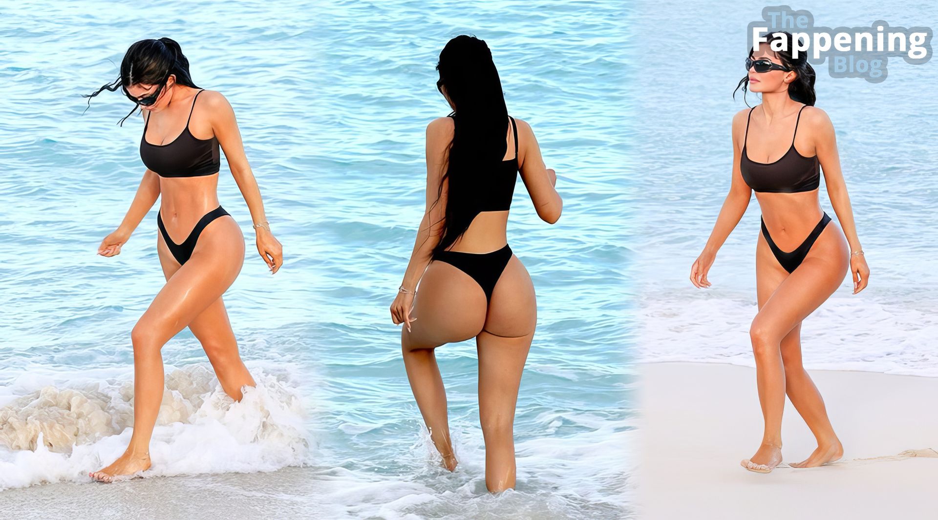 Кайли Дженнер демонстрирует свою большую попу в стрингах на пляже на Теркс и Кайкос (23 фото)