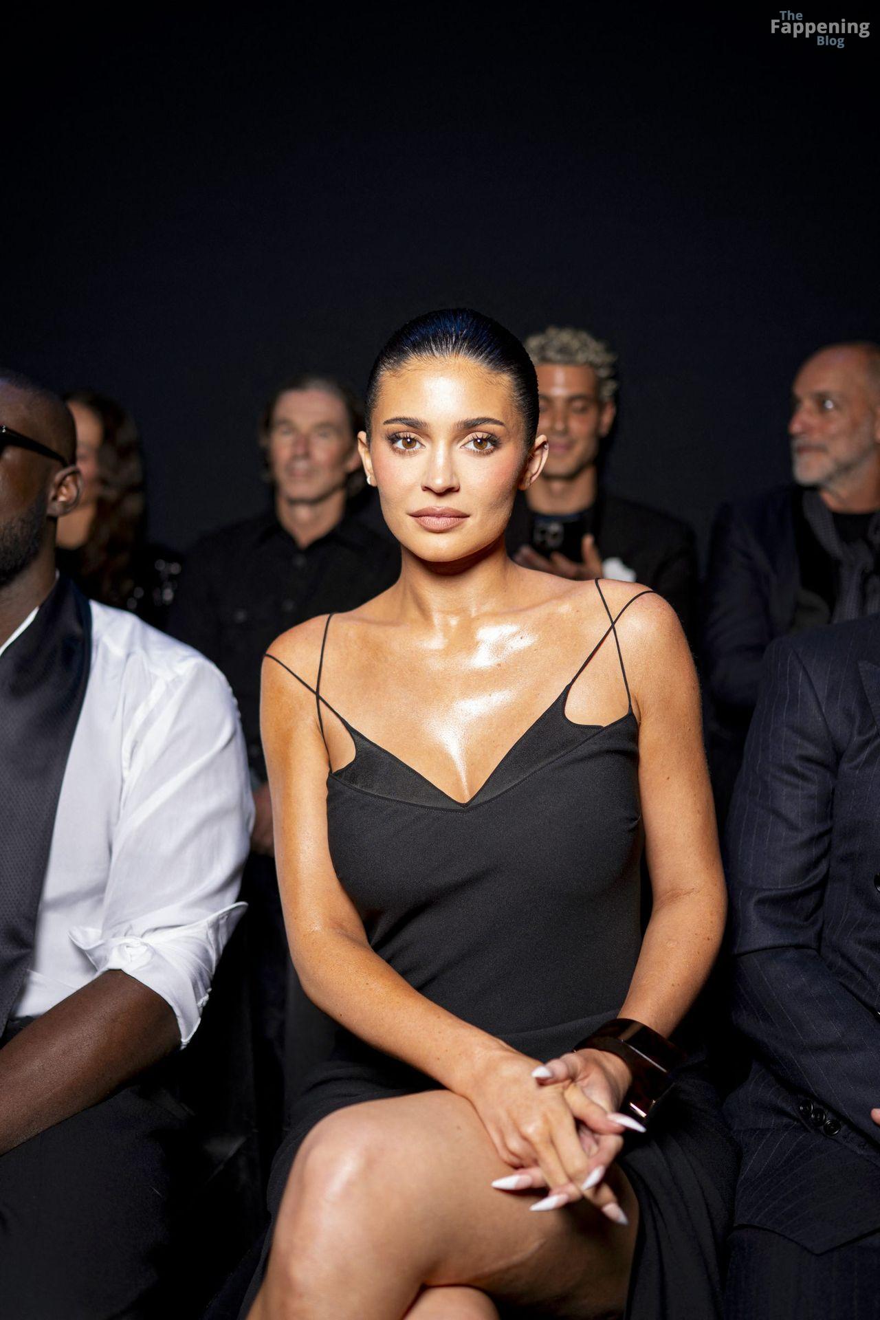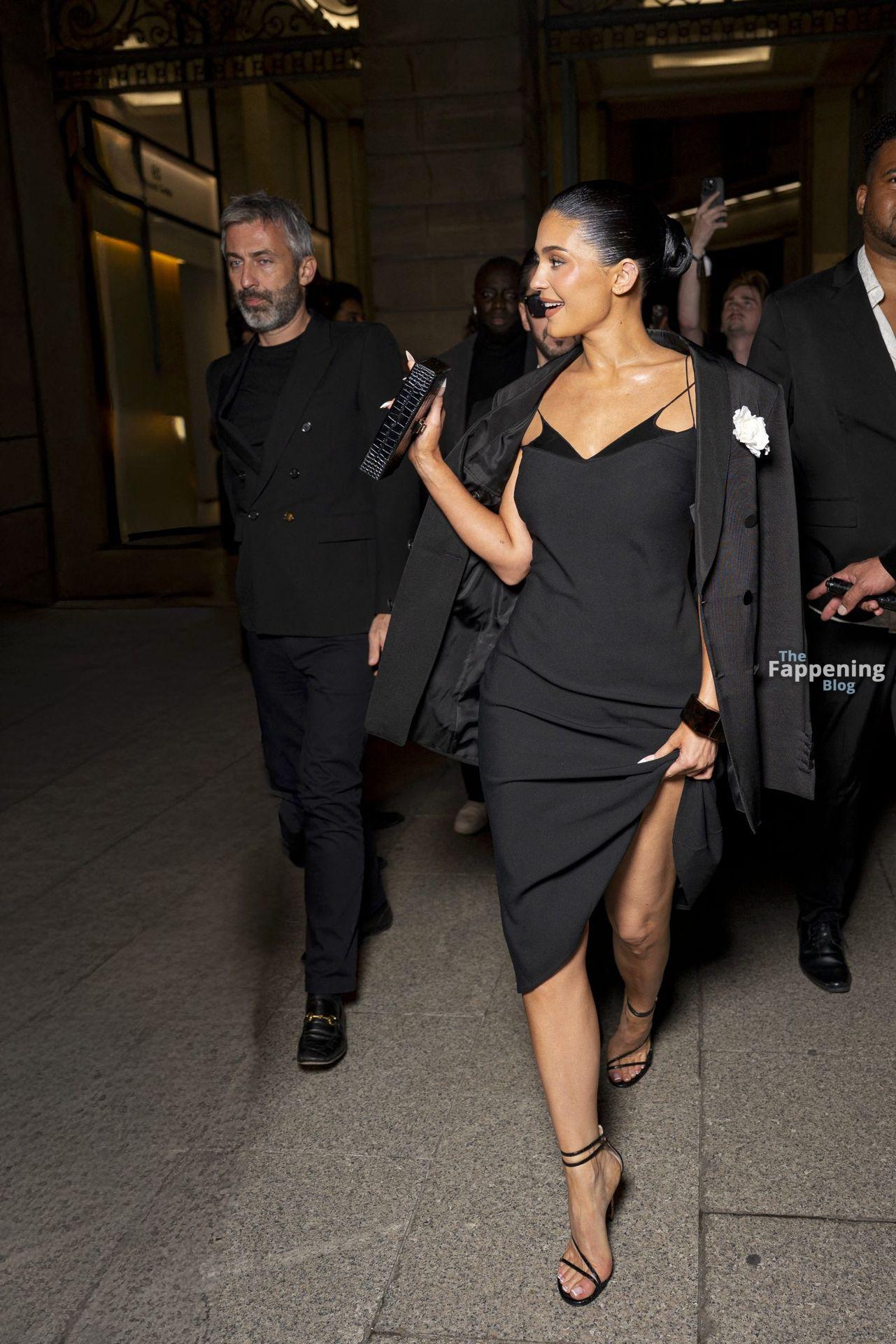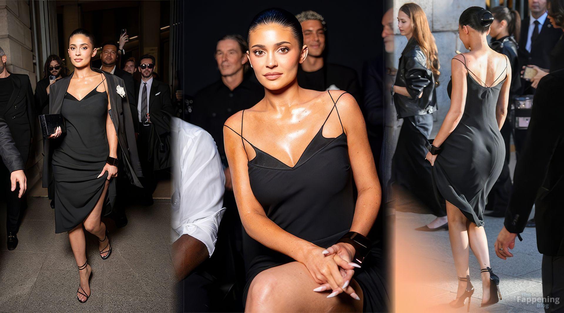 Кайли Дженнер зажгла на шоу Tom Ford в Париже, демонстрируя свои прелести в сексуальном черном платье с дерзким разрезом до бедра.