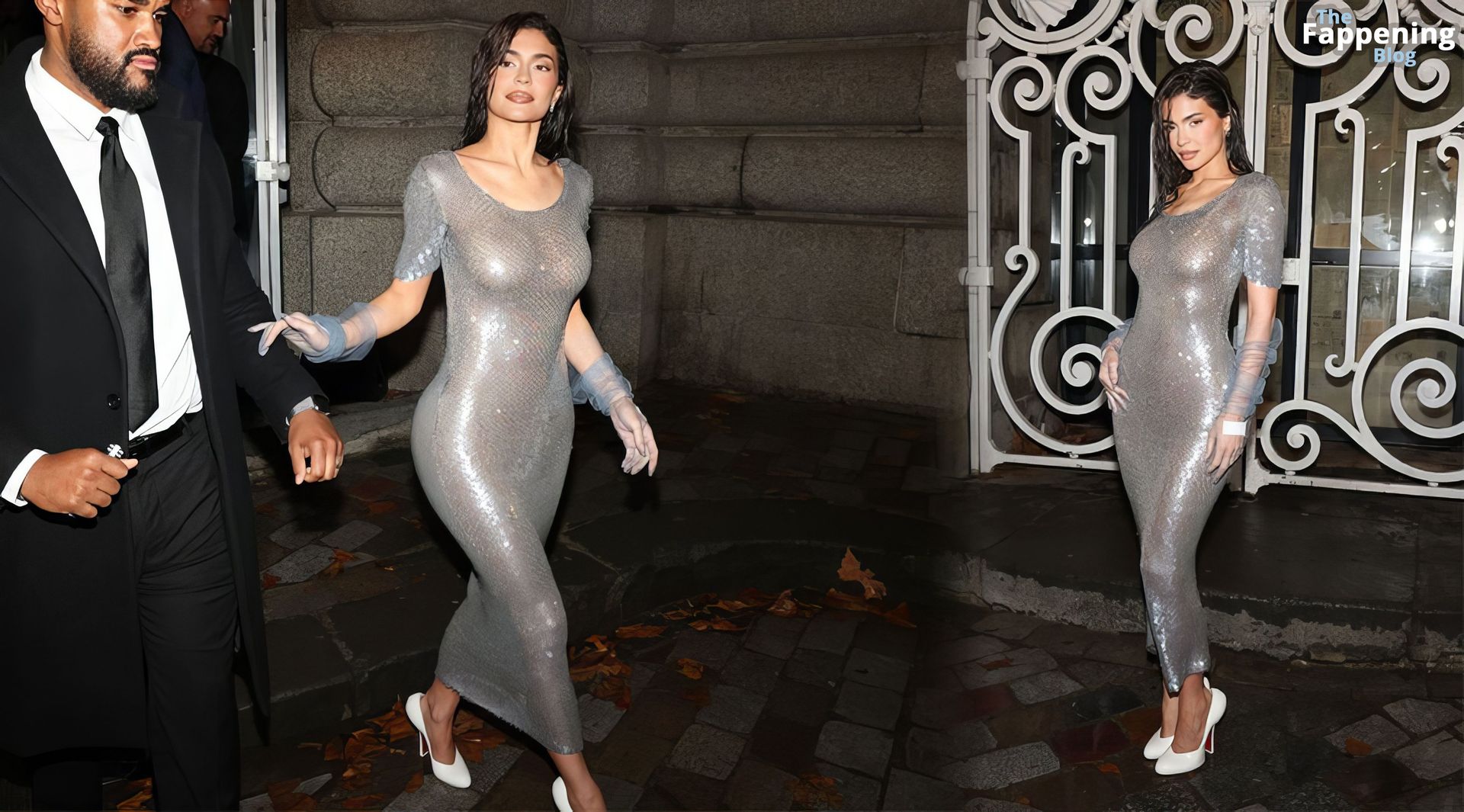 Кайли Дженнер блистает в серебряном платье от Maison Margiela, приковывая к себе все взгляды на Неделе моды в Париже. Готовьтесь к настоящему гламуру — она эффектно демонстрирует свои формы! Семейство Кардашьян появляется на мероприятии в Париже 25 января 2024 года.