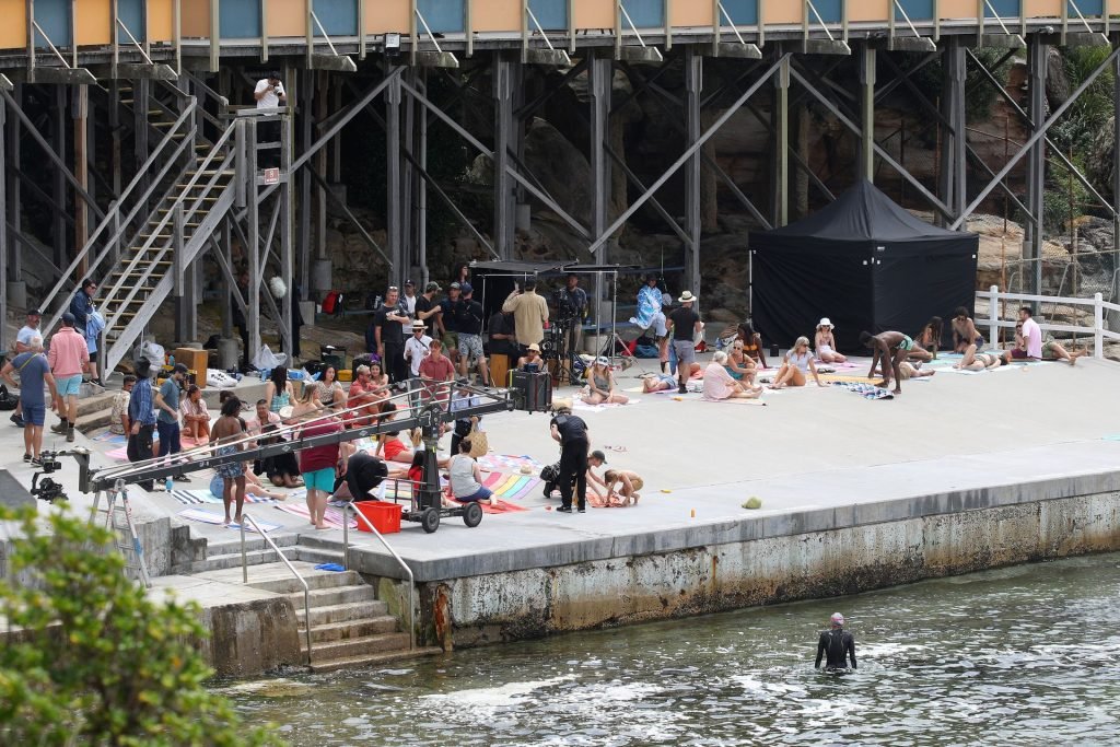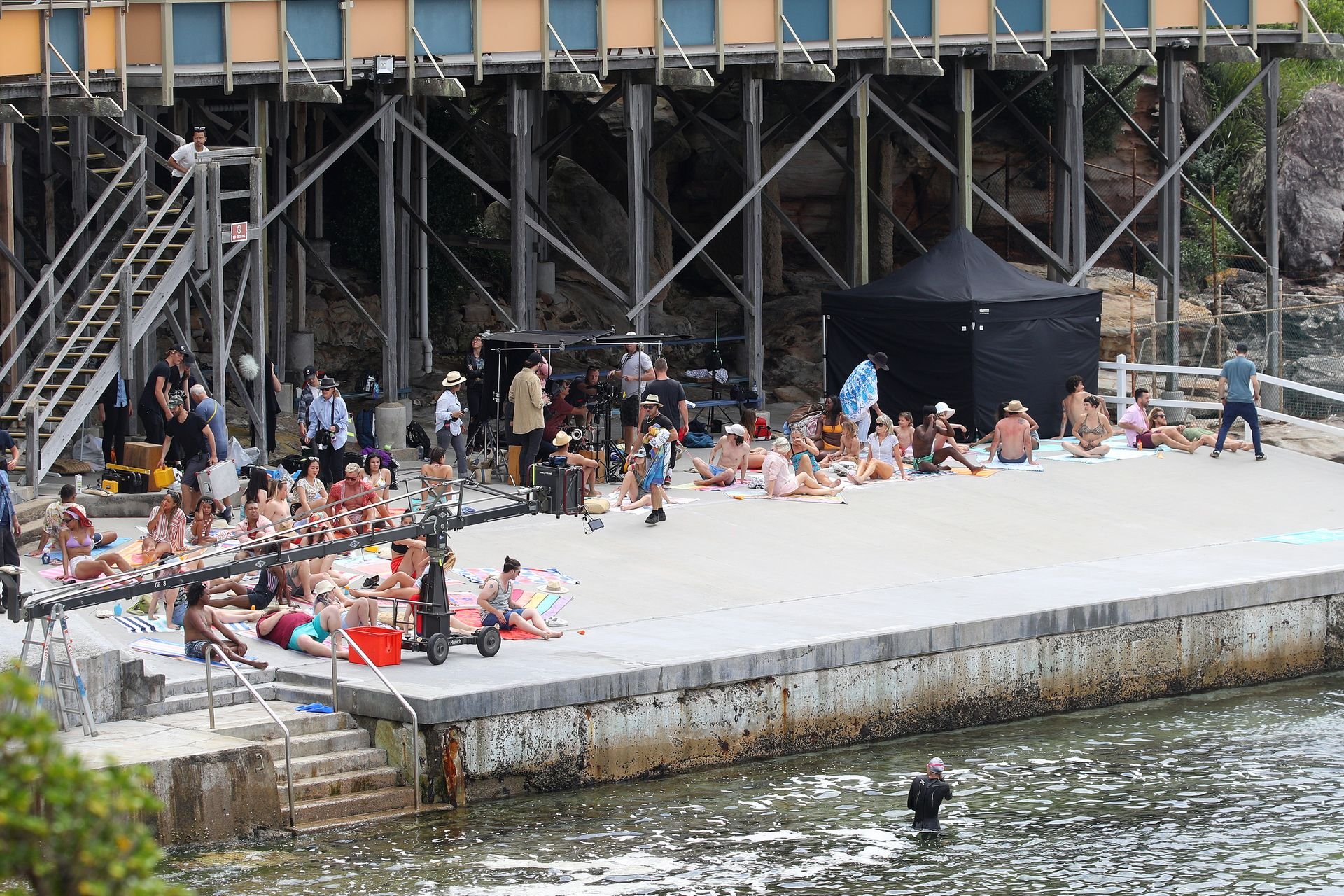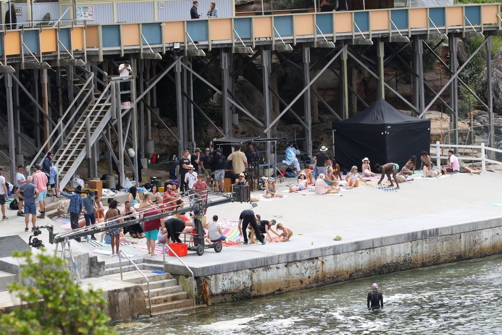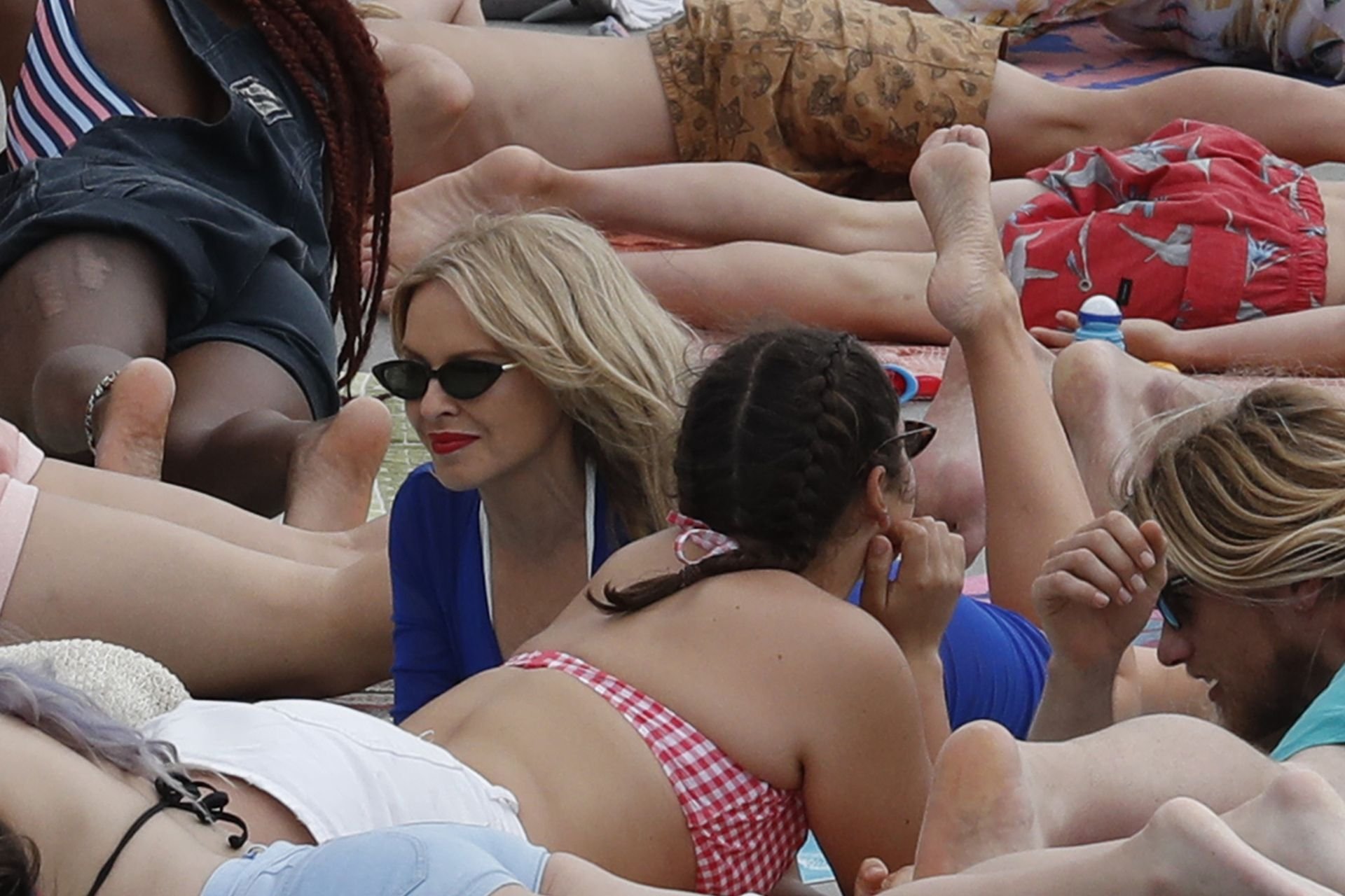 Кайли Миноуг демонстрирует свою фигуру в прозрачном бикини-платье на съемочной площадке в Сиднее, 10.06.2019. Похоже, она снимала музыкальное видео.