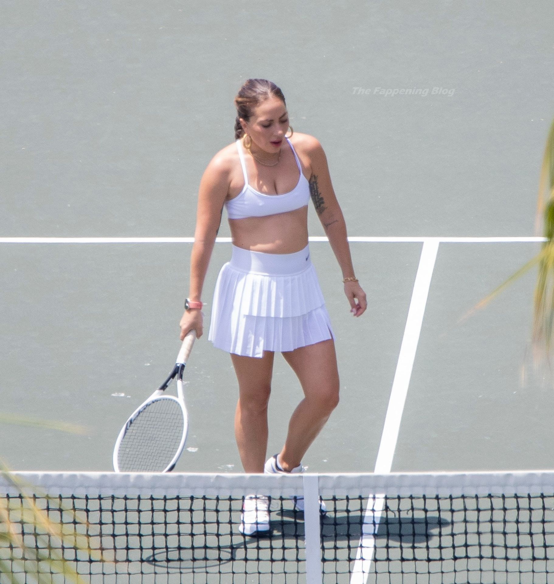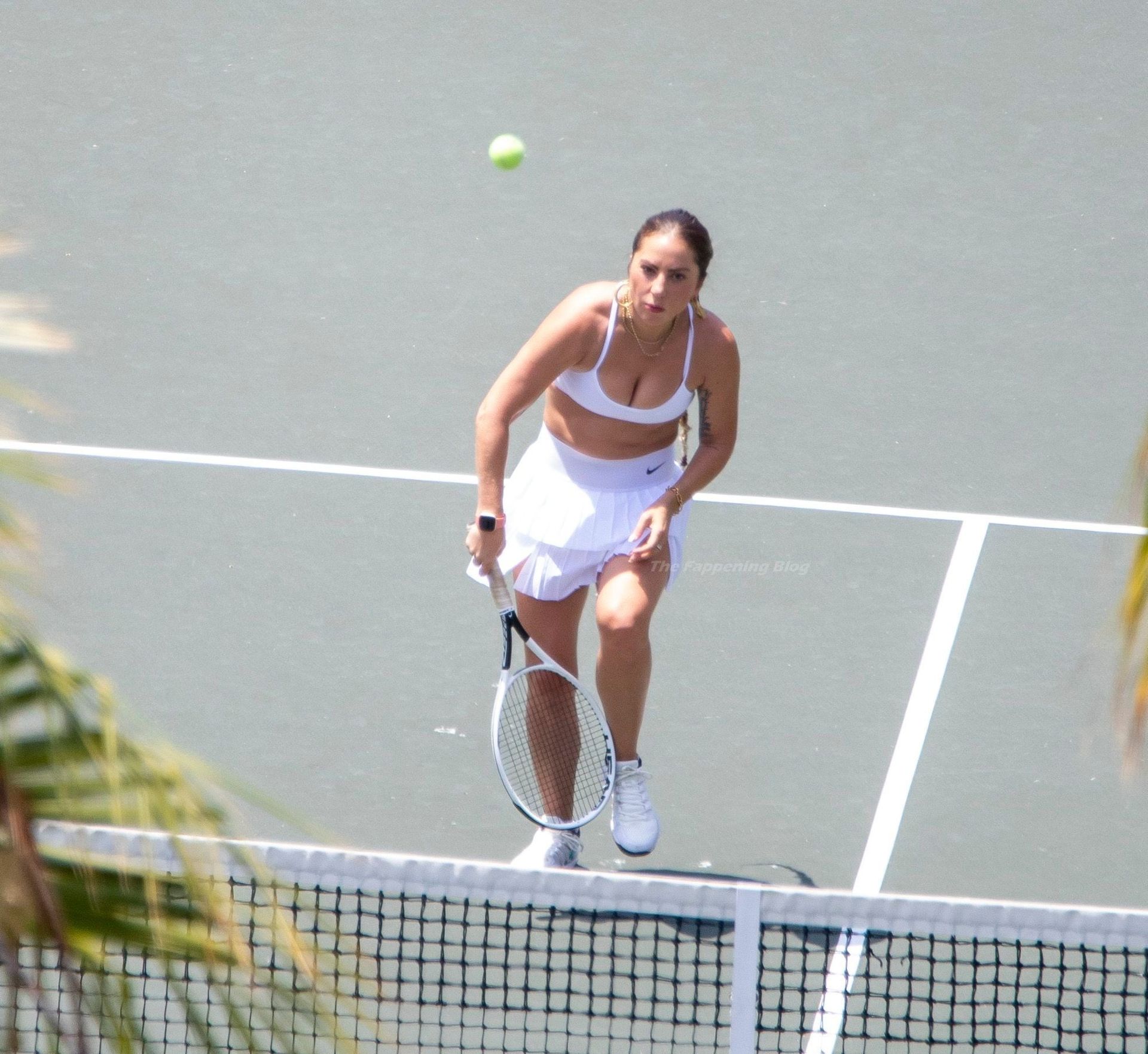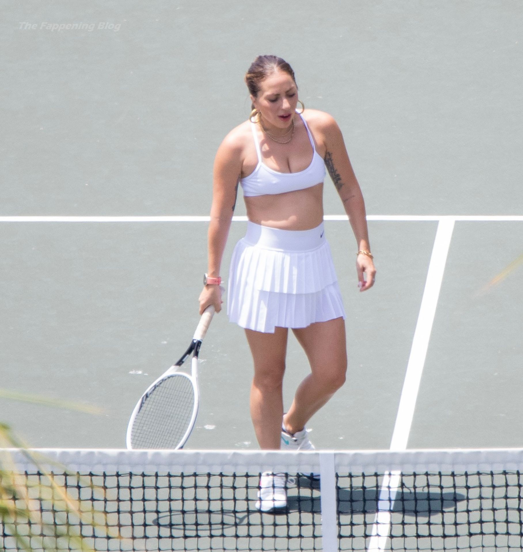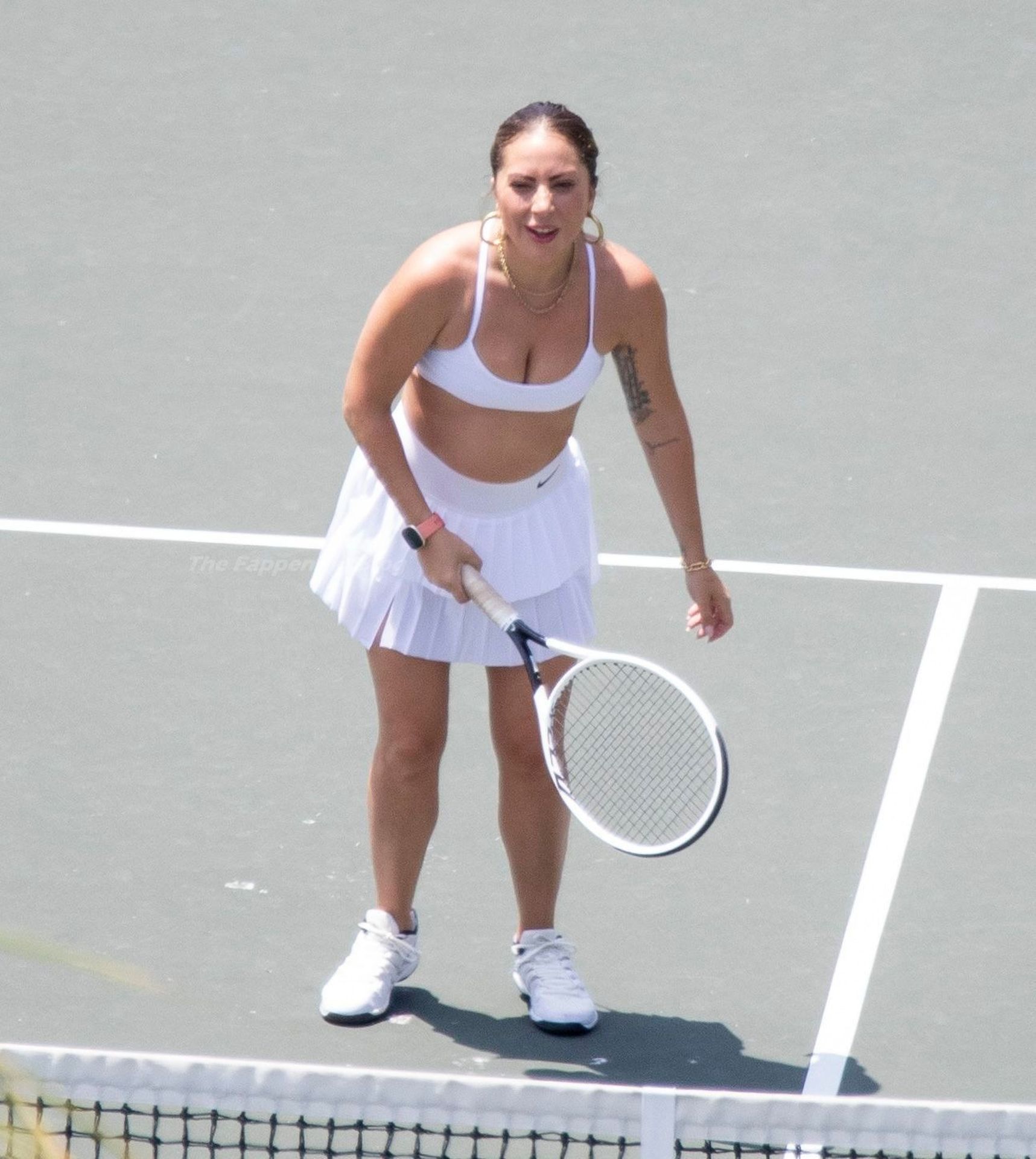 Певица Леди Гага демонстрирует спортивные навыки во время уроков тенниса во время уикенда с её женихом Майклом Полански, 25.07.2021.