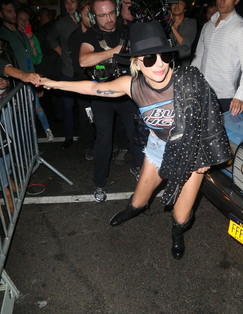Леди Гага носит прозрачный топ с наклейками на сосках, когда посещает The Bitter End в рамках своего Dive Bar Tour в Нью-Йорке, 20.10.2016. Леди Гага (Стефани Джоанн Анджелина Джерманотта) — американская певица, автор песен, актриса. Возраст: 30 лет (28 марта 1986).