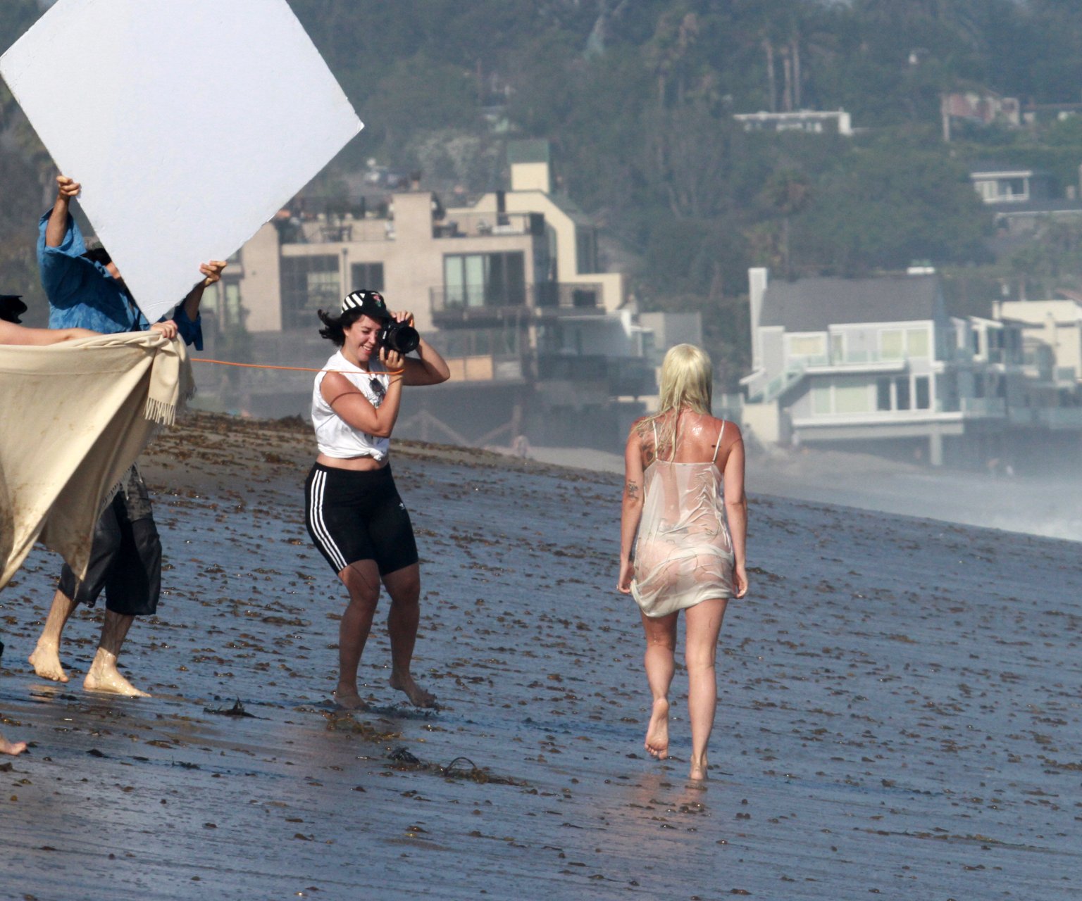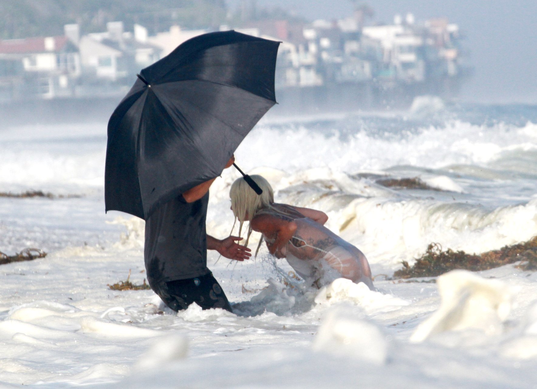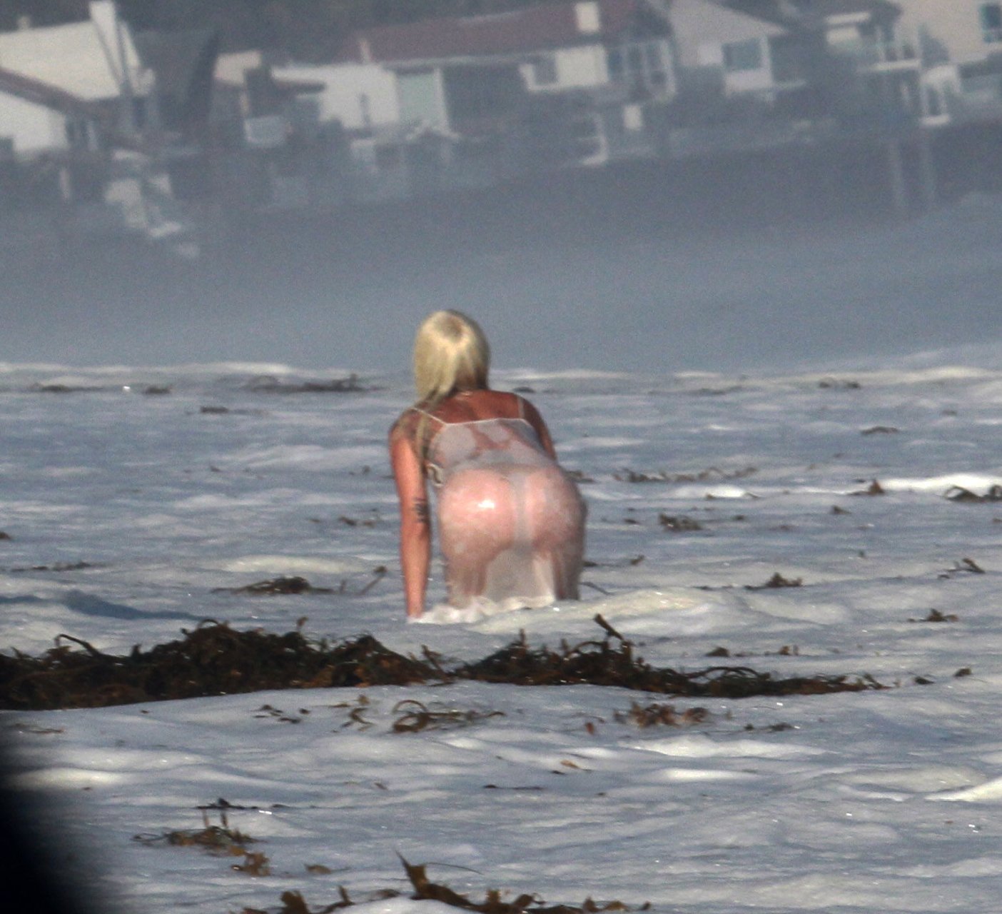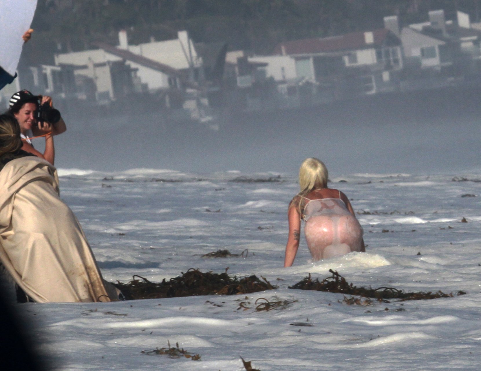 Леди Гага была замечена топлес в бикини и стрингах для откровенной фотосессии на пляже в Малибу, Калифорния, 25.07.2018. Дикие фотографы и команда промокли от больших волн. 32-летняя известная американская певица значительно похудела.