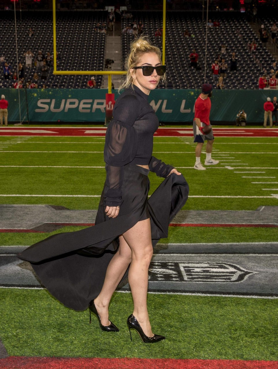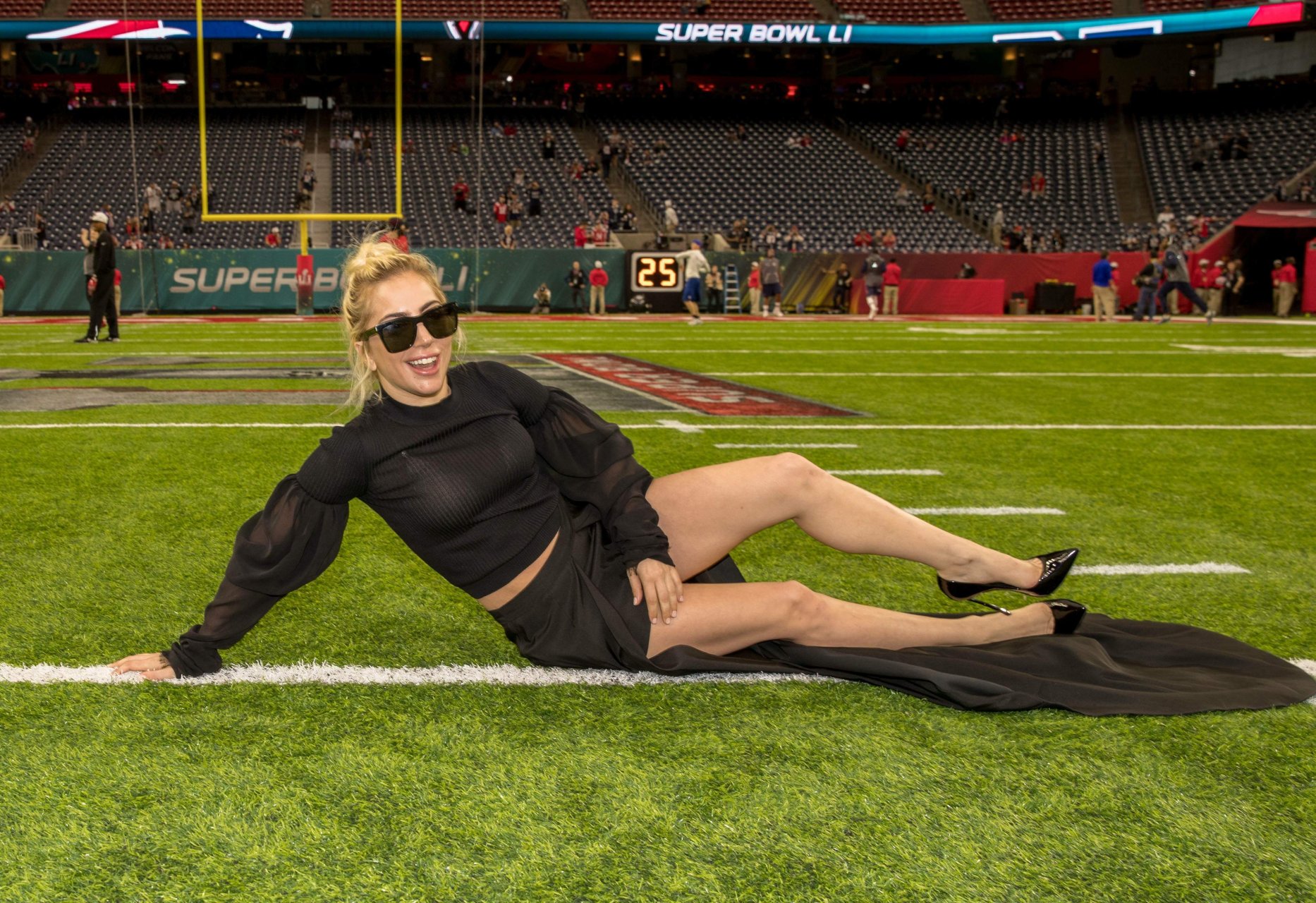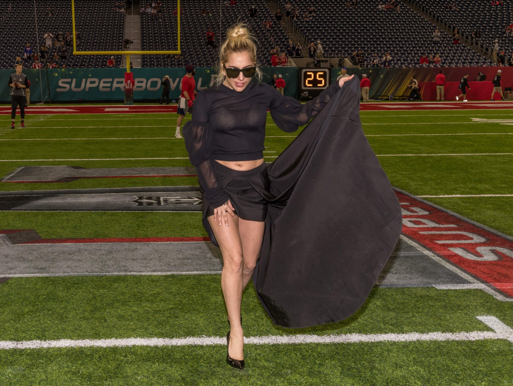 Леди Гага демонстрирует свои трусики на Супербоуле 2017 в стадионе NRG в Хьюстоне, 02/05/2017. Леди Гага (настоящее имя Стефани Джоанн Анджелина Джерманотта) — американская певица/автор песен, актриса. Возраст: 30 (родилась 28 марта 1986 года).