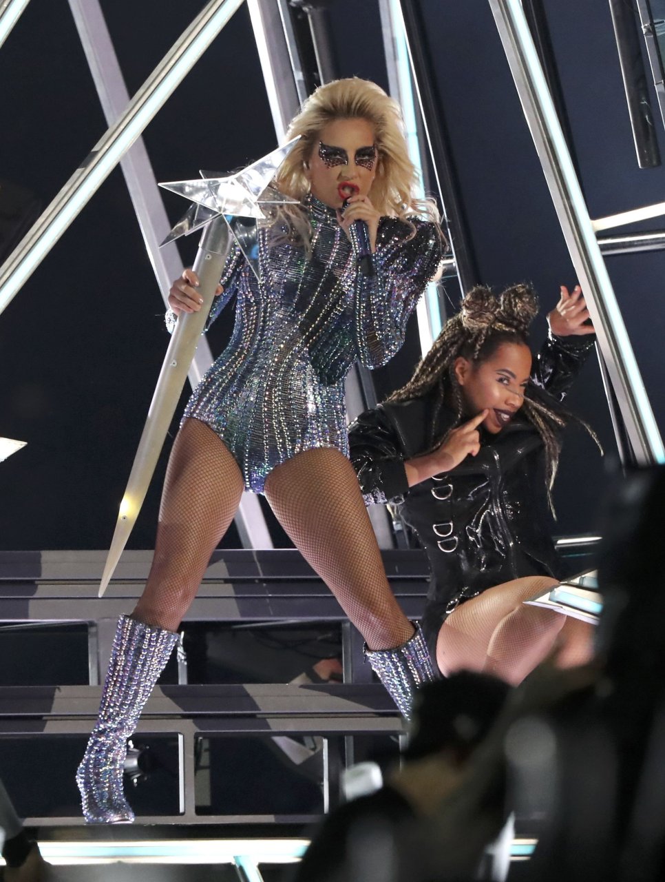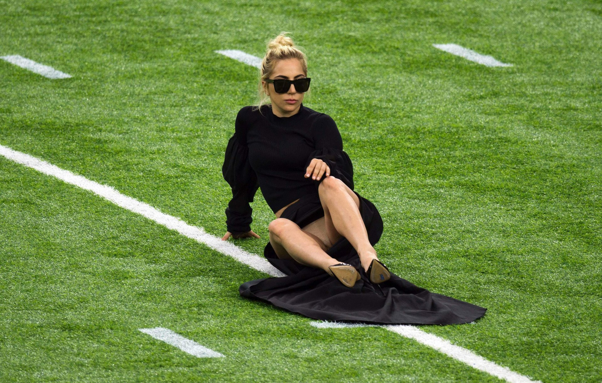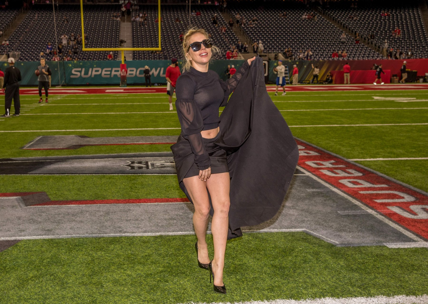 Леди Гага демонстрирует свои трусики на Супербоуле 2017 в стадионе NRG в Хьюстоне, 02/05/2017. Леди Гага (настоящее имя Стефани Джоанн Анджелина Джерманотта) — американская певица/автор песен, актриса. Возраст: 30 (родилась 28 марта 1986 года).