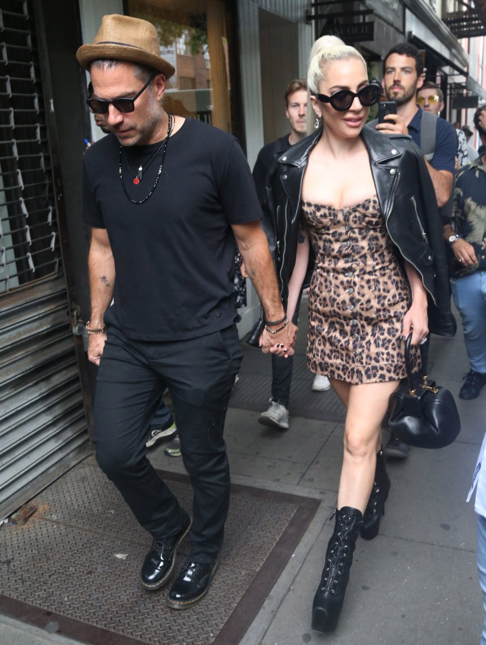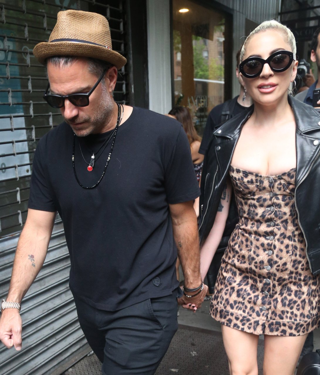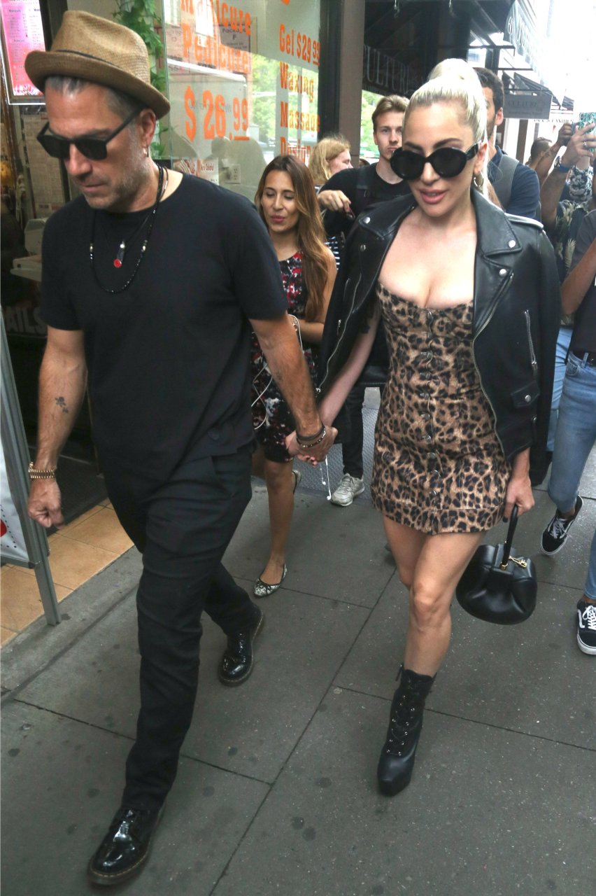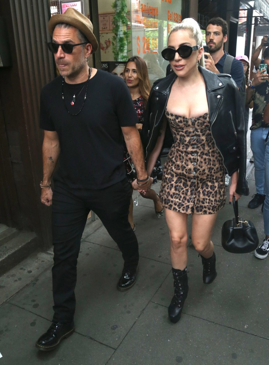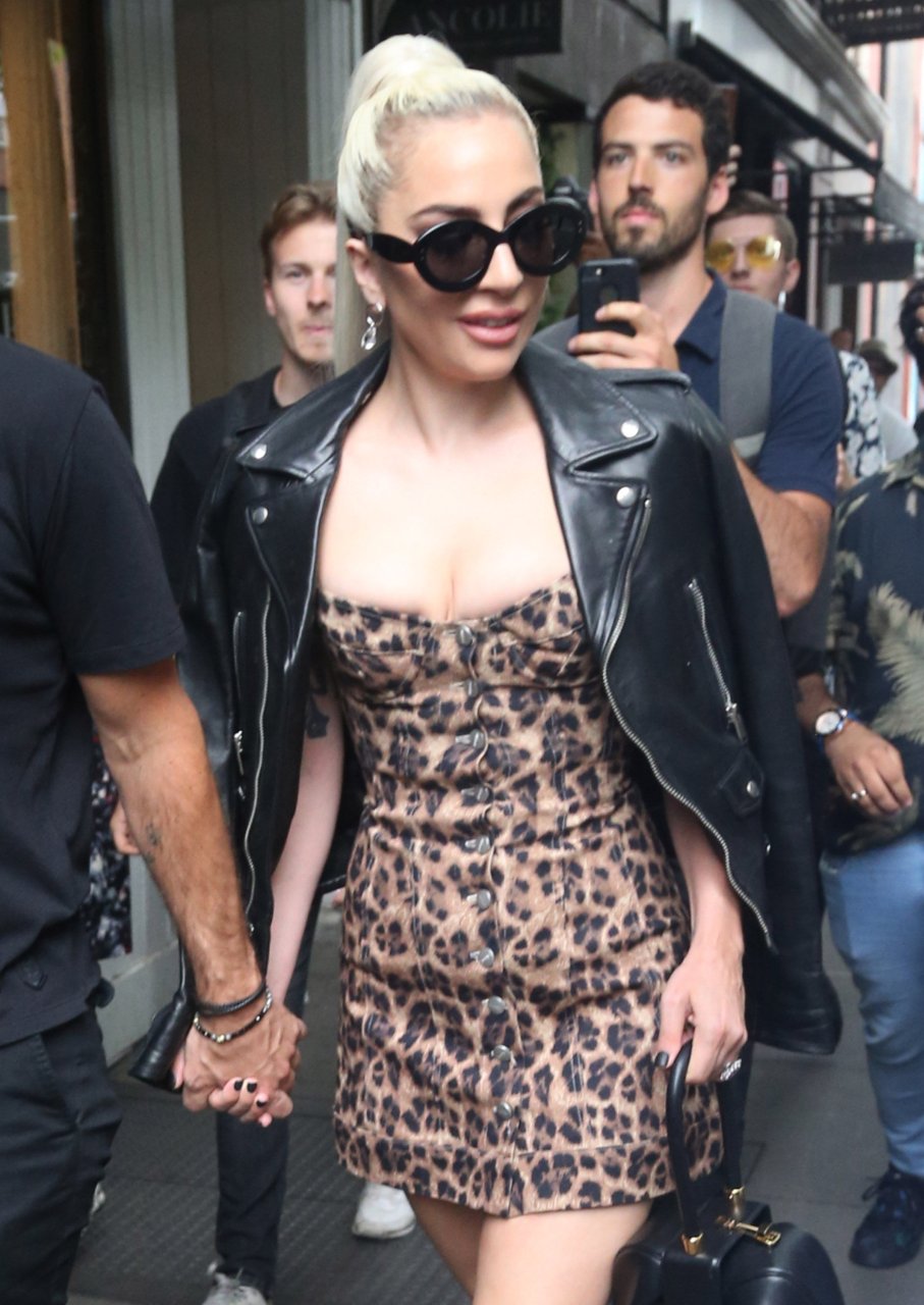 Леди Гага надела очень короткое леопардовое платье для прогулки с женихом, 28.06.2018. «Королева Эпатажа» не меняет свой имидж и продолжает удивлять людей откровенными нарядами.