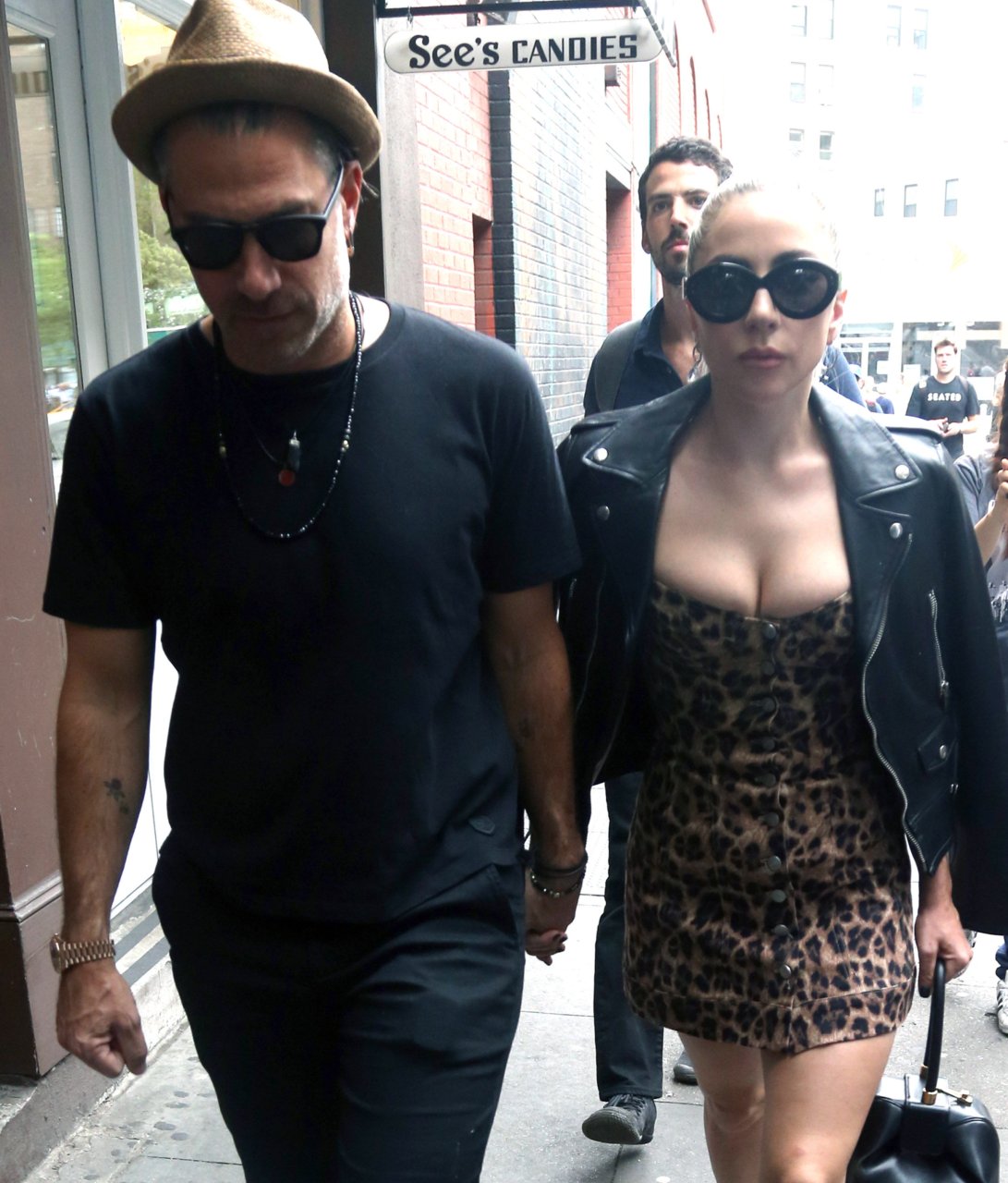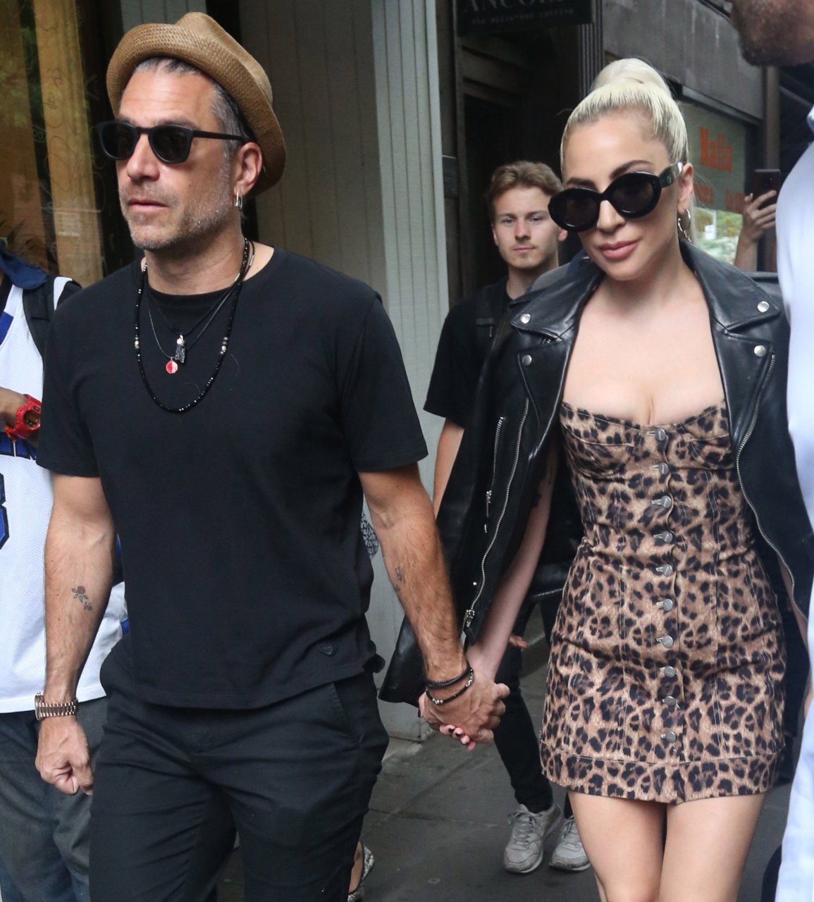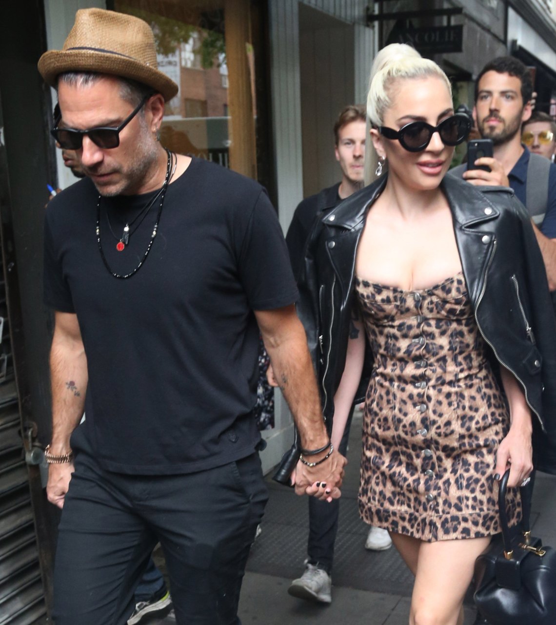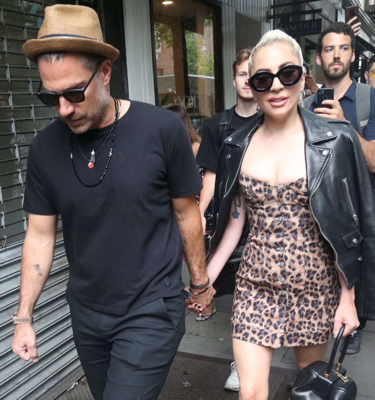 Леди Гага надела очень короткое леопардовое платье для прогулки с женихом, 28.06.2018. «Королева Эпатажа» не меняет свой имидж и продолжает удивлять людей откровенными нарядами.