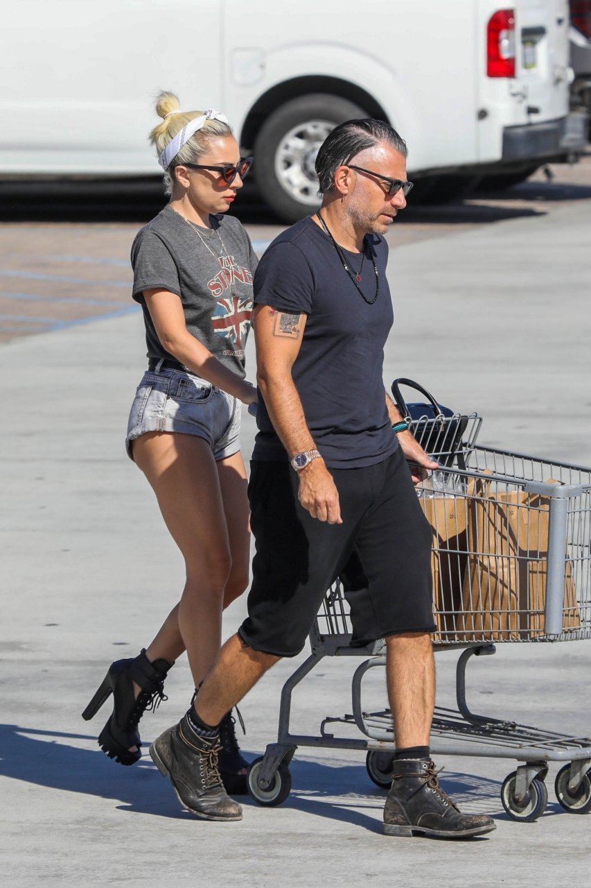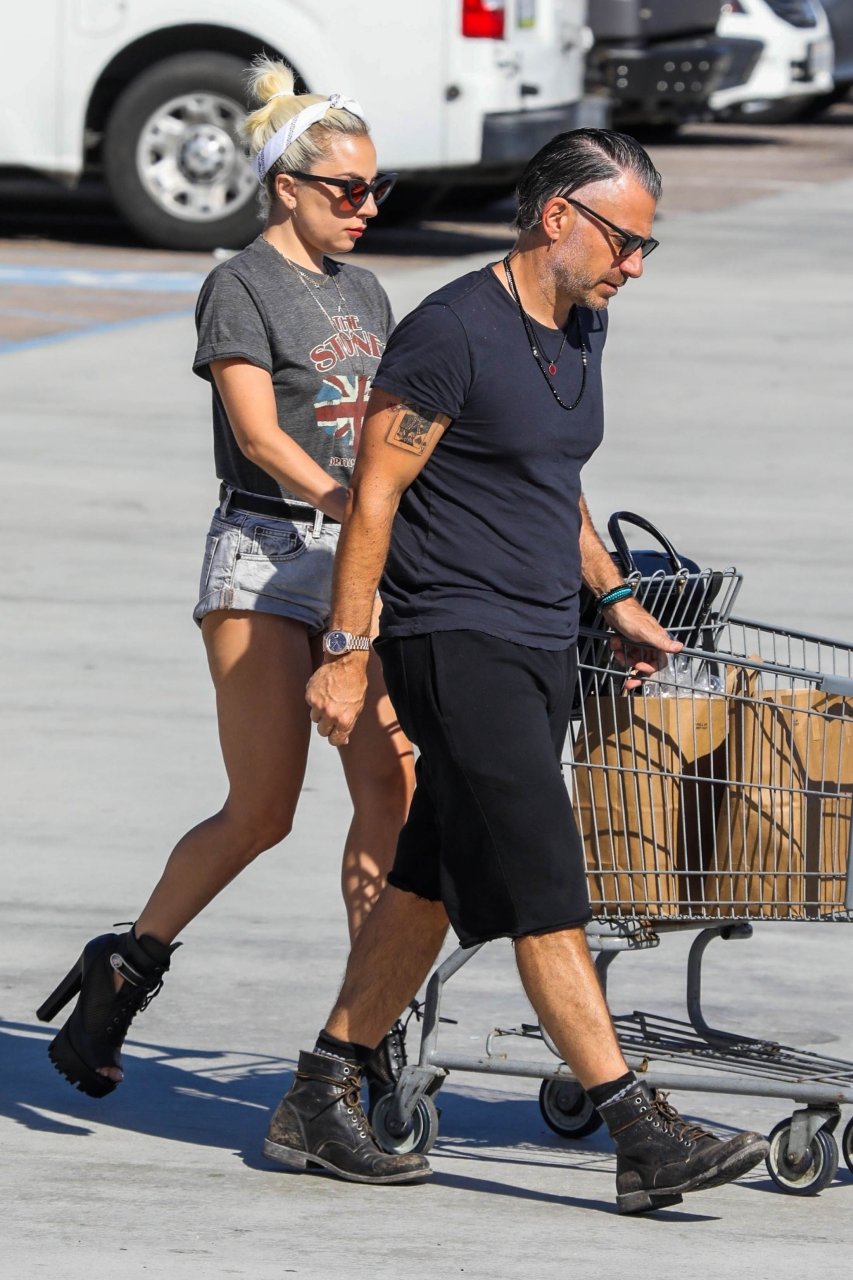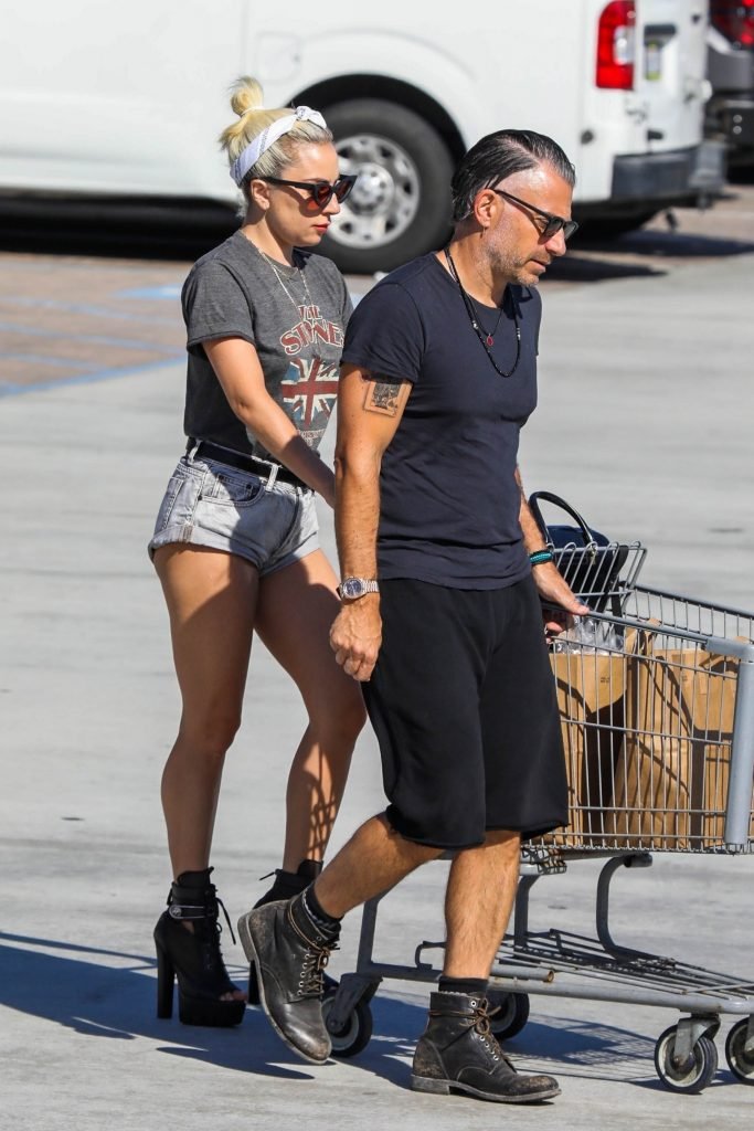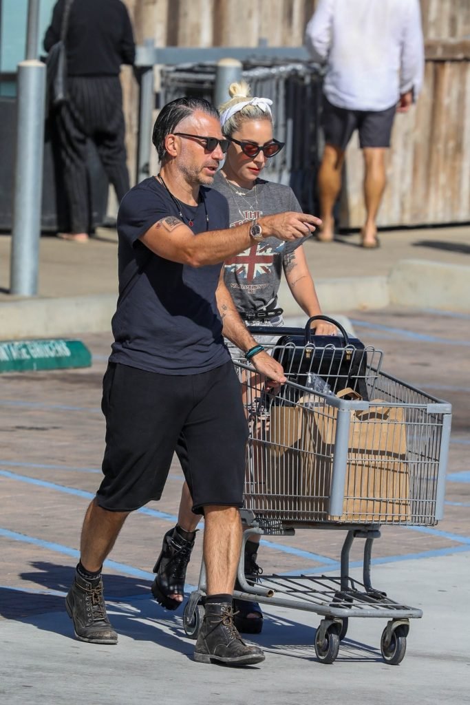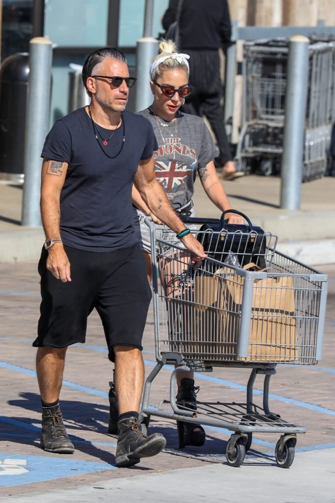 Леди Гага берет своего возлюбленного Кристиана с собой за продуктами в солнечном Малибу, 14.07.2018. 32-летняя поп-певица выбрала для похода в магазин монстр-хай каблуки и шорты.