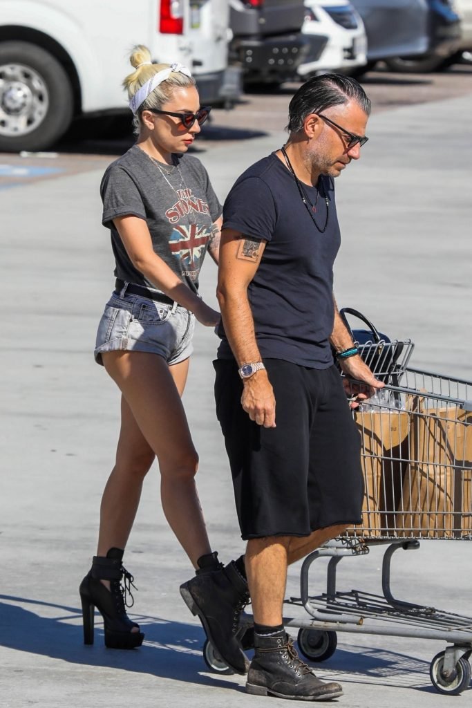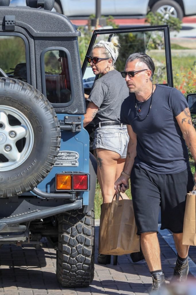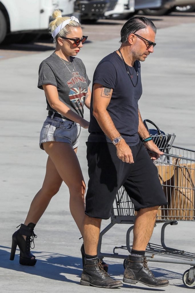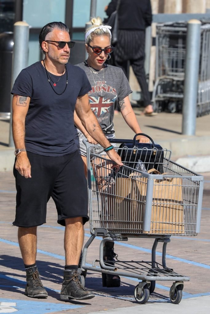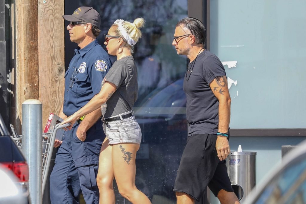 Леди Гага берет своего возлюбленного Кристиана с собой за продуктами в солнечном Малибу, 14.07.2018. 32-летняя поп-певица выбрала для похода в магазин монстр-хай каблуки и шорты.