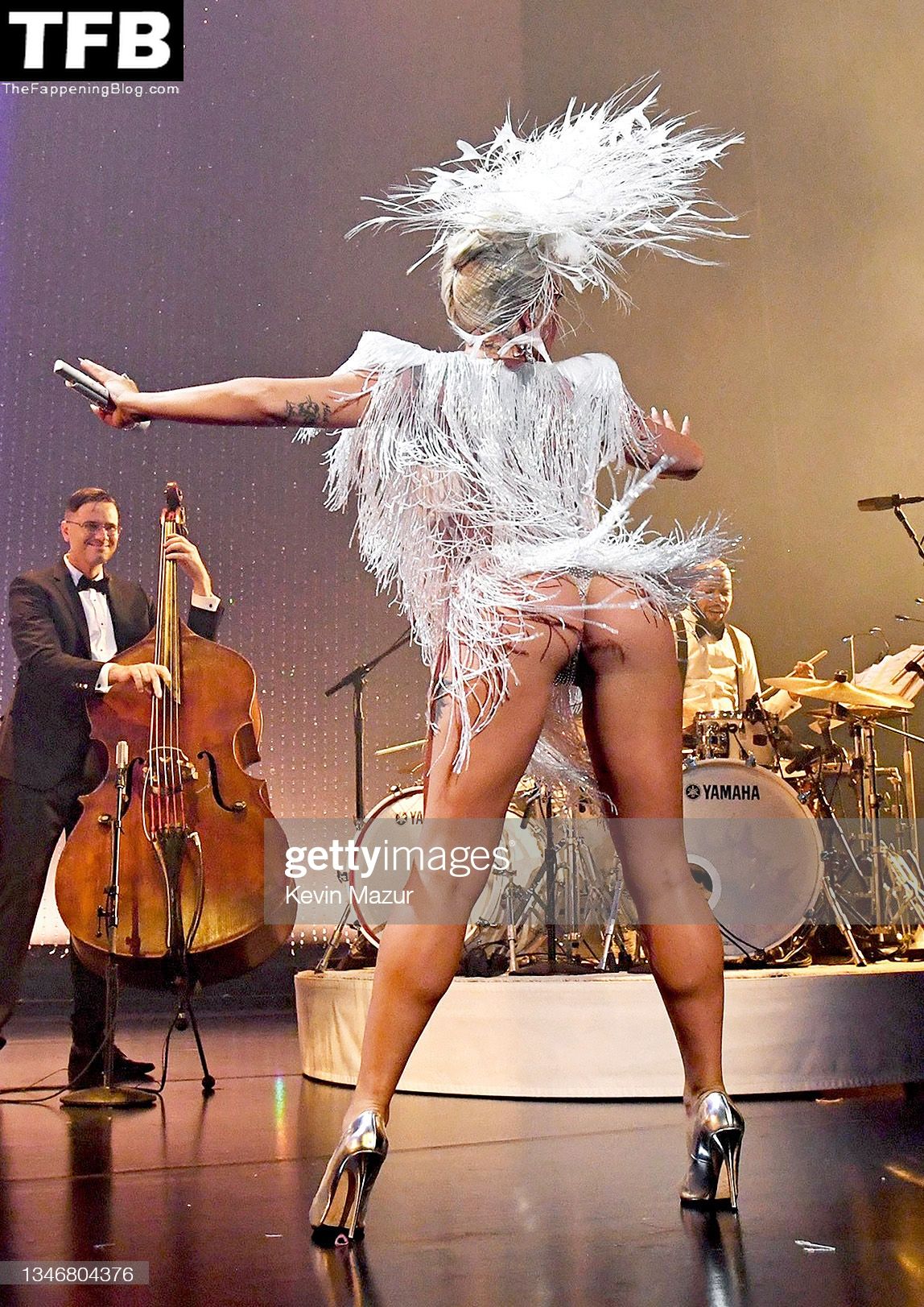 Леди Гага показывает свою сексуальную задницу публике в откровенных нарядах во время выступления в Вегасе, 14.10.2021.