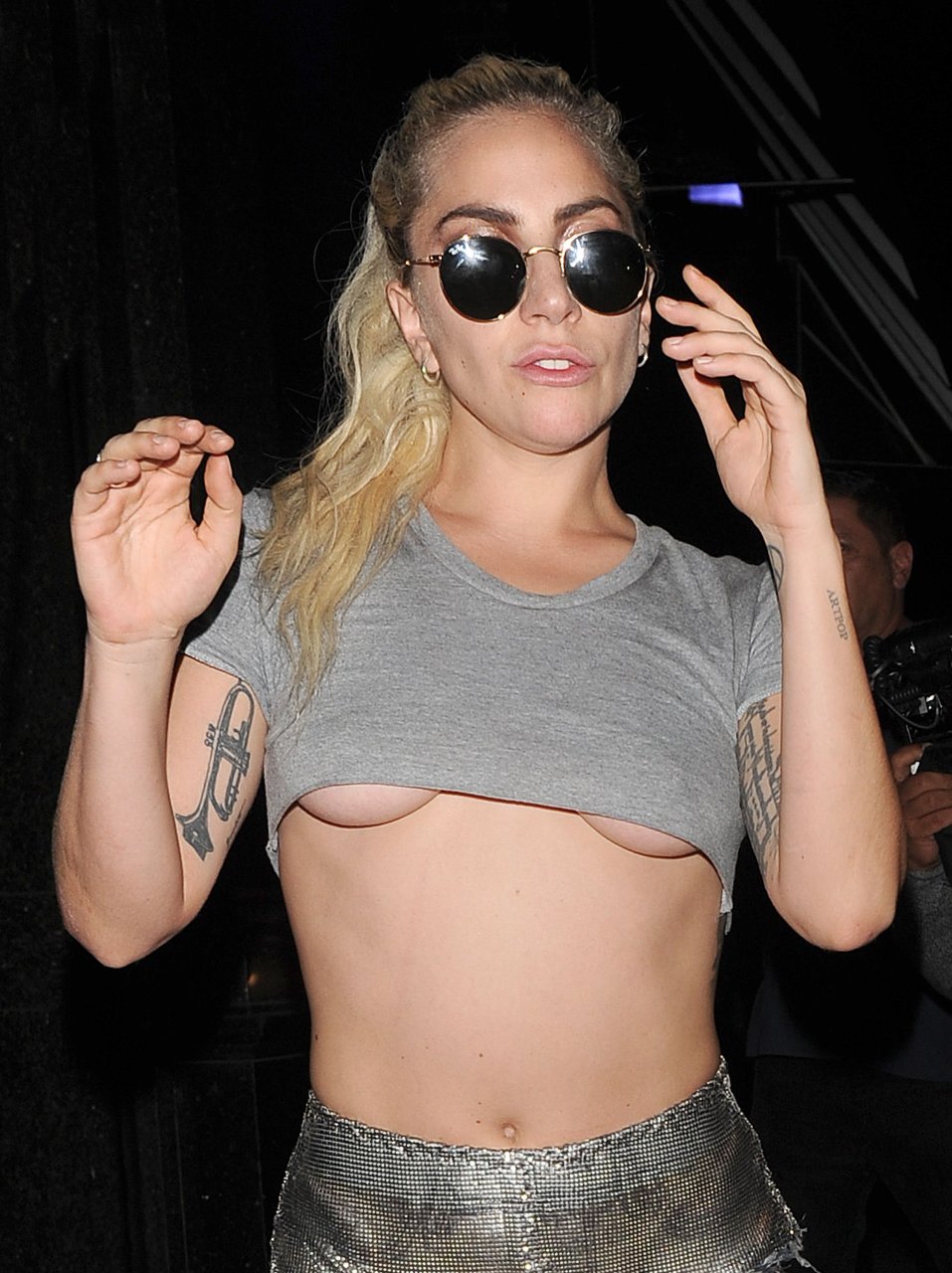 Lady Gaga демонстрирует великолепный открытый бюст с наклейками на Moth Club в Хакни, Лондон, 09/10/2016. Леди Гага (Стефани Джоанн Анджелина Джерманотта) — американская певица, автор песен, актриса. Возраст: 30 (28 марта 1986).