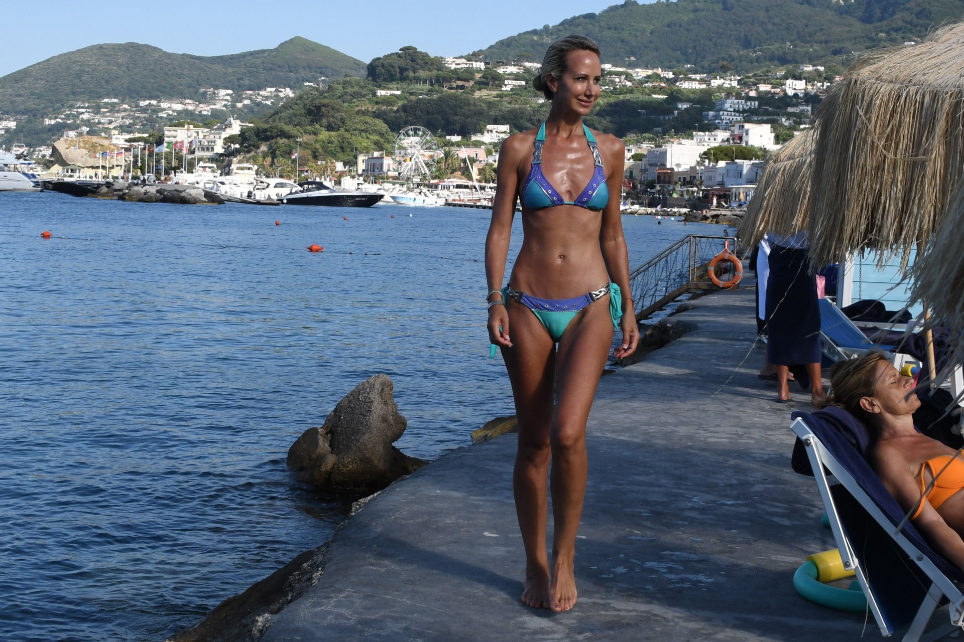 Леди Виктория Херви запечатлена в бикини в отеле Regina Isabella во время отпуска на Искье, 21.07.2018. 41-летняя блондинка продемонстрировала папарацци свою стройную фигуру.