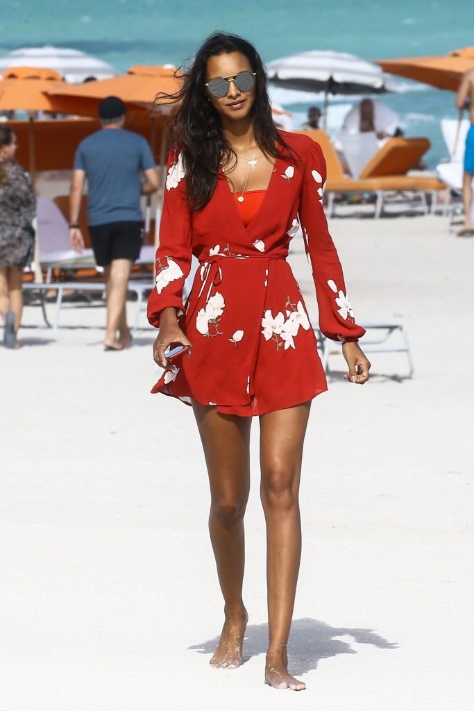Топ-модель Лаис Рибейро (24) наслаждается днем на пляже в Майами-Бич, 22.02.2018.