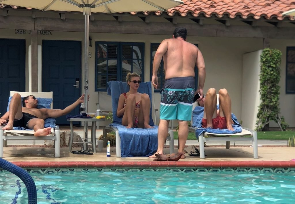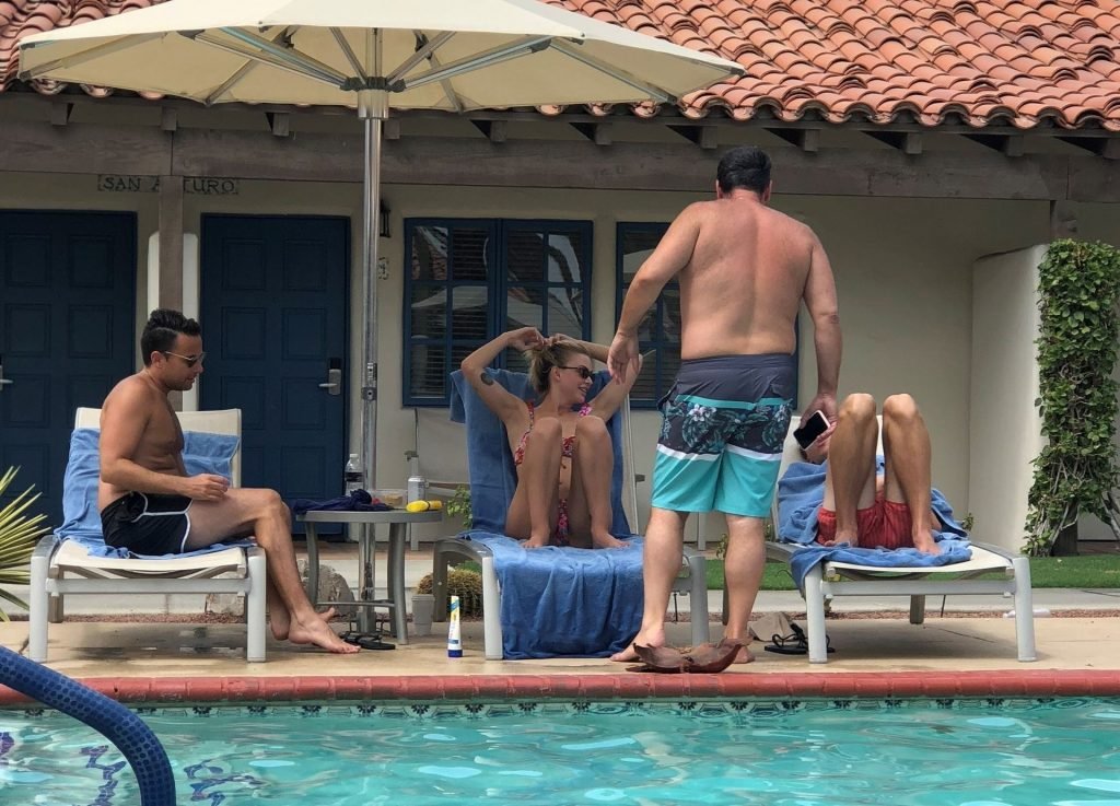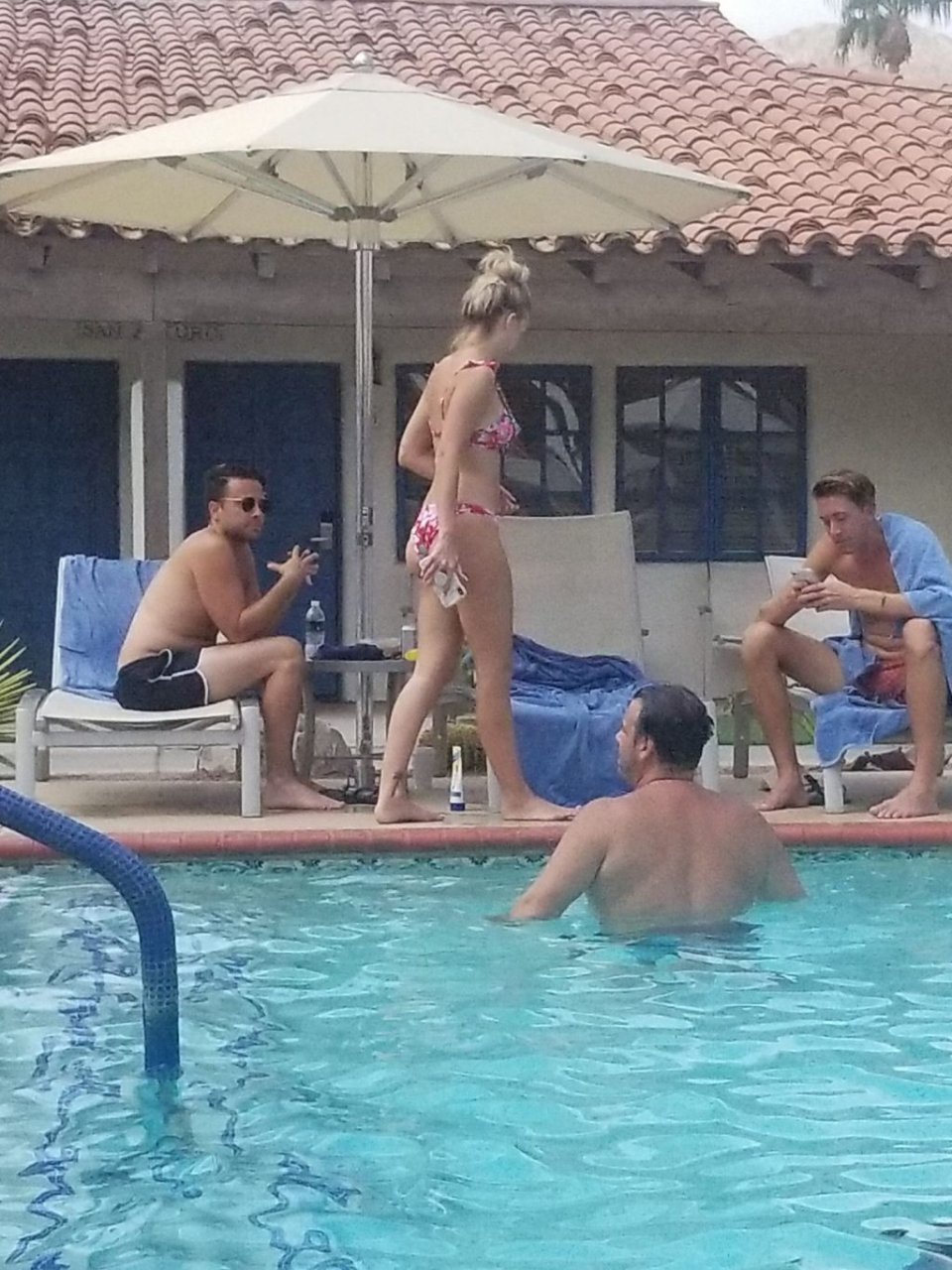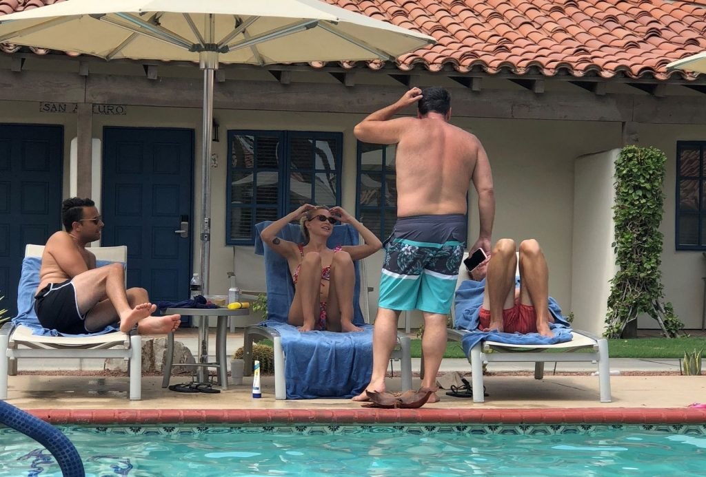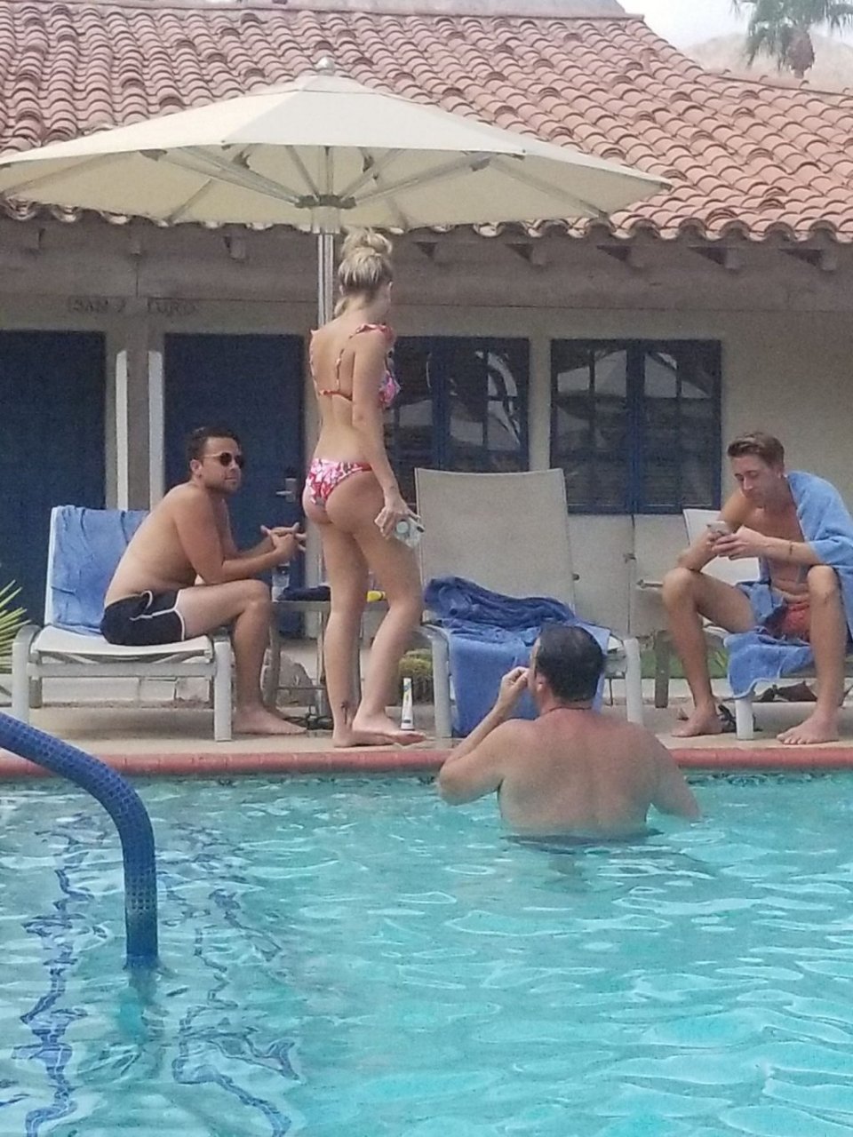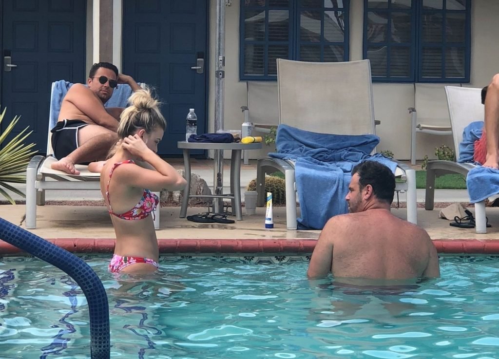 Lala Kent из “Vanderpump Rules” отдыхает у бассейна во время отпуска в пустыне со своим женихом Рэндаллом Эмметтом и семьёй, 24.08.2019.