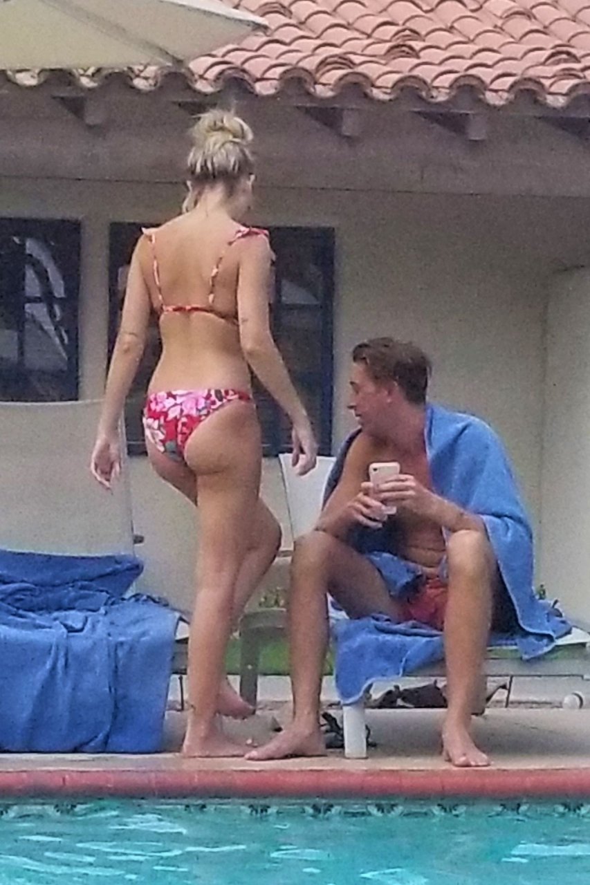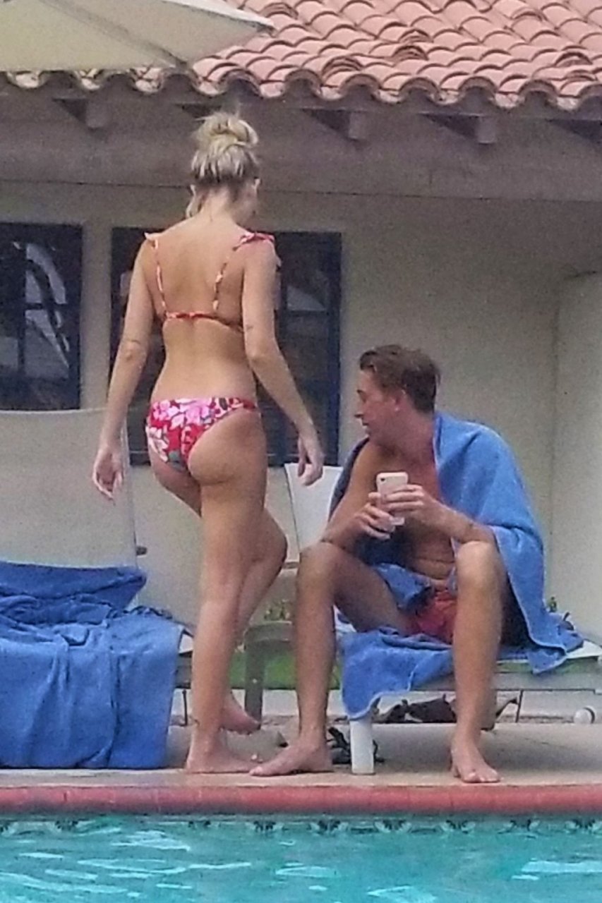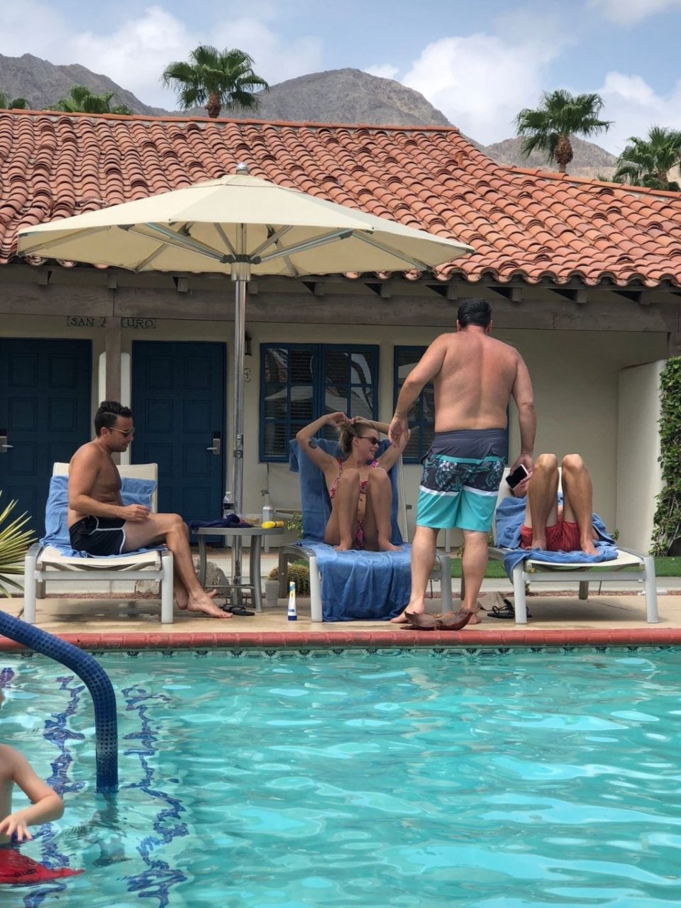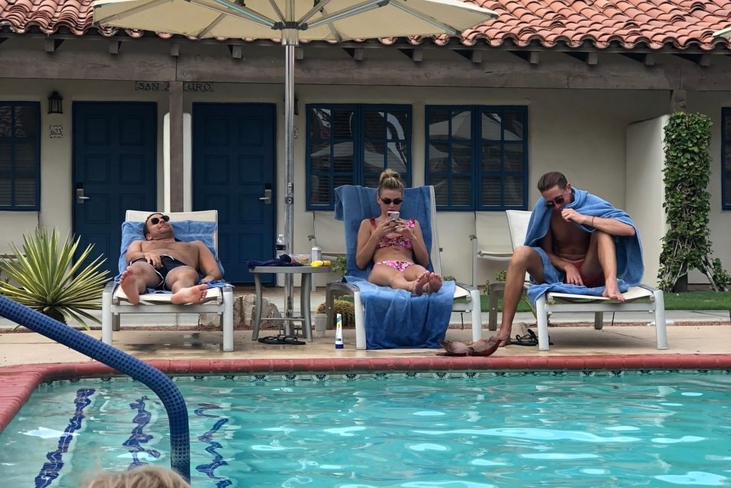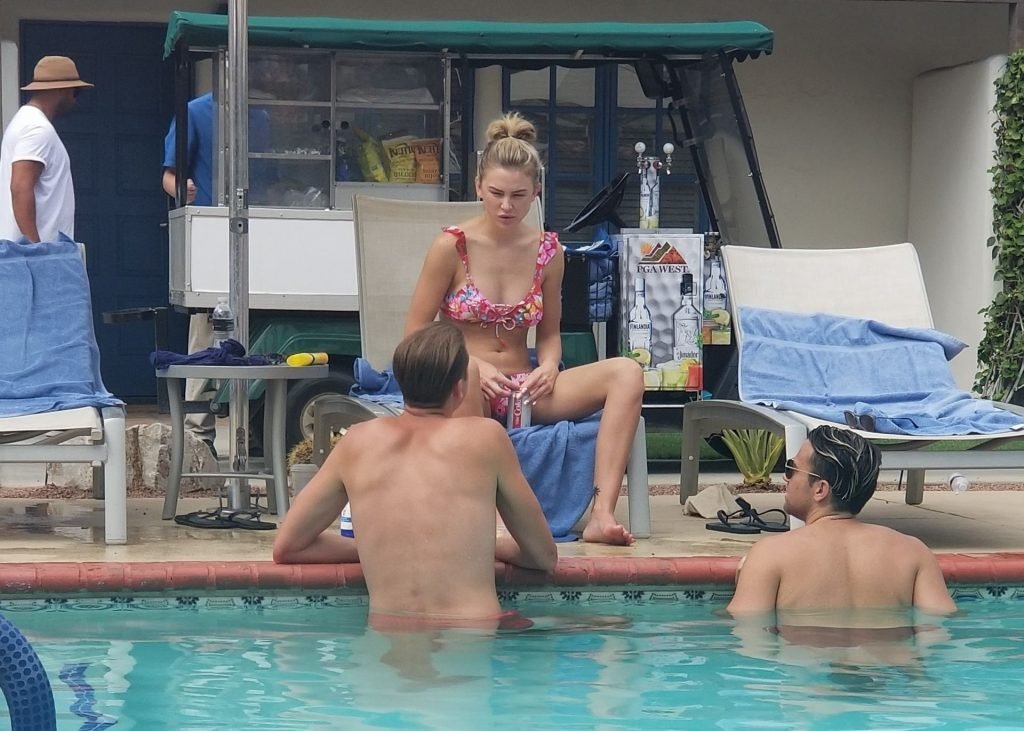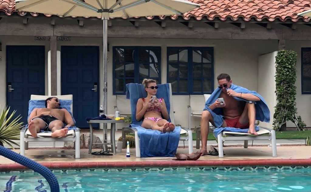Lala Kent из “Vanderpump Rules” отдыхает у бассейна во время отпуска в пустыне со своим женихом Рэндаллом Эмметтом и семьёй, 24.08.2019.