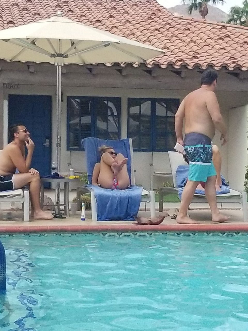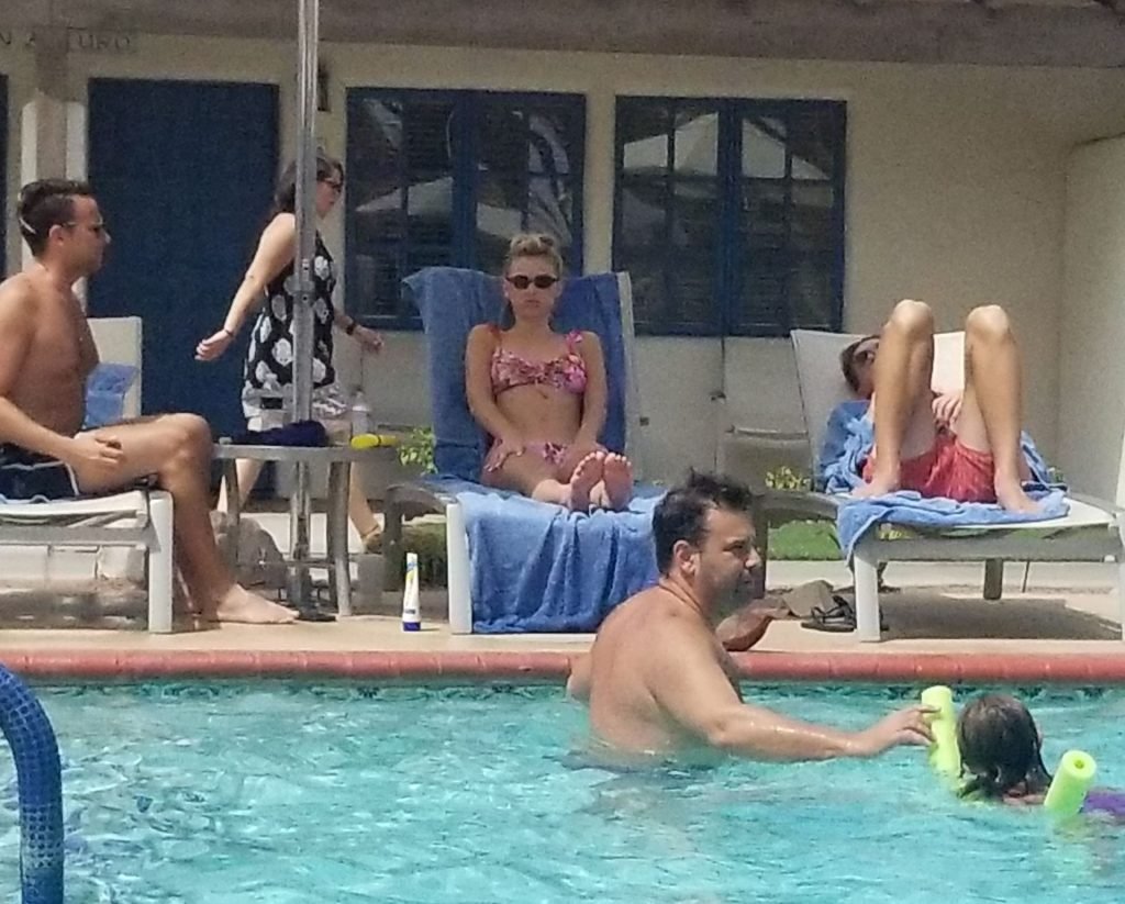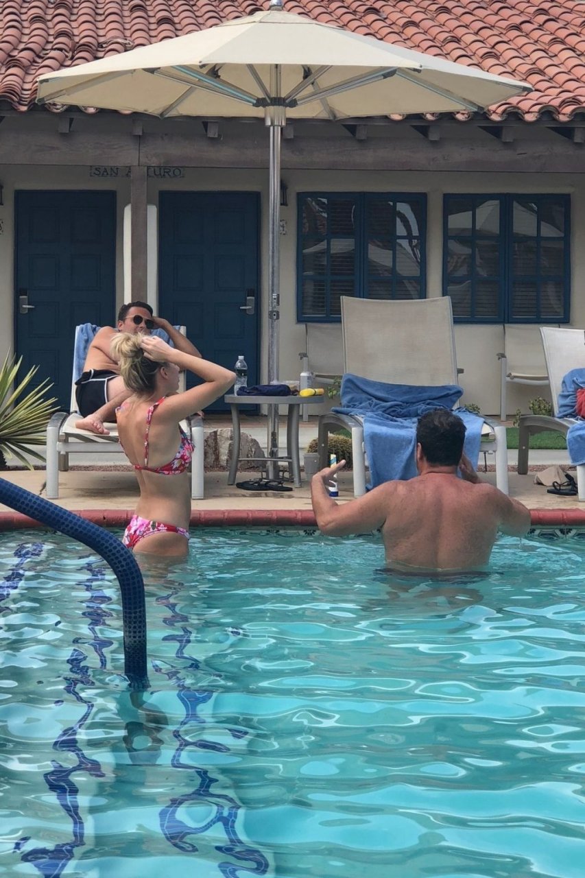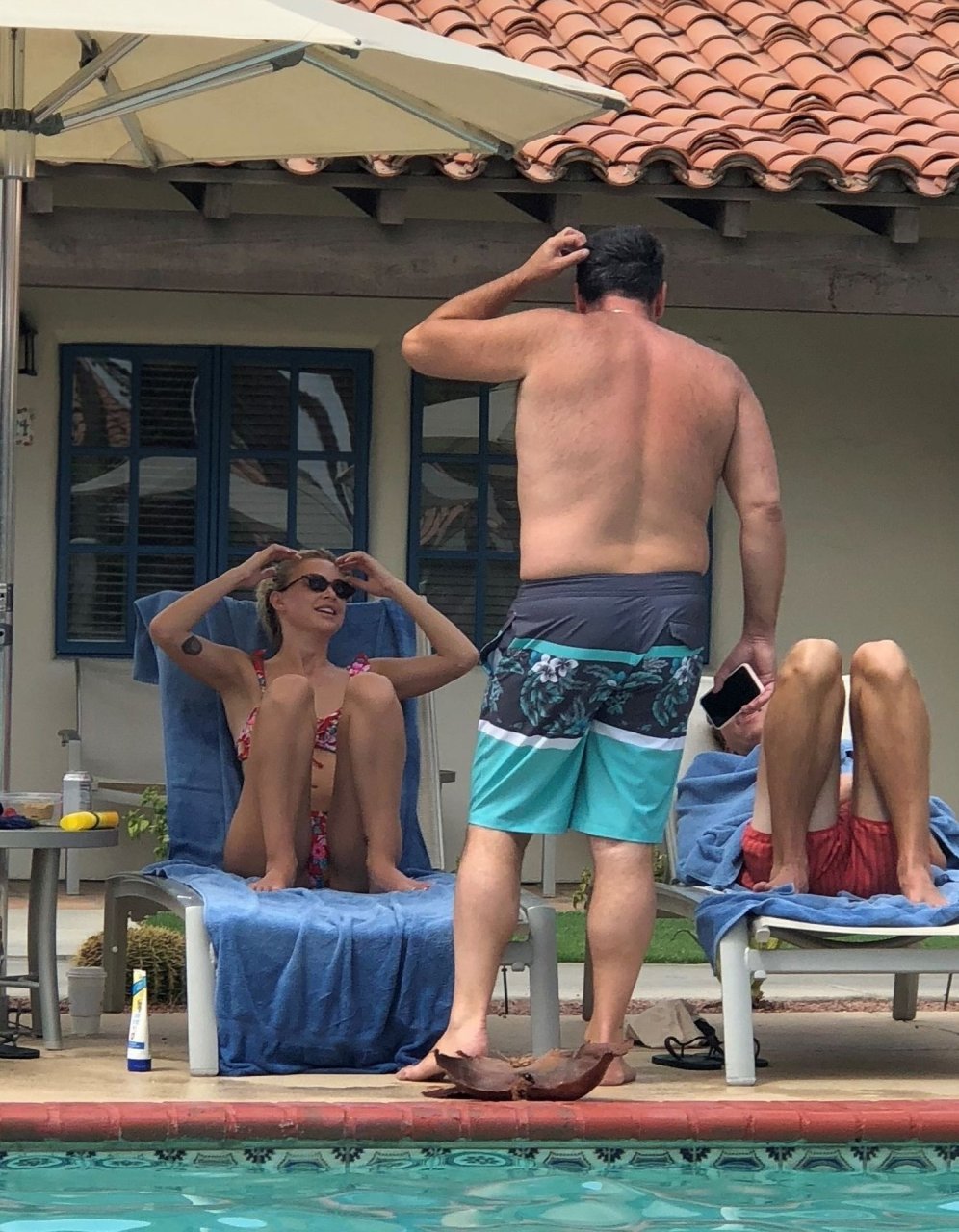 Lala Kent из “Vanderpump Rules” отдыхает у бассейна во время отпуска в пустыне со своим женихом Рэндаллом Эмметтом и семьёй, 24.08.2019.