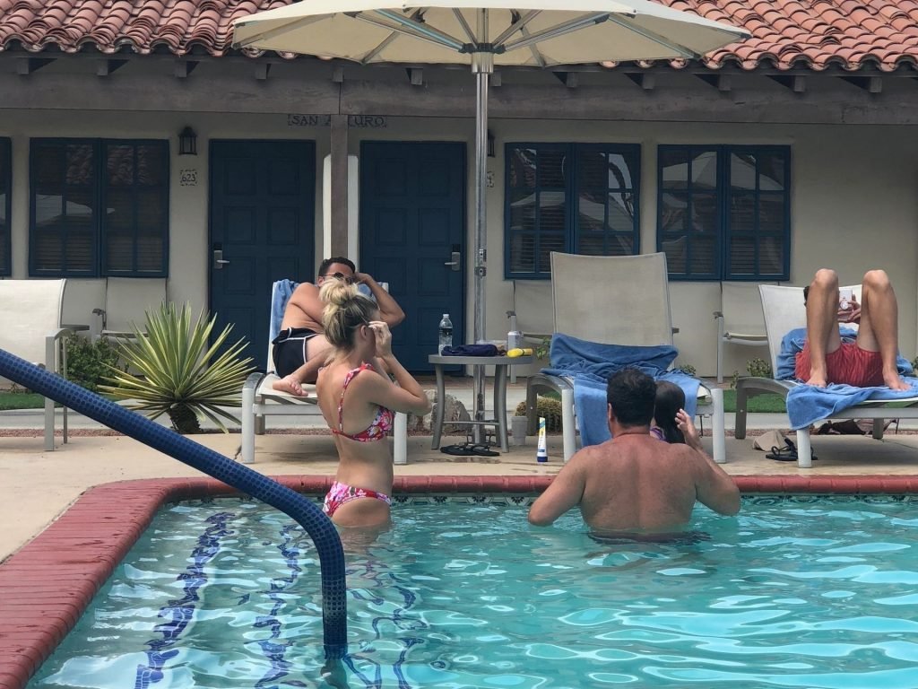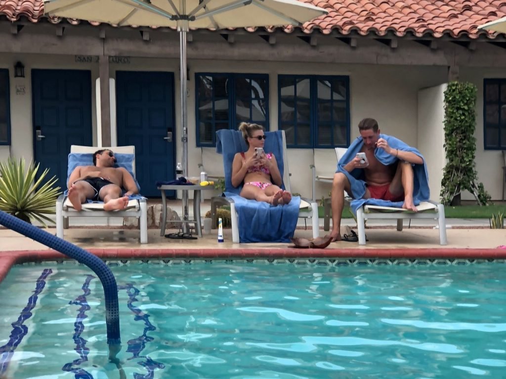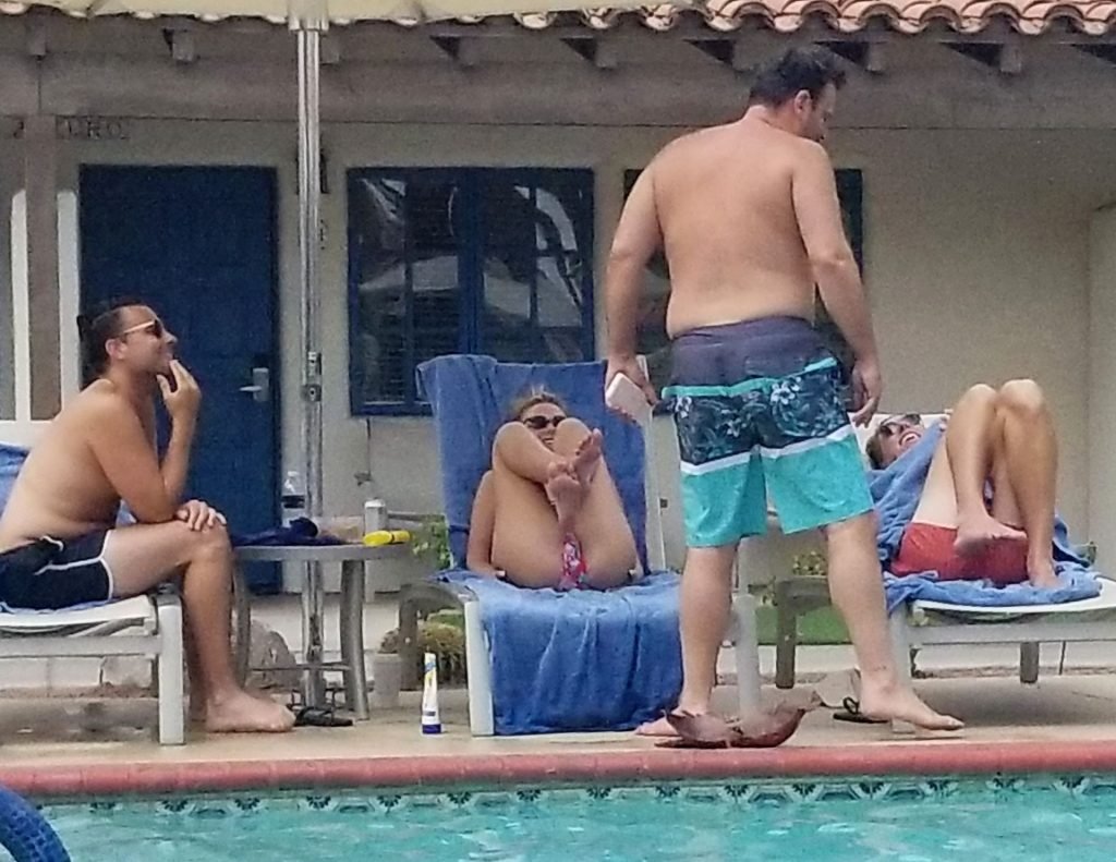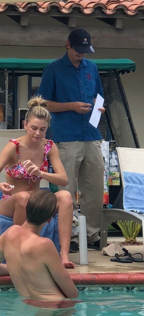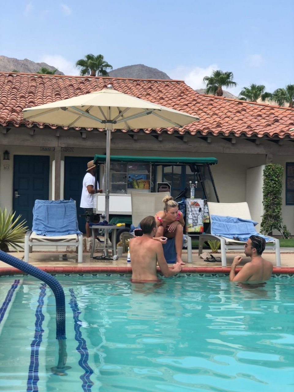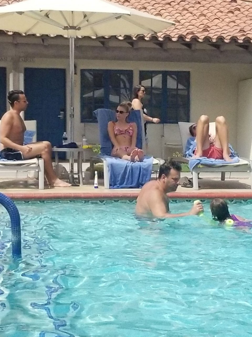 Lala Kent из “Vanderpump Rules” отдыхает у бассейна во время отпуска в пустыне со своим женихом Рэндаллом Эмметтом и семьёй, 24.08.2019.