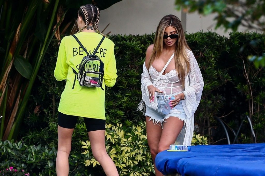 Ларса Пиппен и друзья отдыхают на Майами-Бич, 31.03.2019. Ларса демонстрирует свои формы в цельном купальнике.