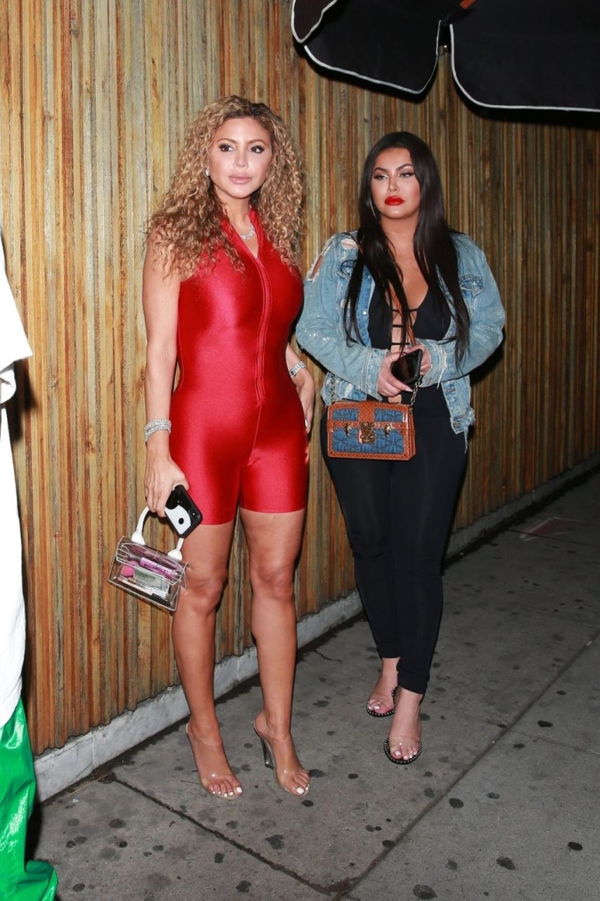 Семейная лучшая подруга Кардашьян, Ларса Пиппен, демонстрирует кудрявую гриву и оживляет вечер в шелковом красном комбинезоне, появляясь в The Nice Guy в Уэст-Голливуде, 07/10/2019.